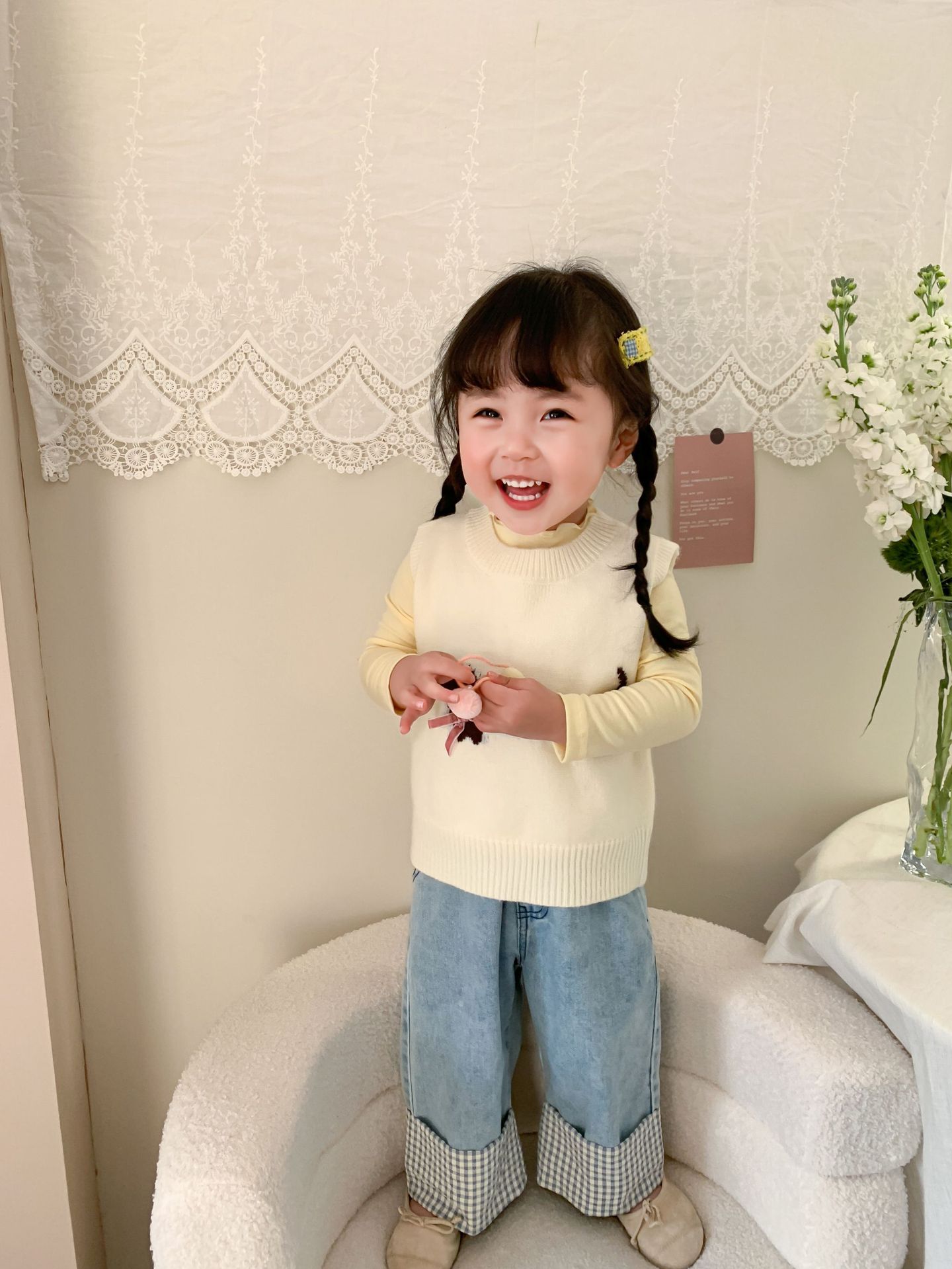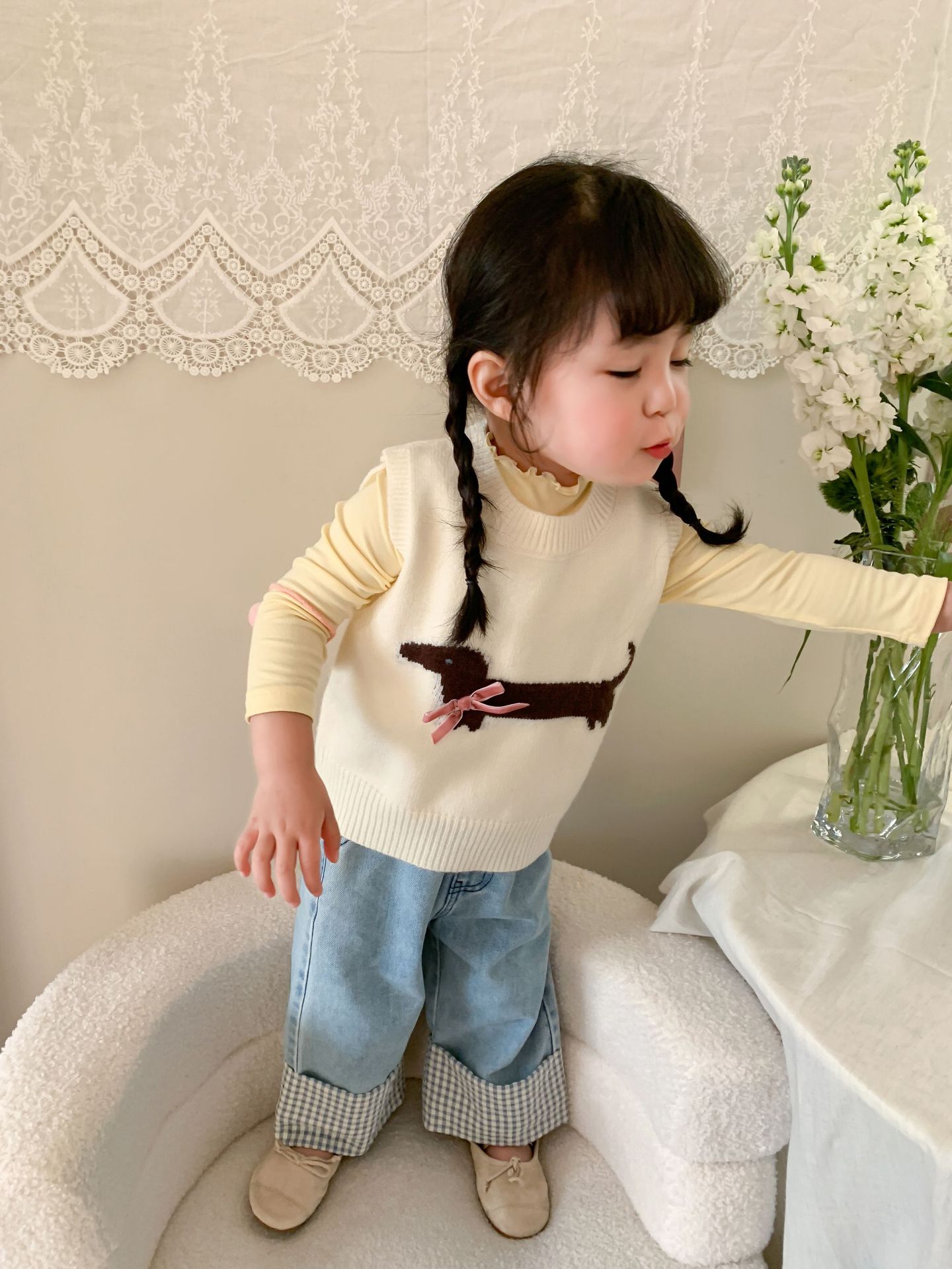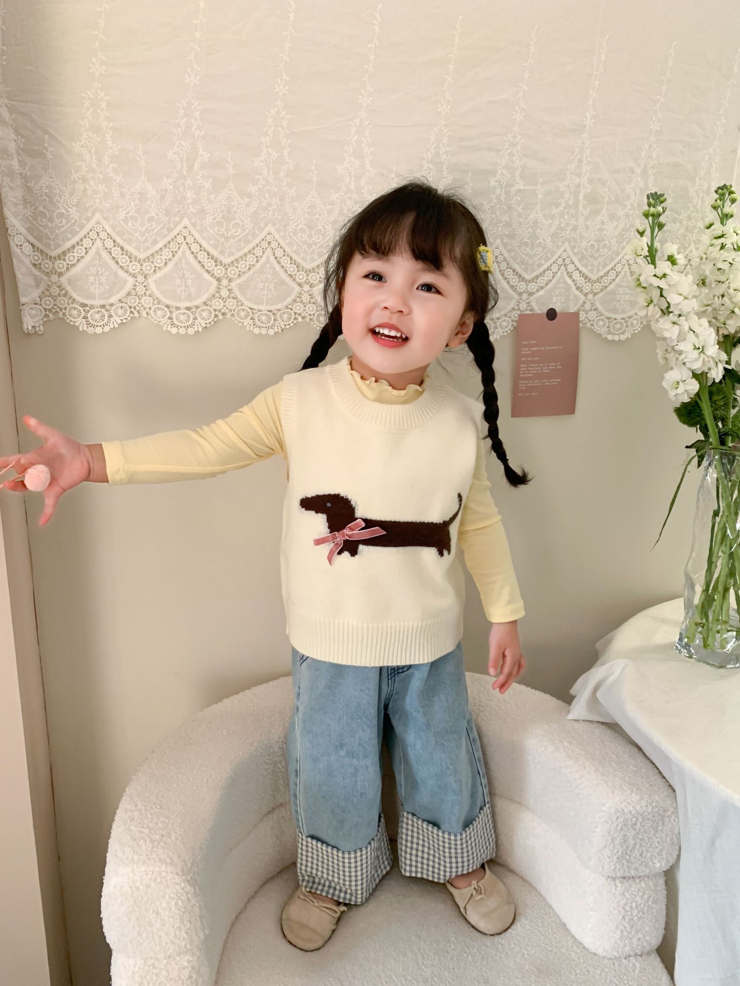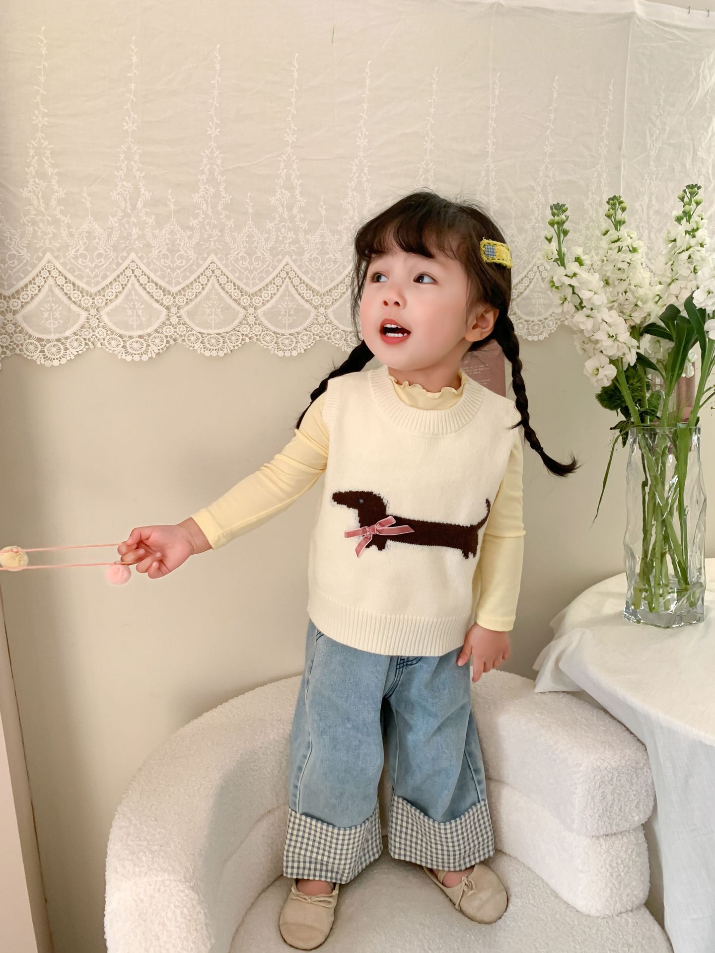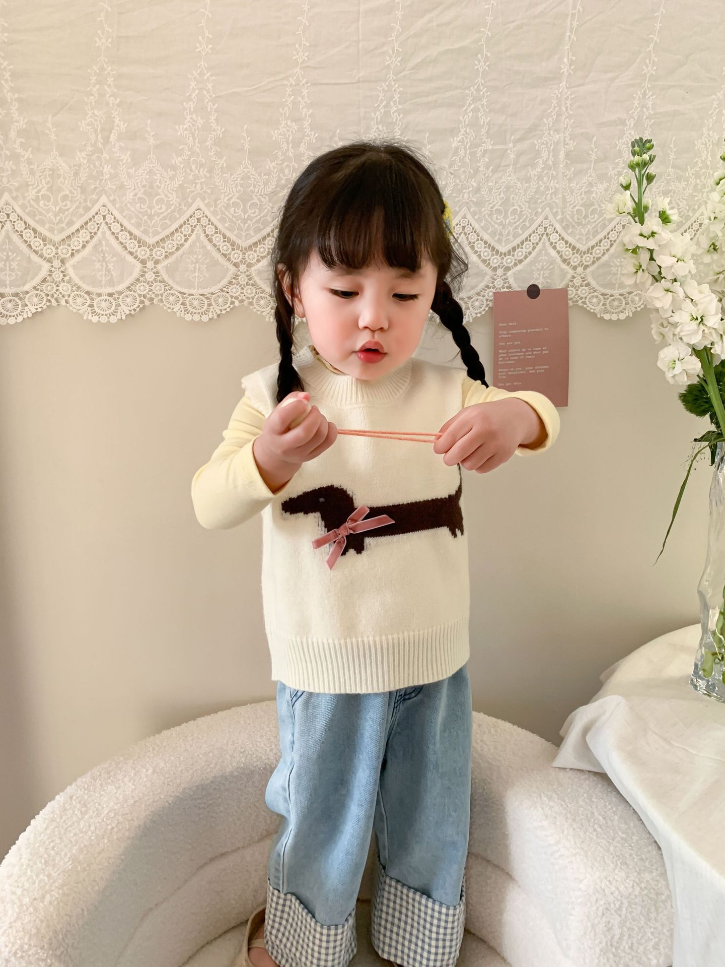제이트리 아동복 여아 청바지 2025 봄 신상품 한국 스타일 캐주얼 롤업 팬츠 여아용 긴바지스토어 가기
