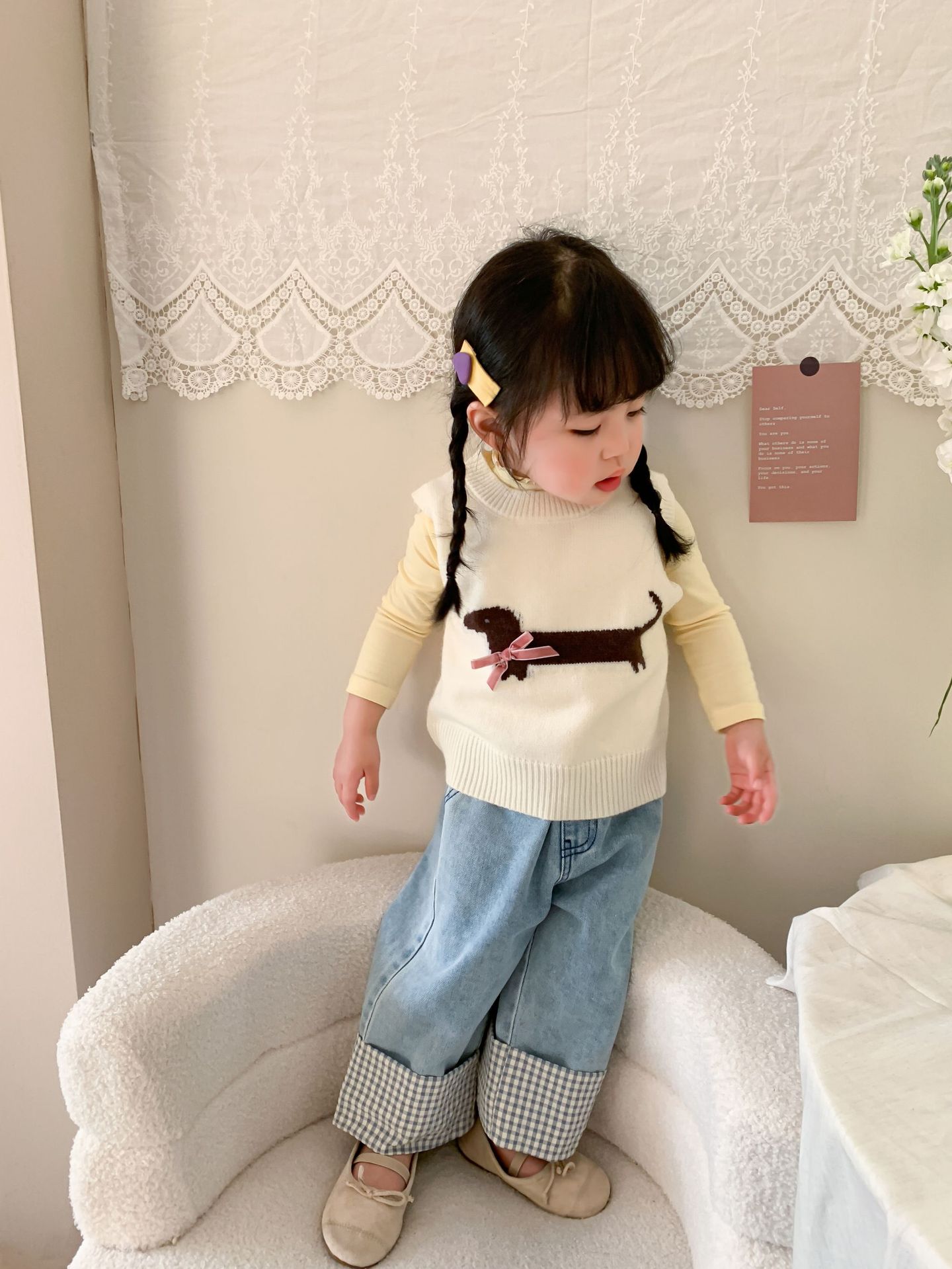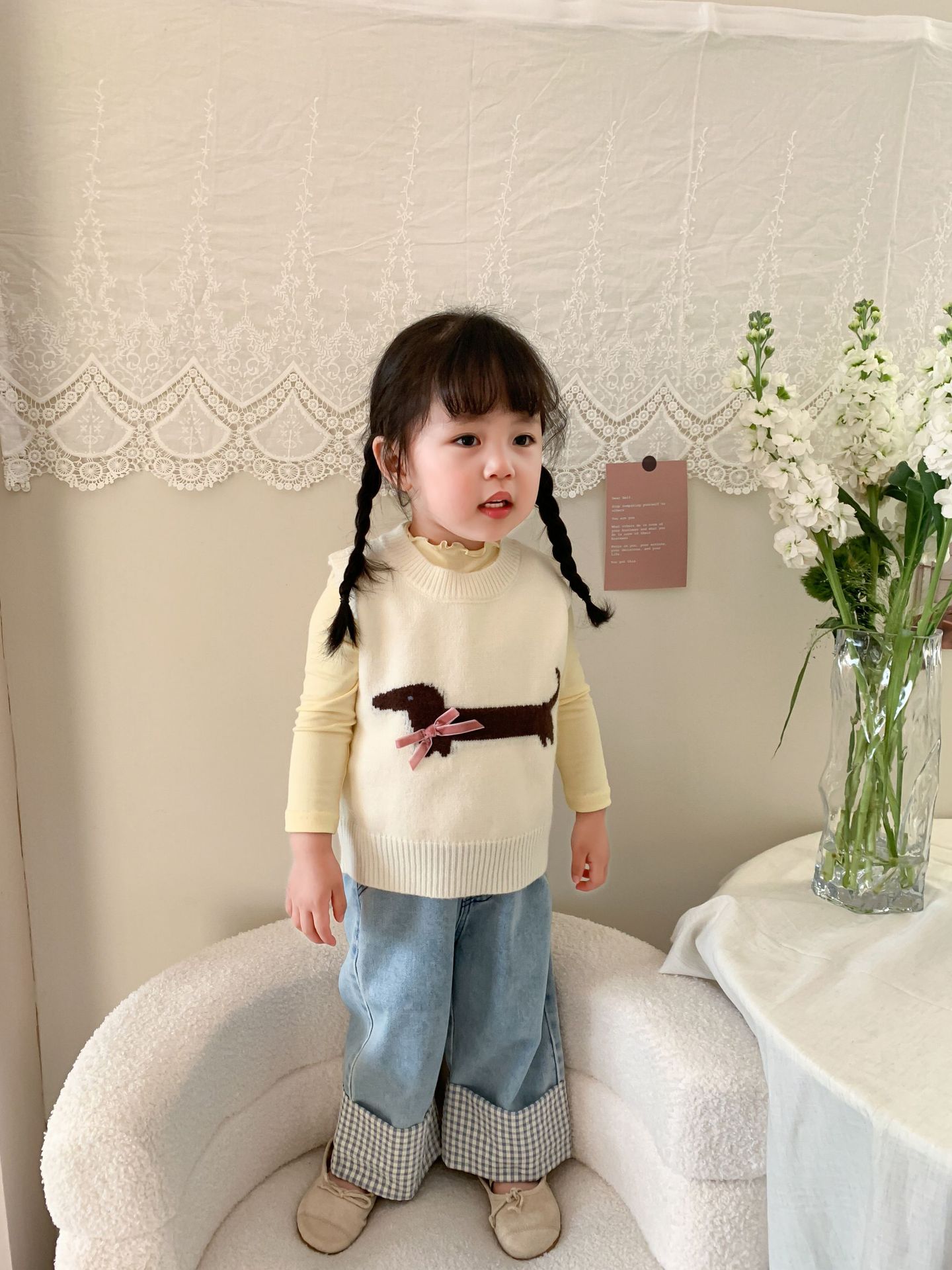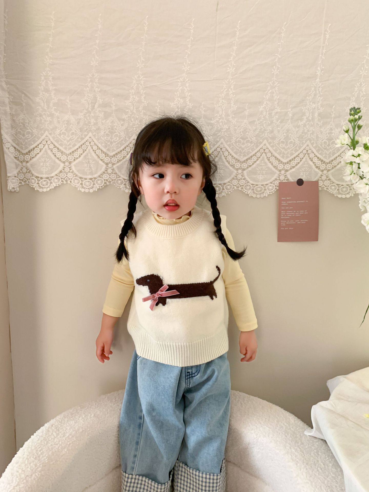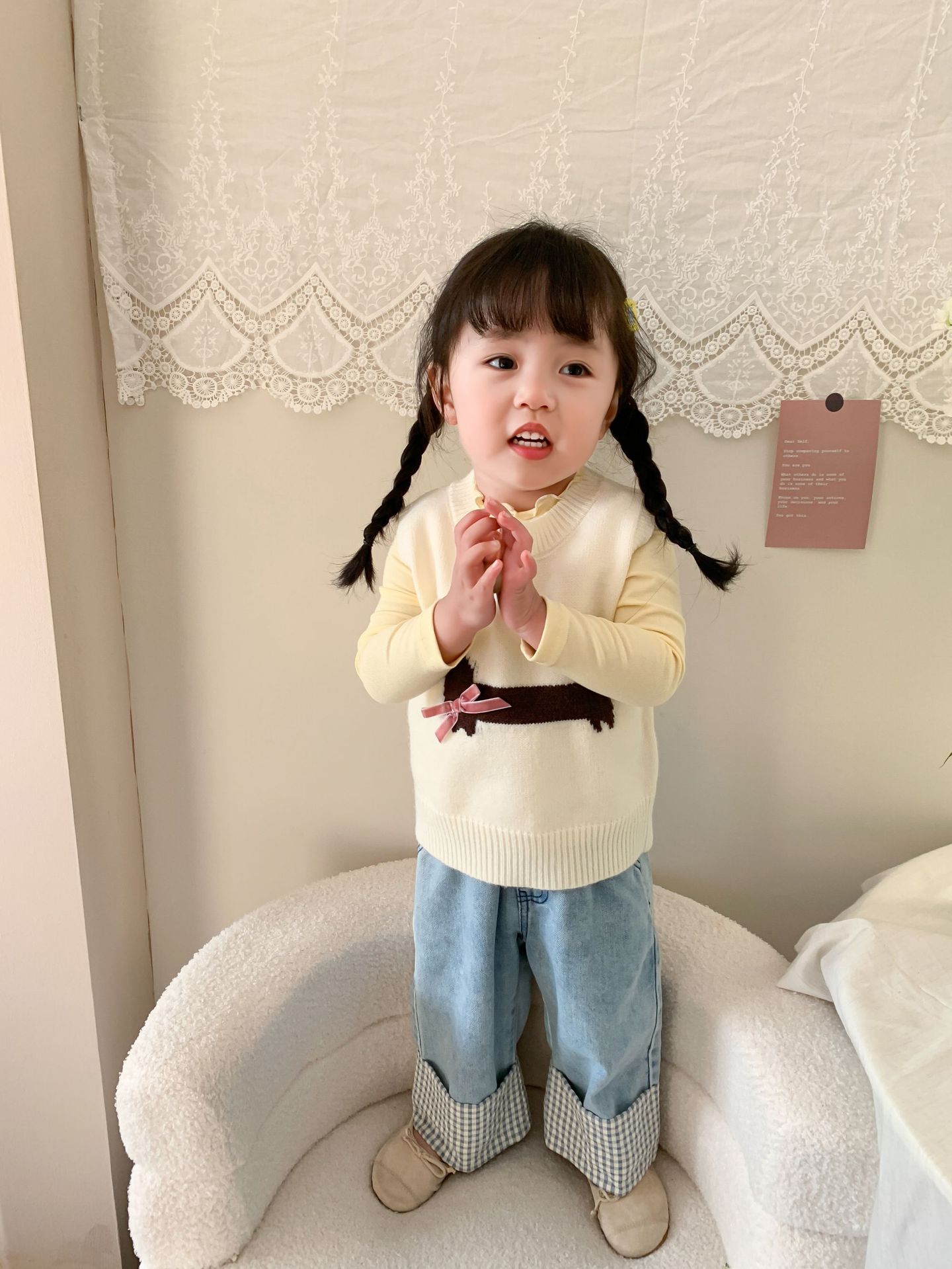 제이트리 아동복 여아 청바지 2025 봄 신상품 한국 스타일 캐주얼 롤업 팬츠 여아용 긴바지스토어 가기