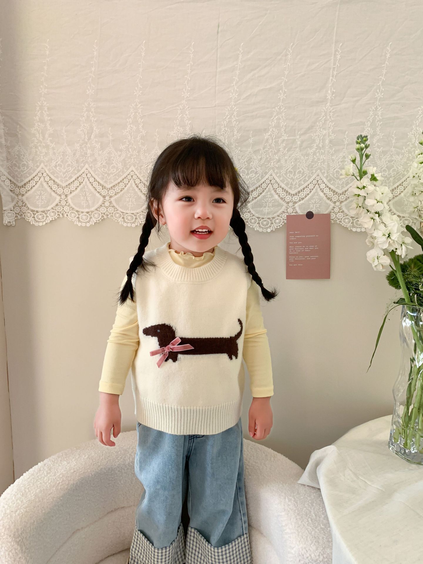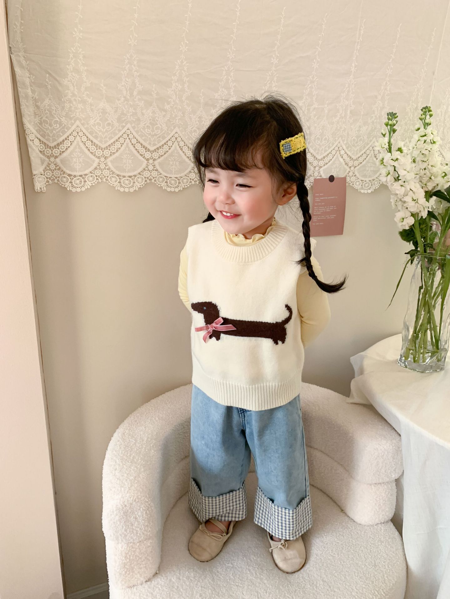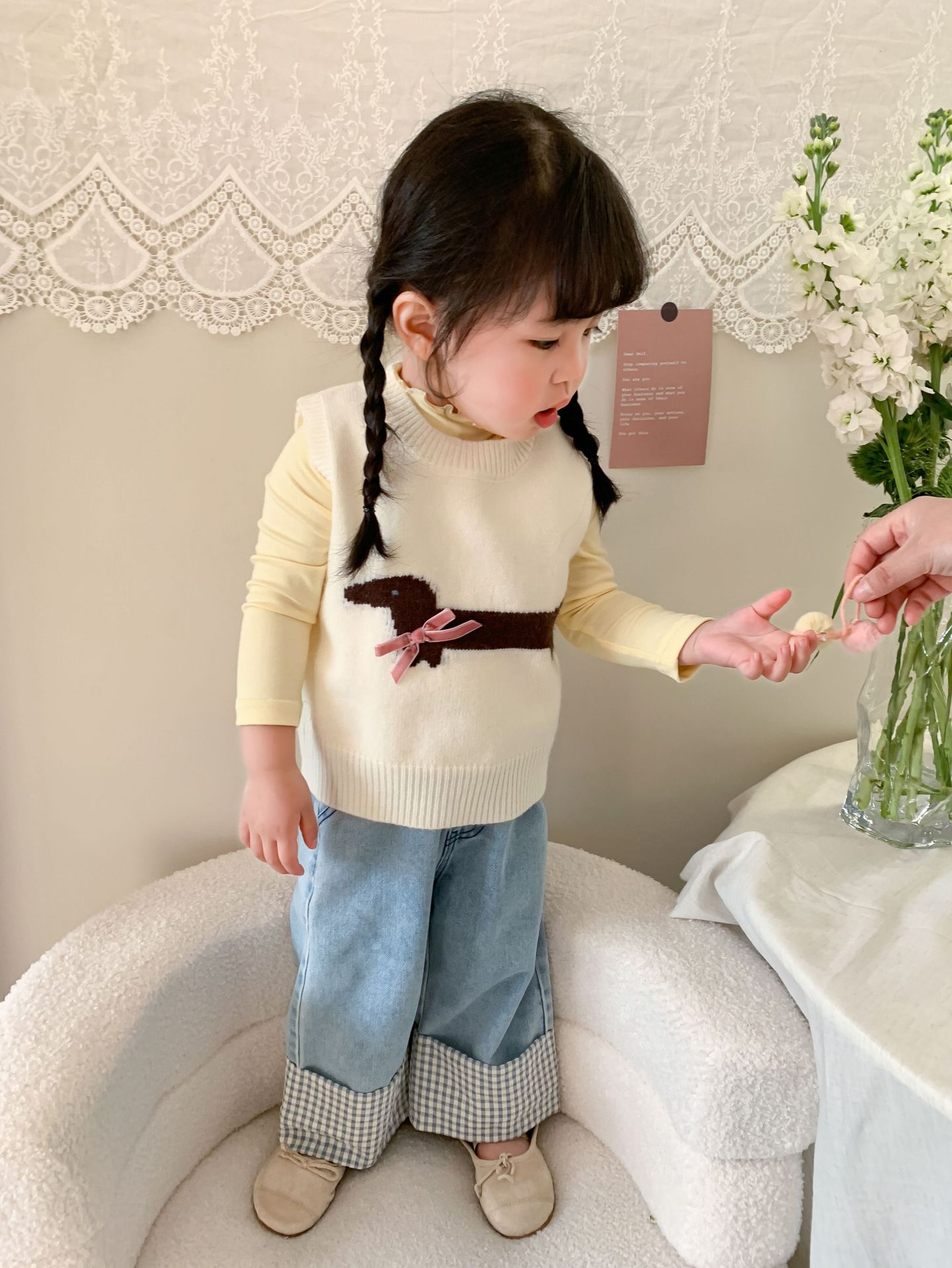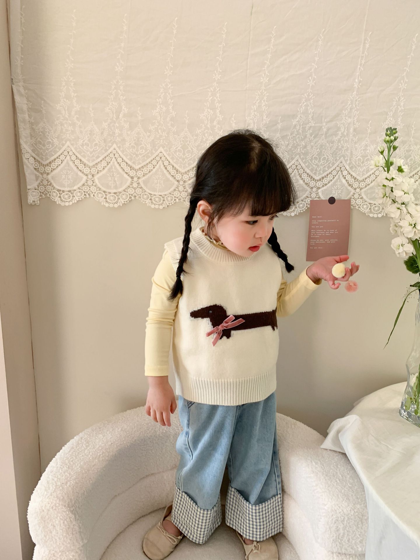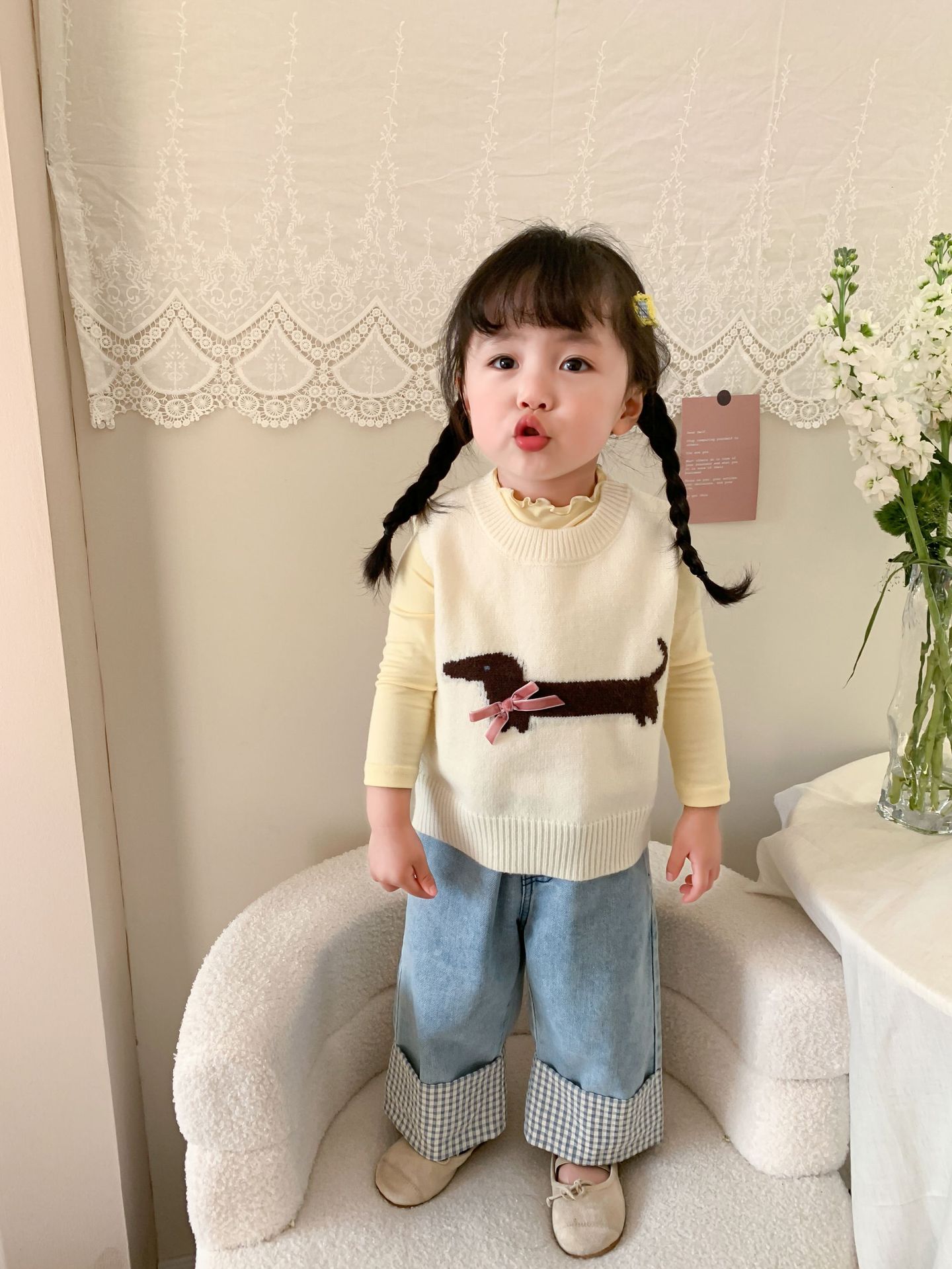 제이트리 아동복 여아 청바지 2025 봄 신상품 한국 스타일 캐주얼 롤업 팬츠 여아용 긴바지스토어 가기