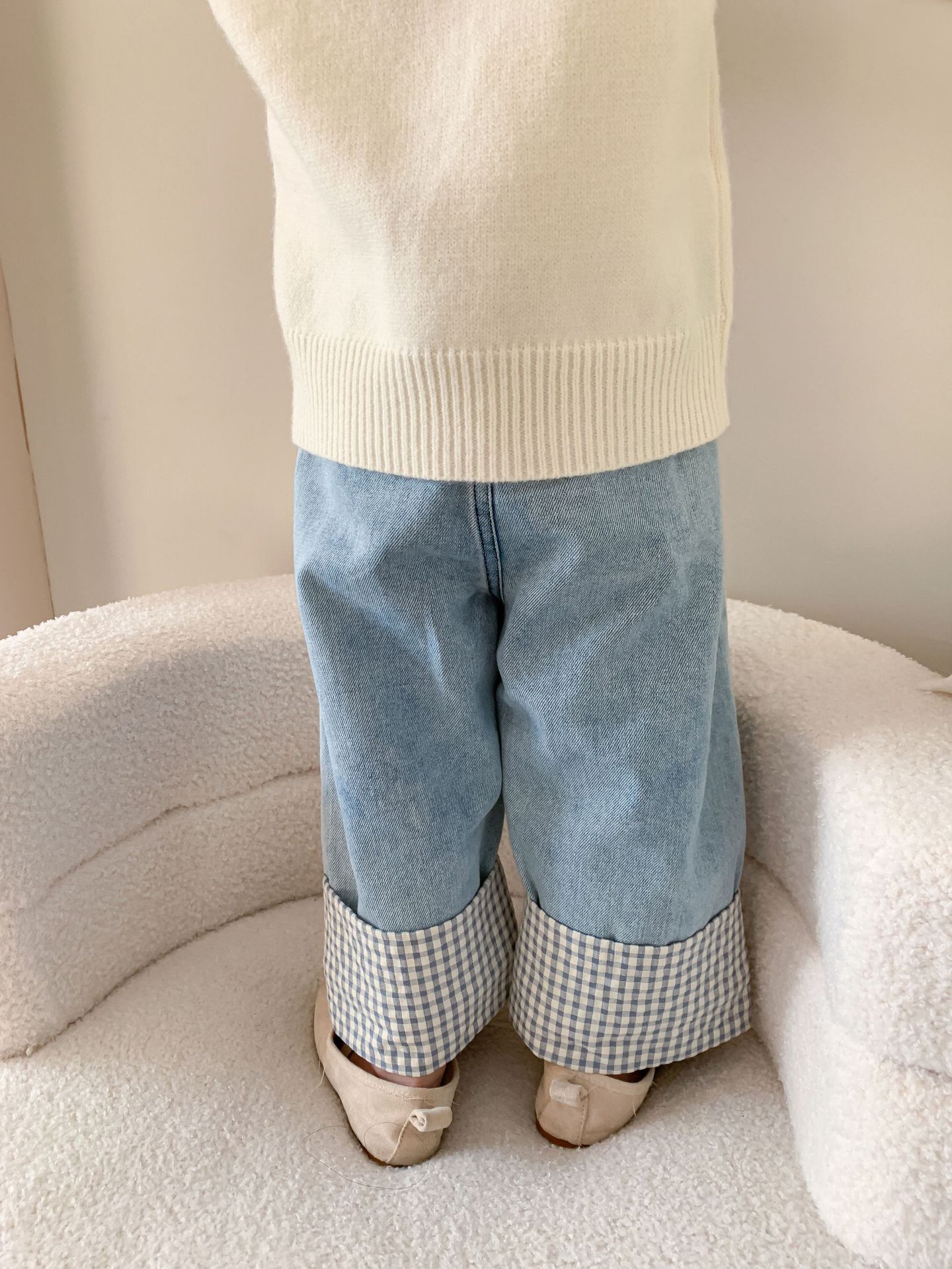 • 롤드 체크 무늬 청바지