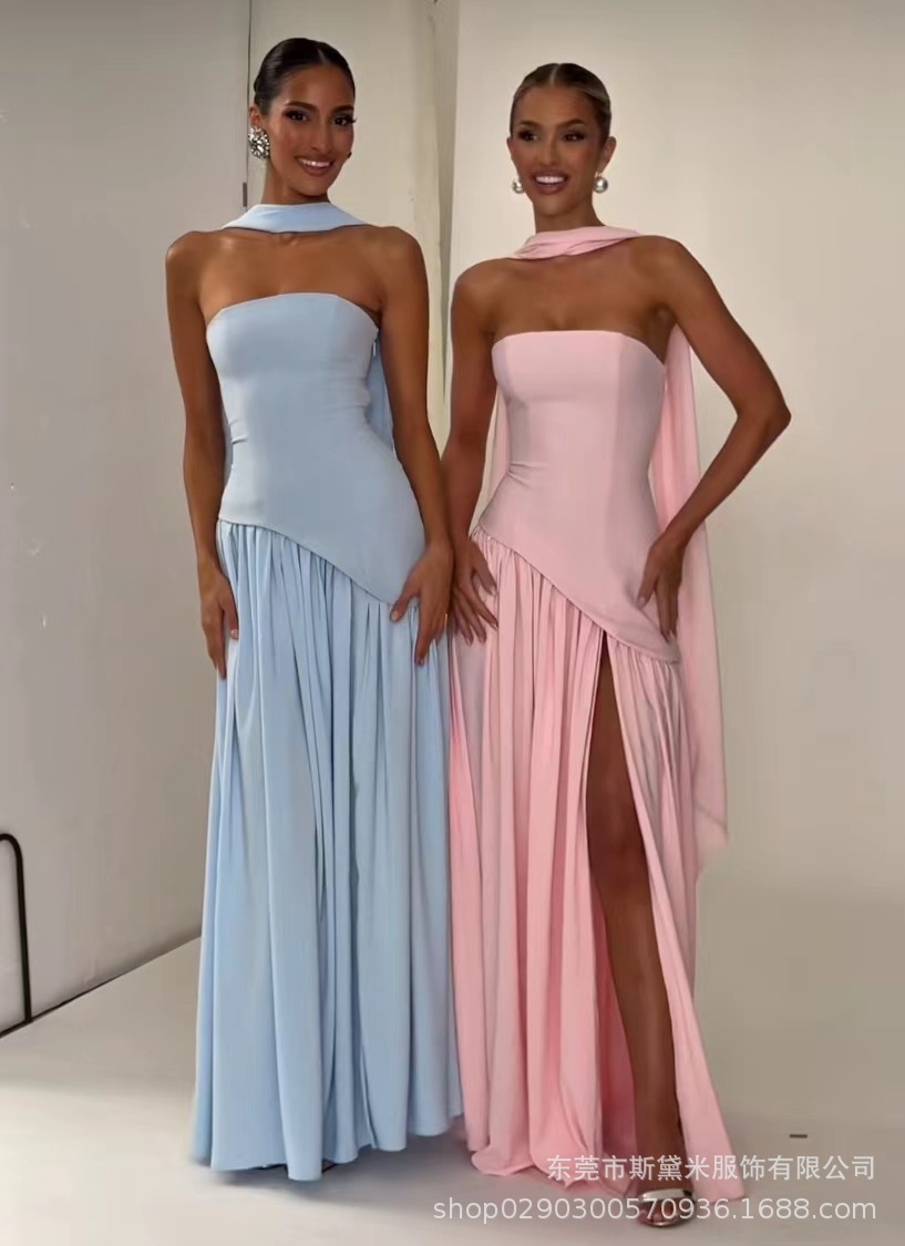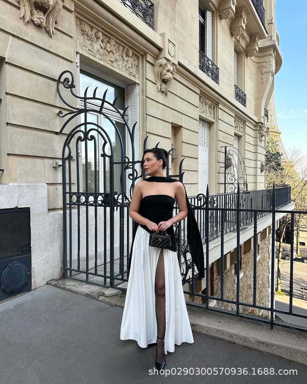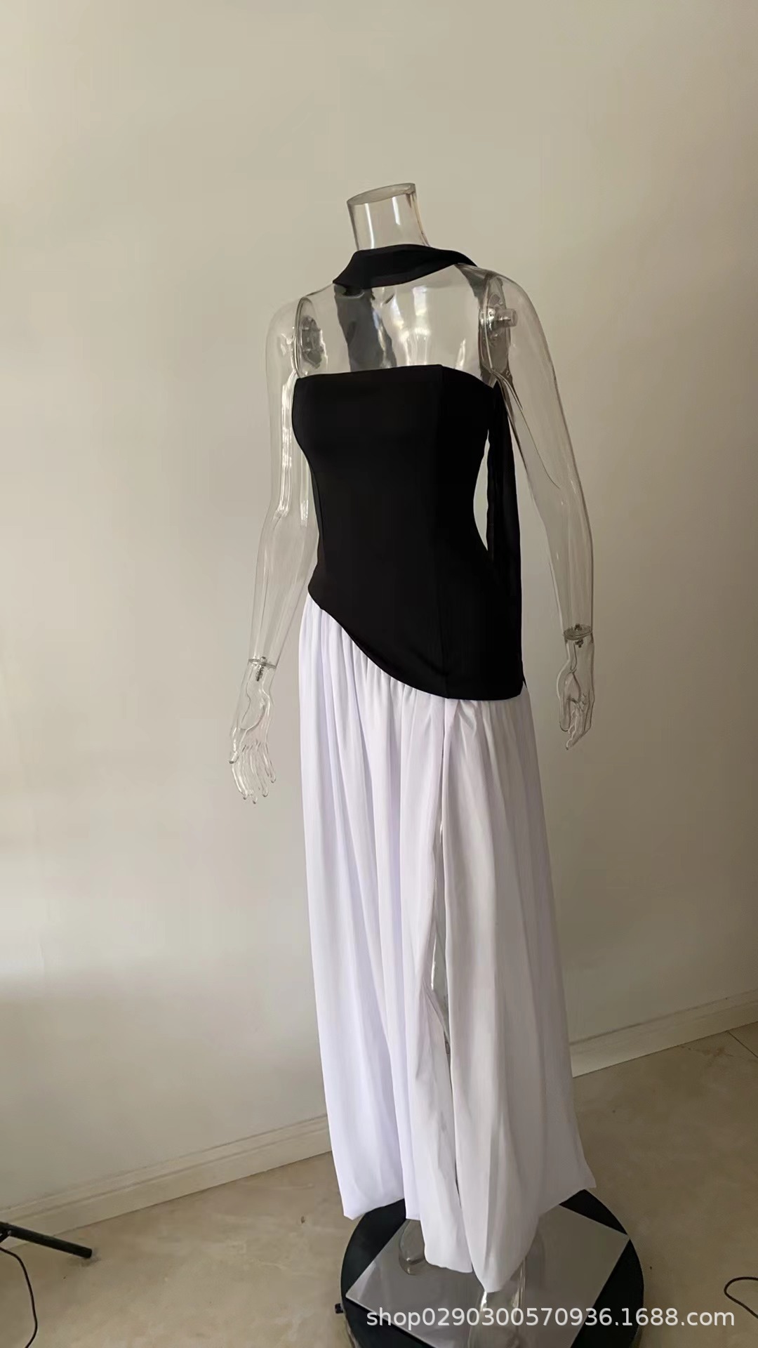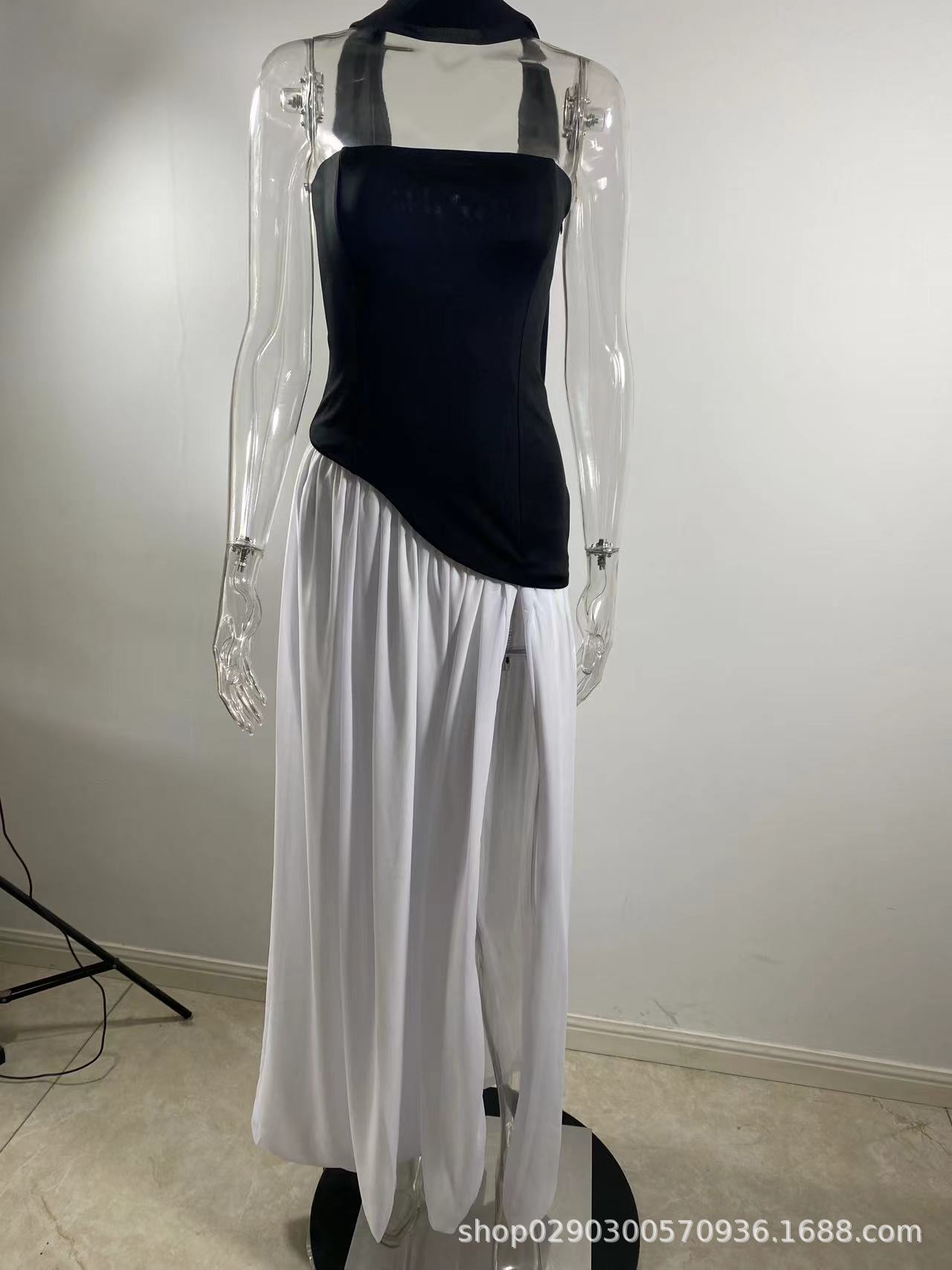 SDM144 우아한 콘트라스트 컬러 지퍼 타이트 원피스 불규칙한 분할 섹시한 휴일 긴 원피스 품질 치마