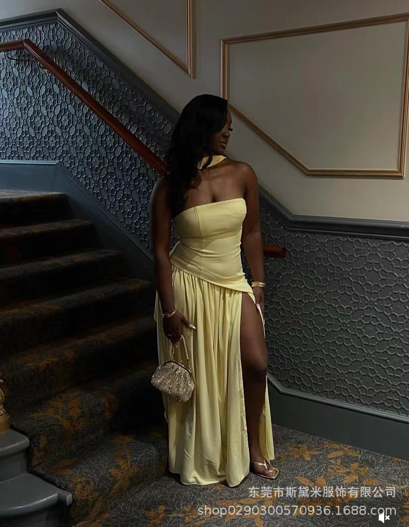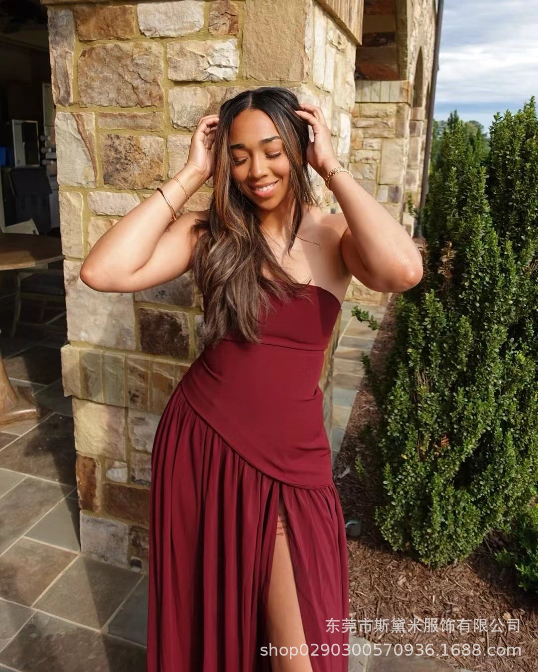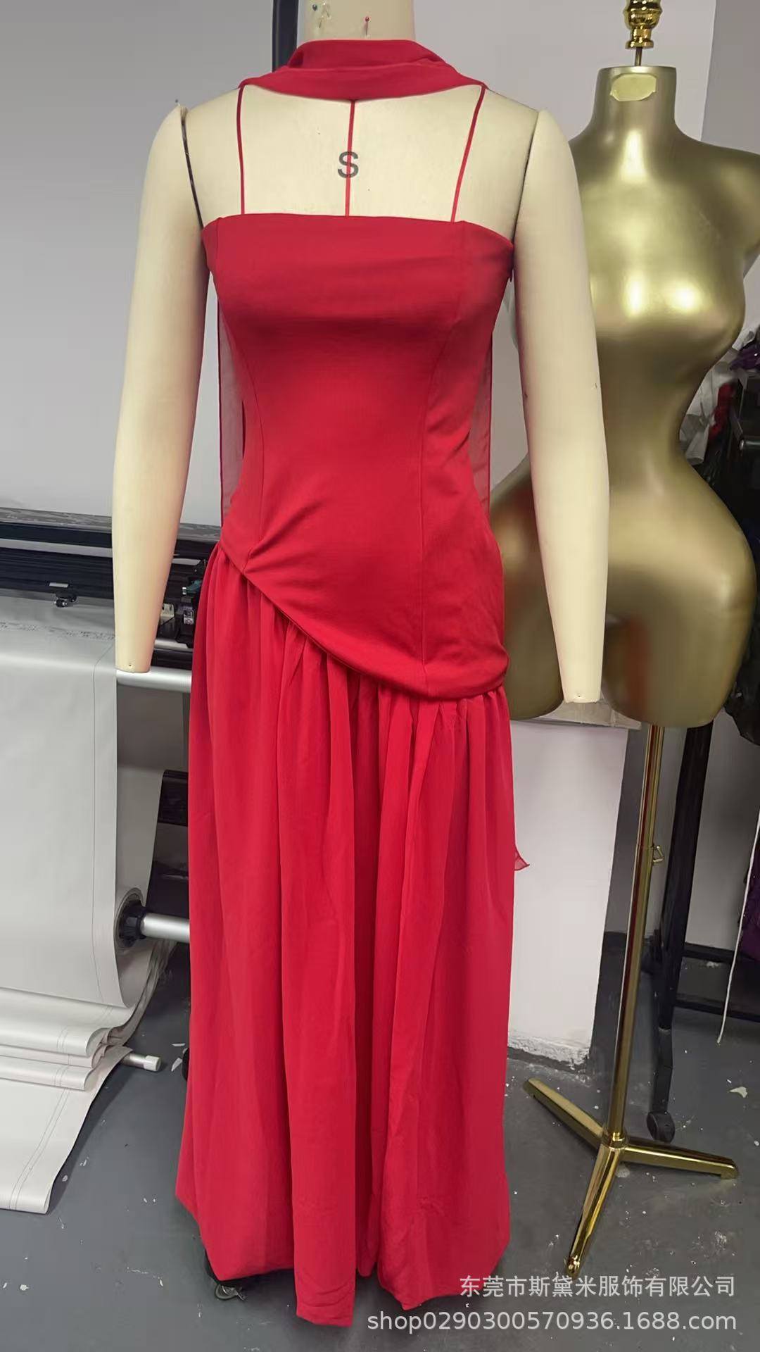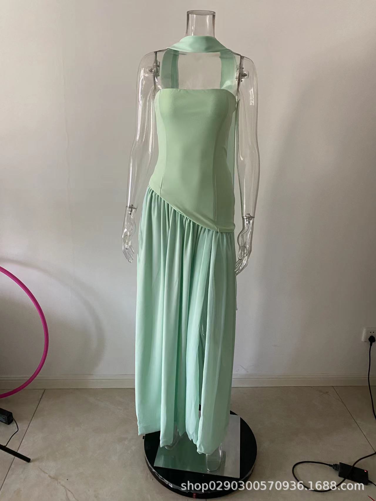 SDM144 우아한 콘트라스트 컬러 지퍼 타이트 원피스 불규칙한 분할 섹시한 휴일 긴 원피스 품질 치마