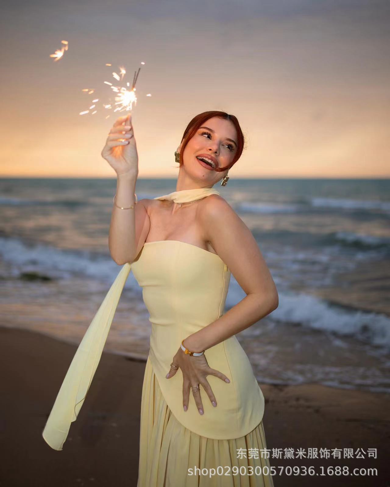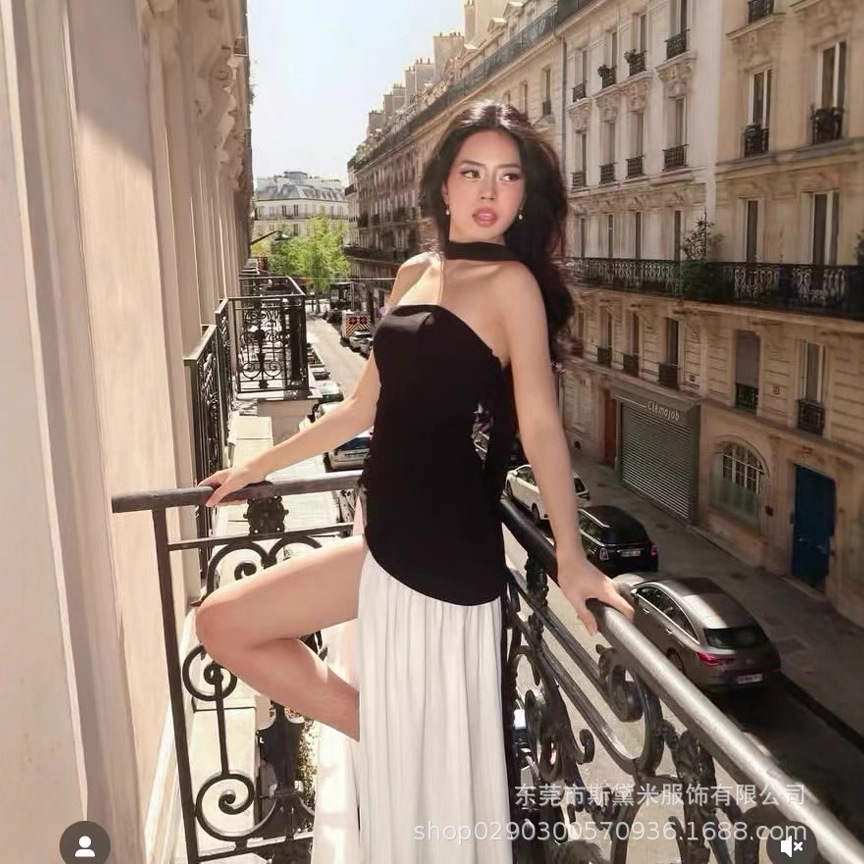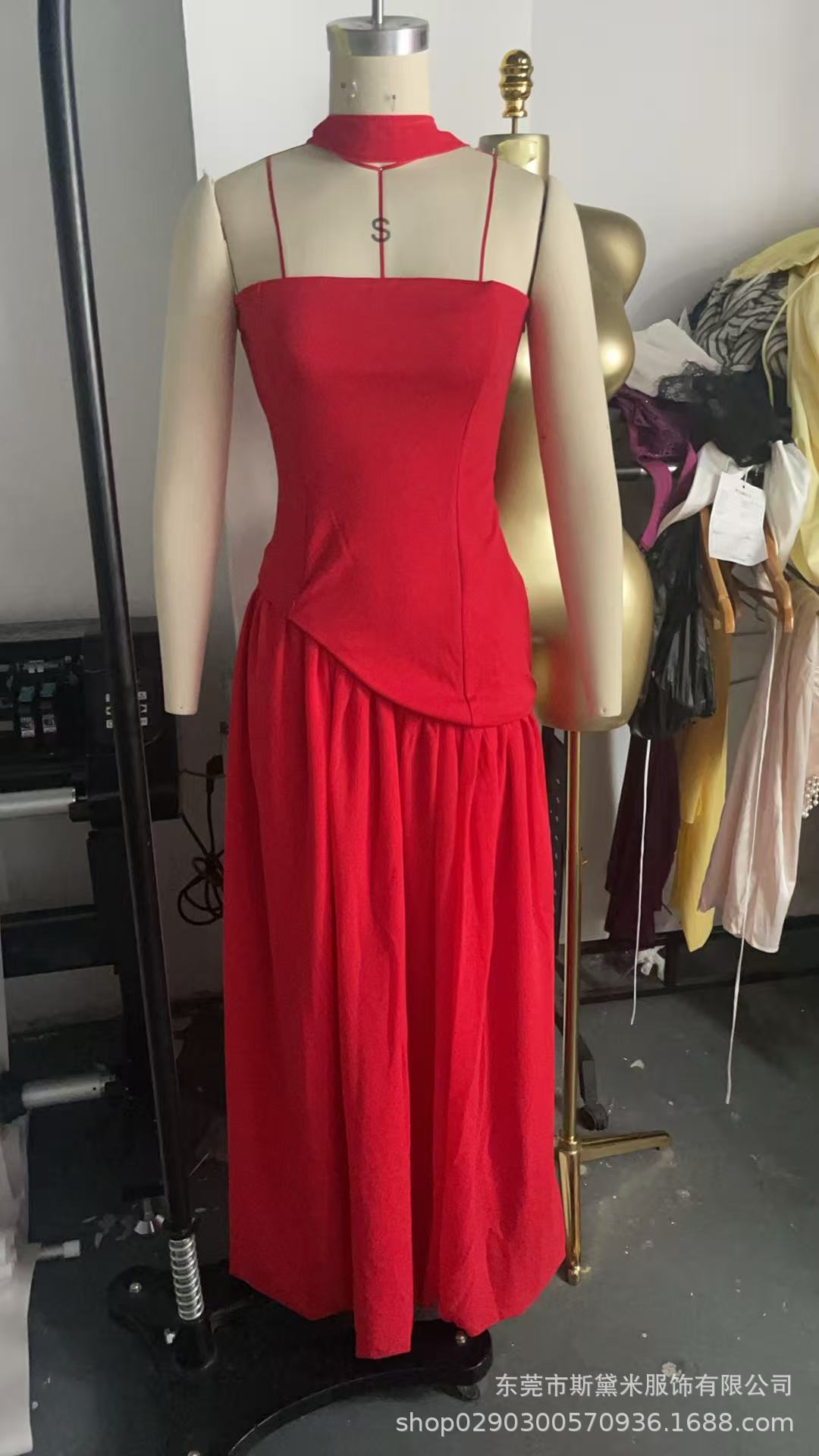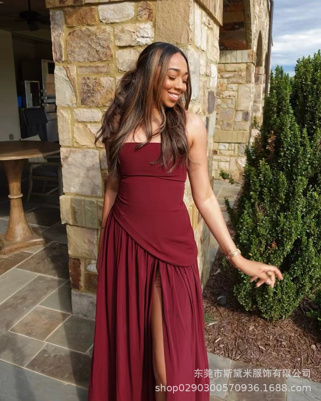 SDM144 우아한 콘트라스트 컬러 지퍼 타이트 원피스 불규칙한 분할 섹시한 휴일 긴 원피스 품질 치마