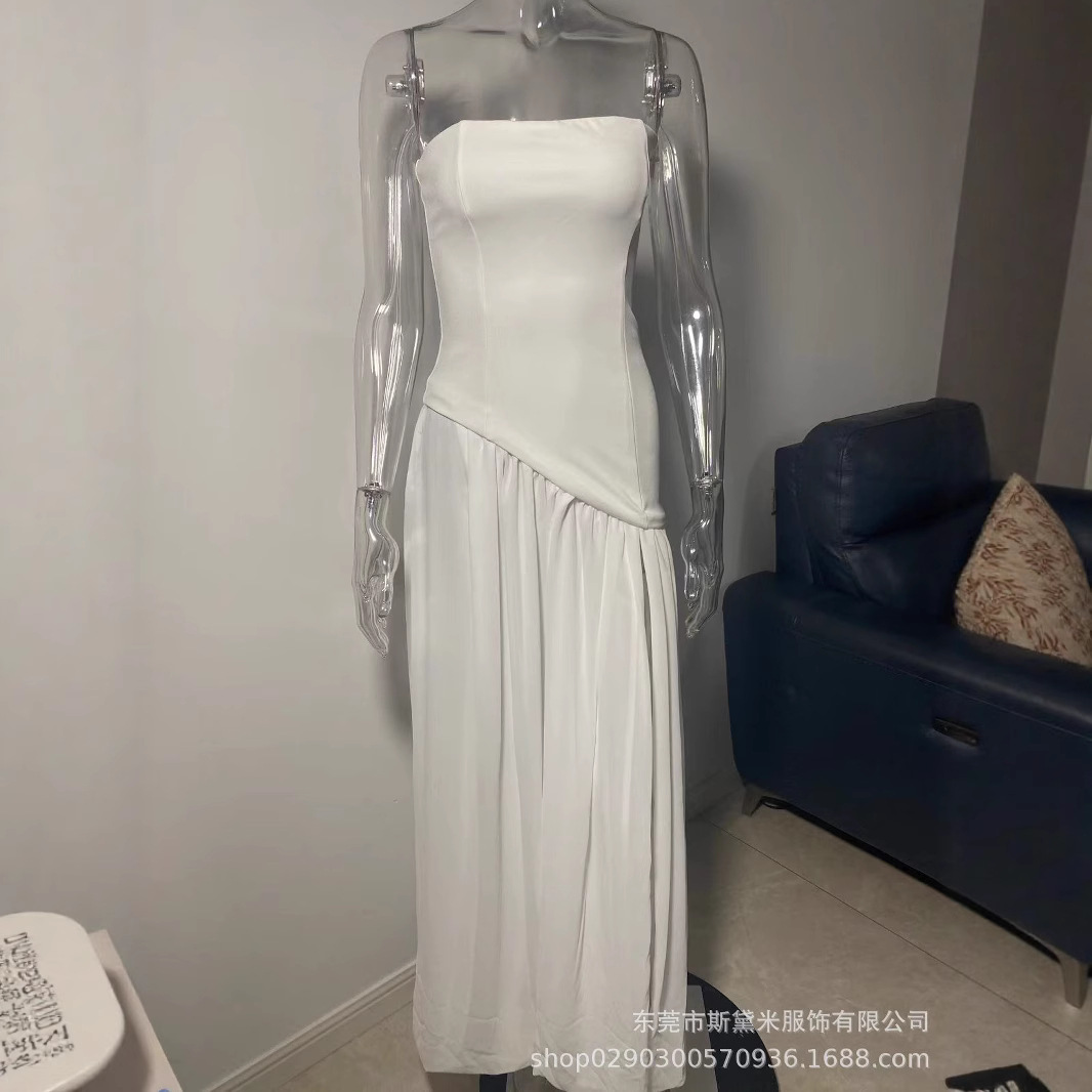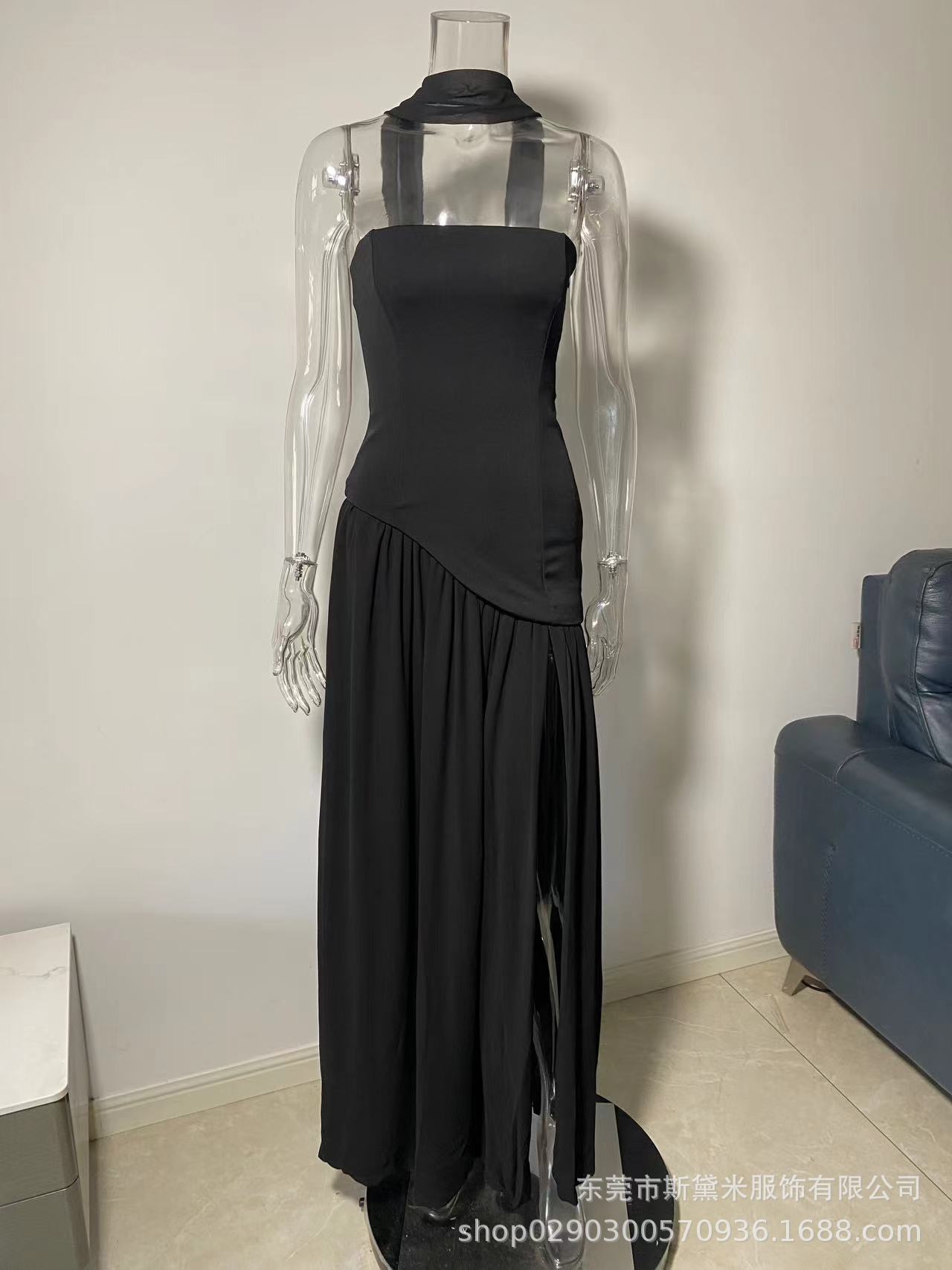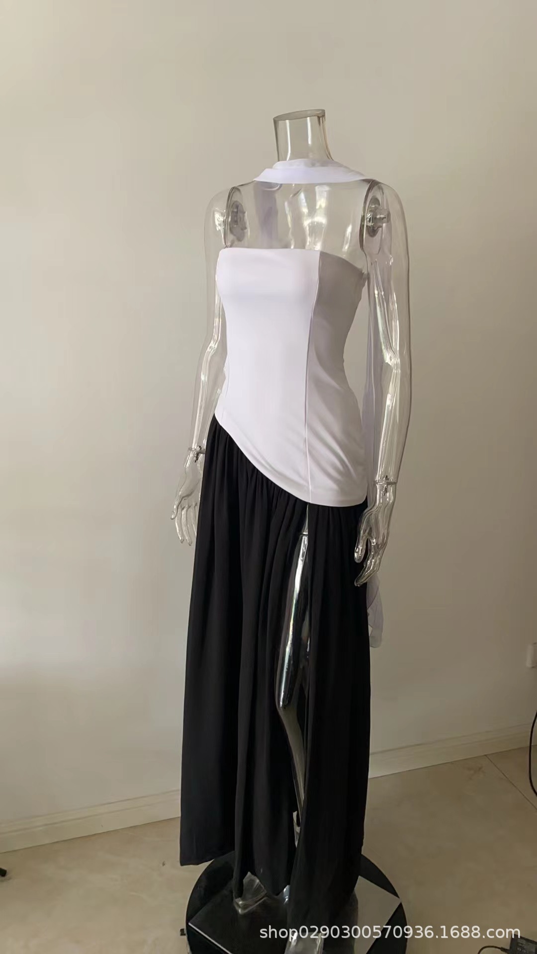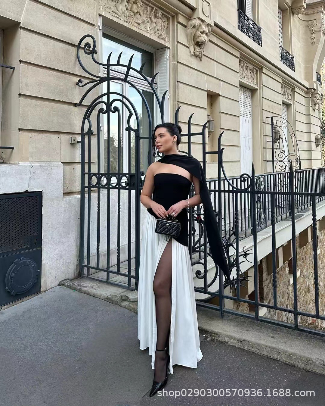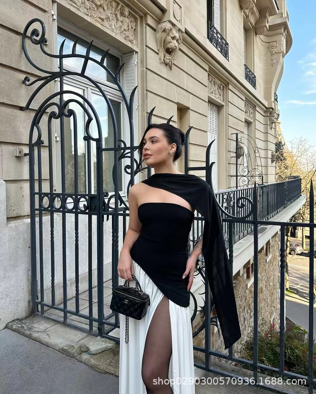 SDM144 우아한 콘트라스트 컬러 지퍼 타이트 원피스 불규칙한 분할 섹시한 휴일 긴 원피스 품질 치마스토어 가기