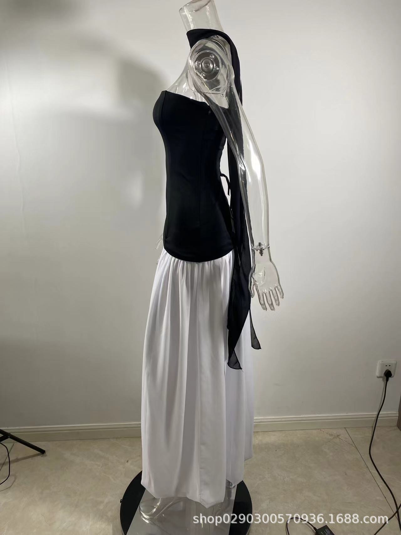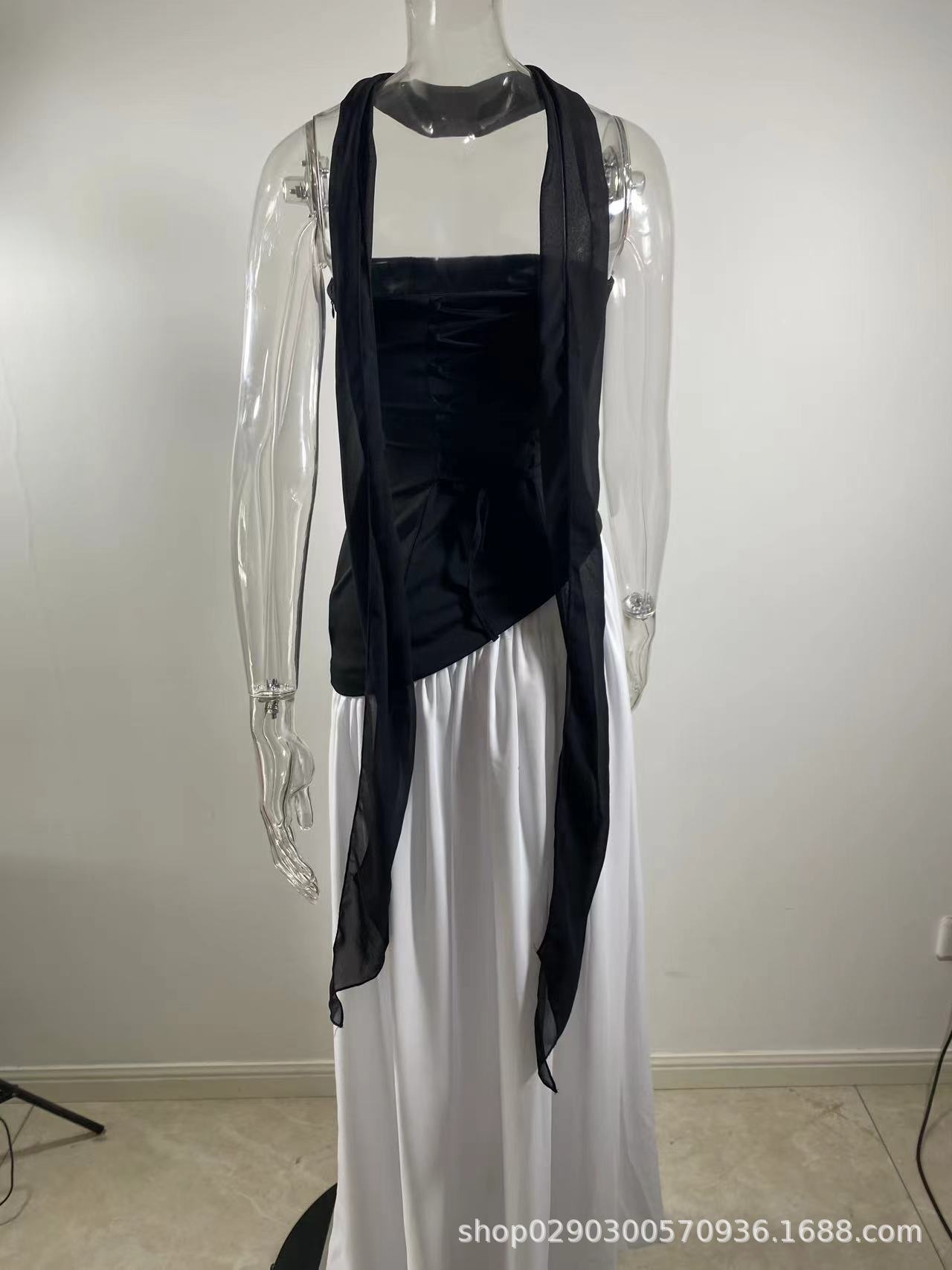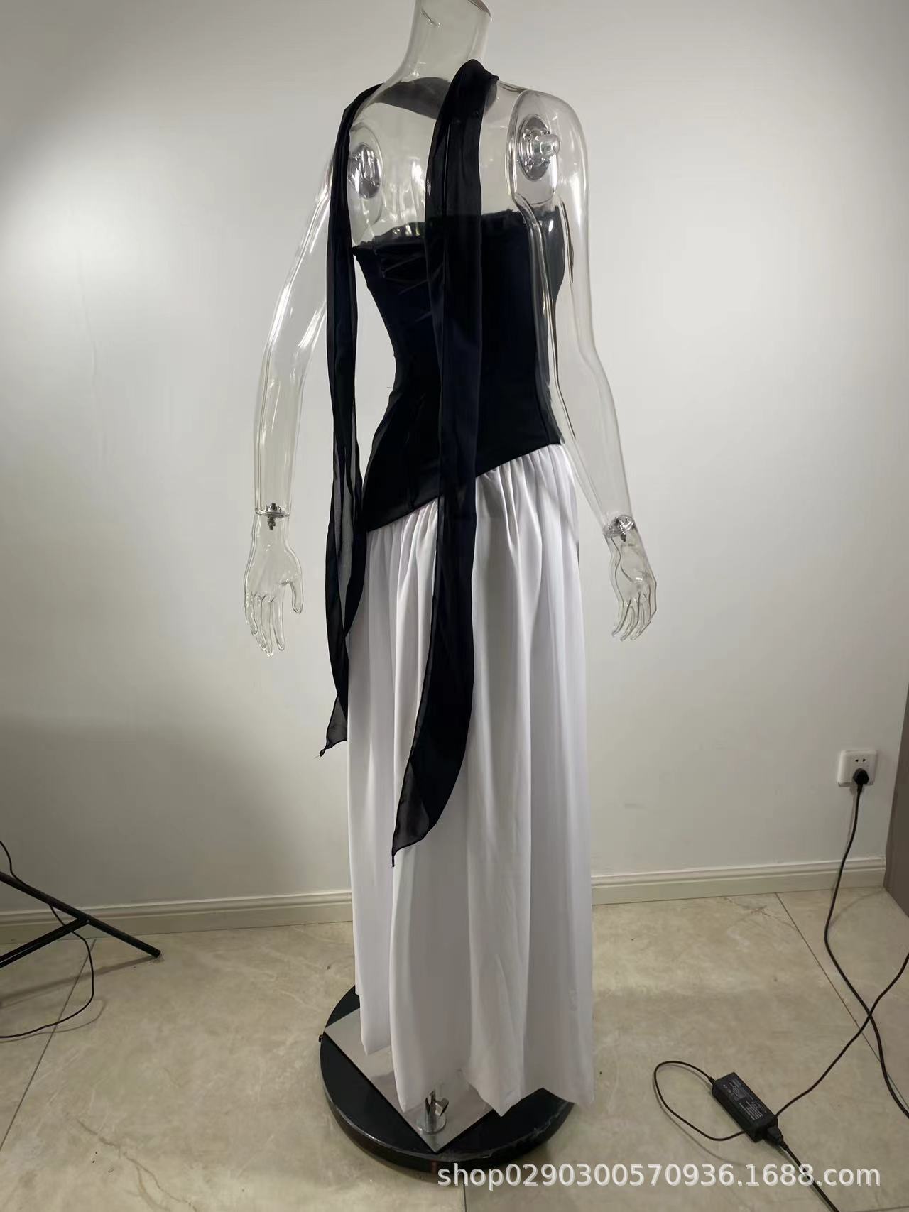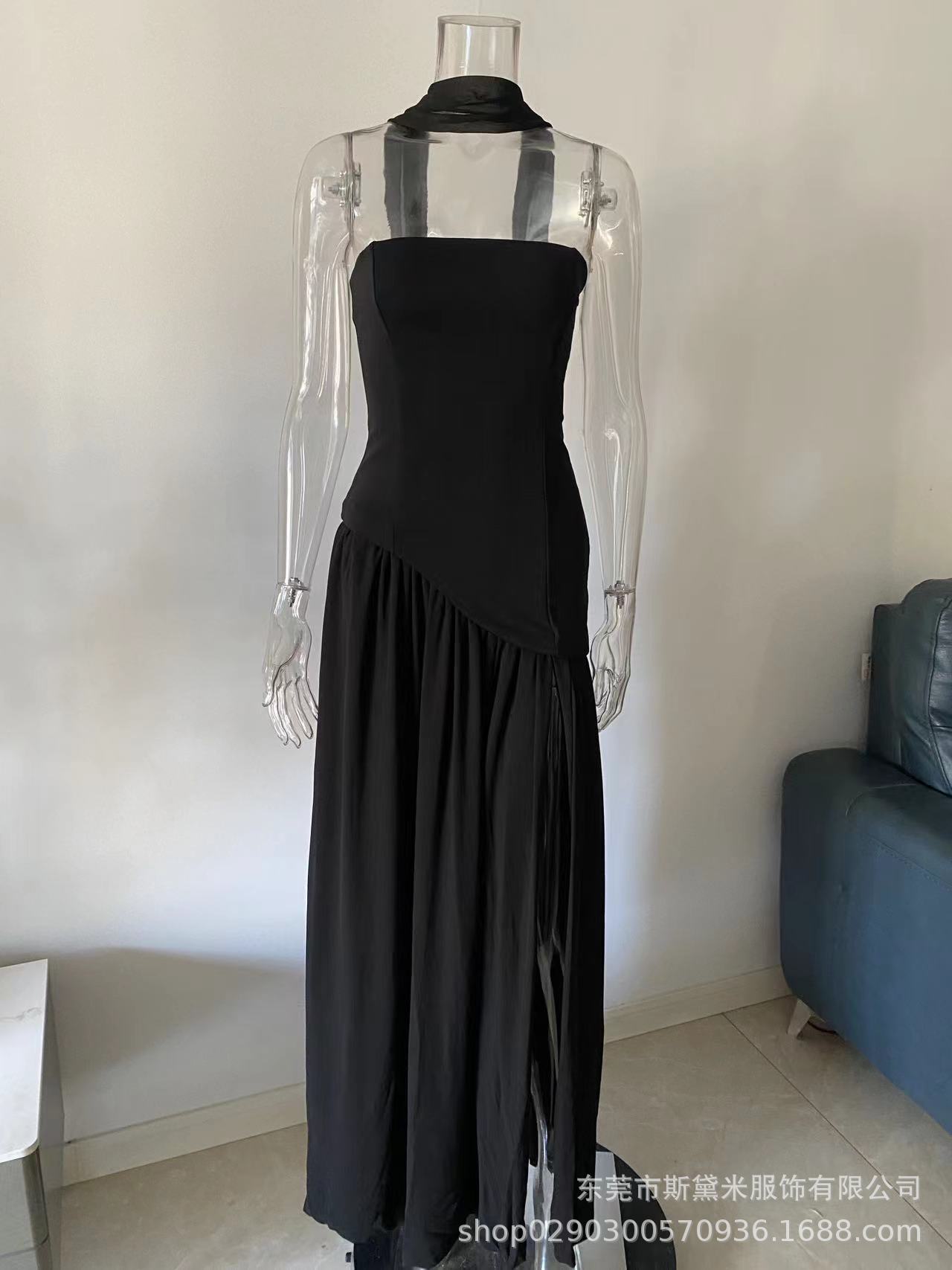 SDM144 우아한 콘트라스트 컬러 지퍼 타이트 원피스 불규칙한 분할 섹시한 휴일 긴 원피스 품질 치마스토어 가기