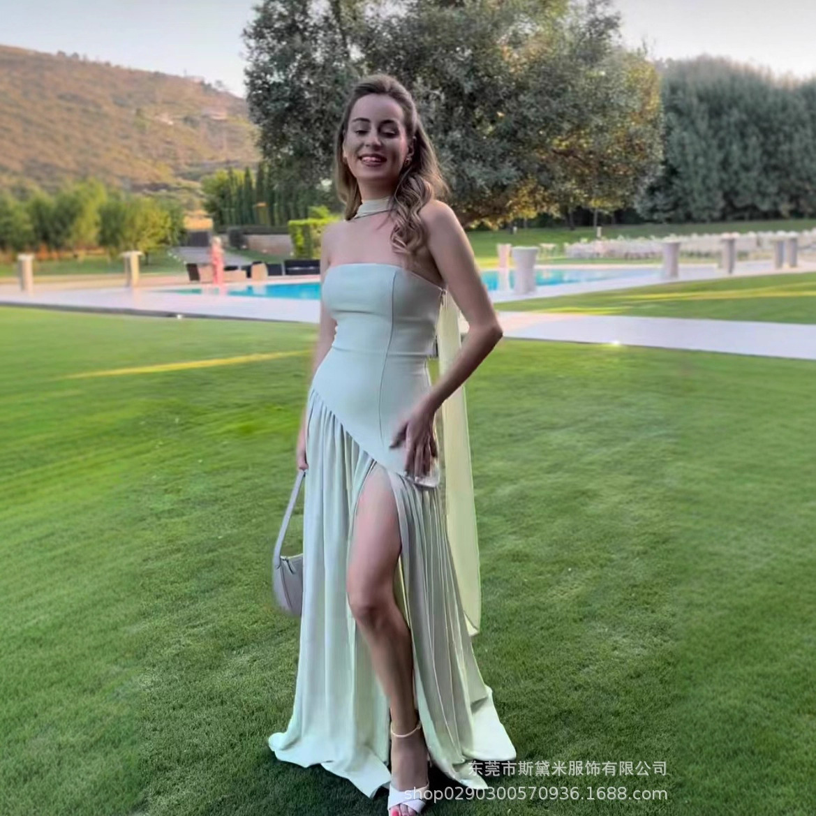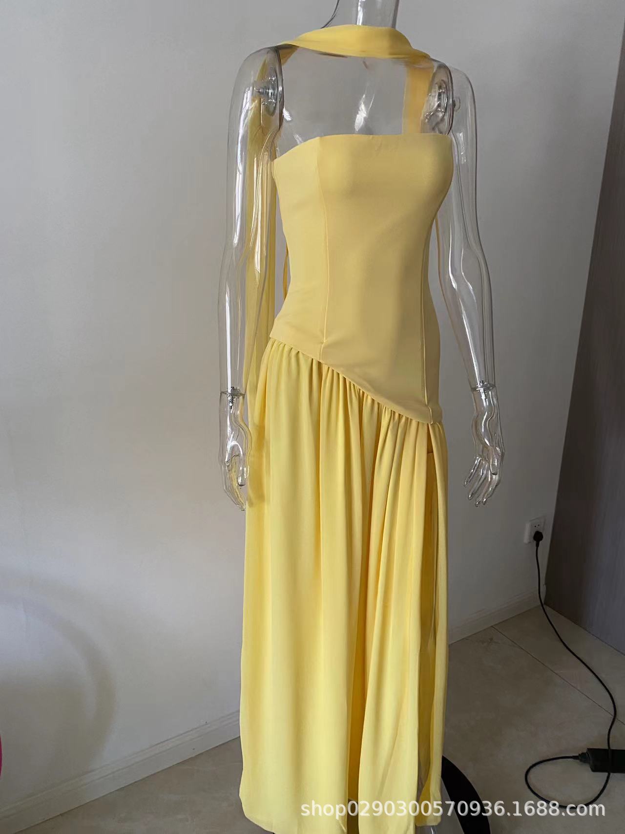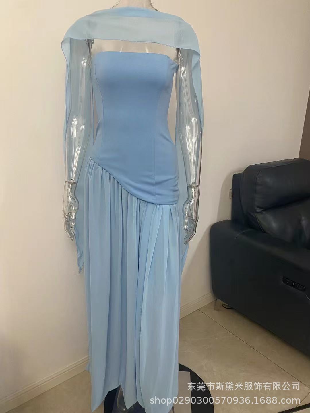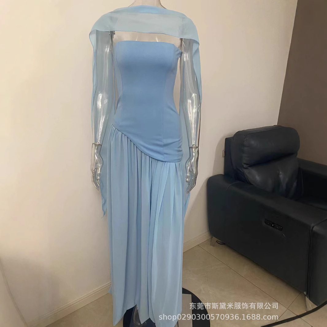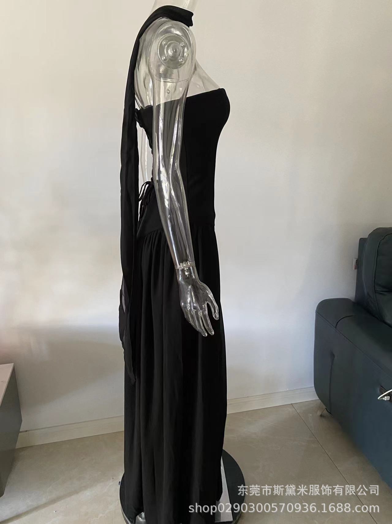 SDM144 우아한 콘트라스트 컬러 지퍼 타이트 원피스 불규칙한 분할 섹시한 휴일 긴 원피스 품질 치마스토어 가기
