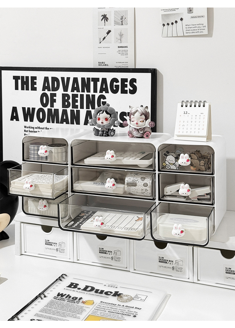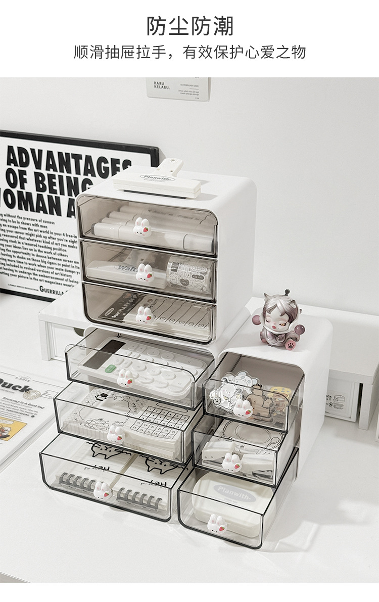 투명 화장품 책상 문구 랙 사무실 책상 마무리 상자 아크릴 데스크탑 저장 상자 서랍 유형
