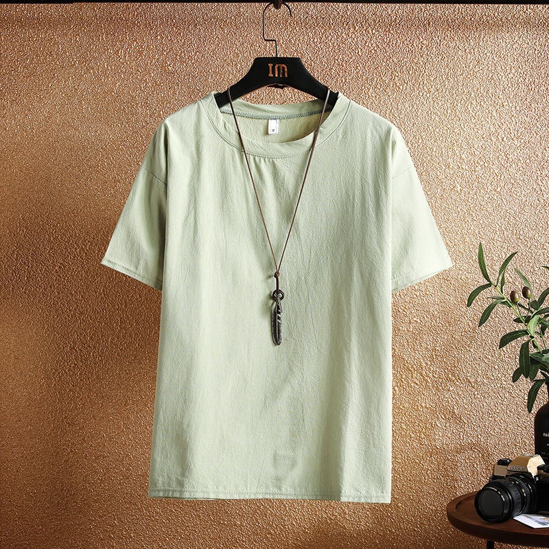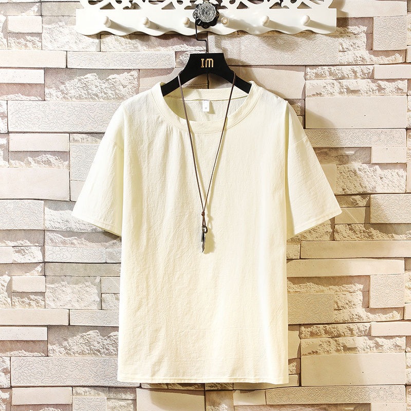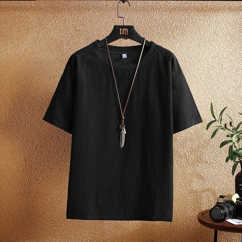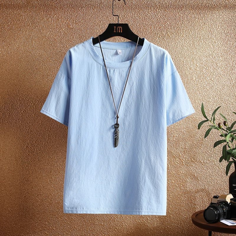 아이스 실크 리넨 반팔 티셔츠 남자 여름 트렌디 브랜드 코튼 및 리넨 반소매 탑 옷 아빠 일본식 빈티지 티셔츠스토어 가기
