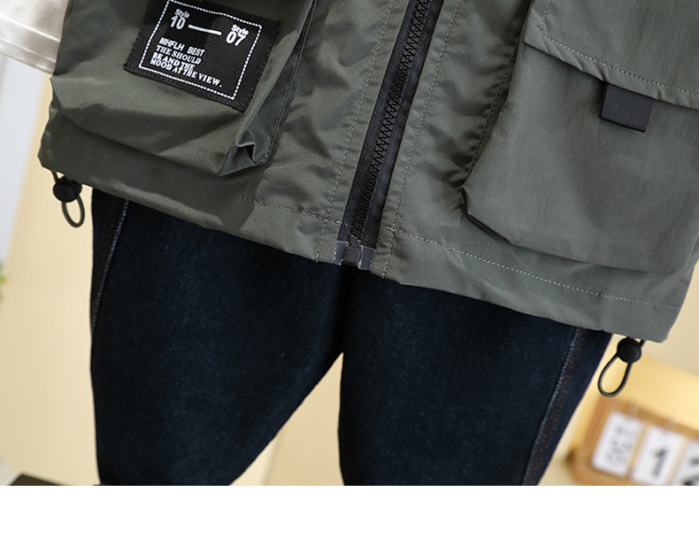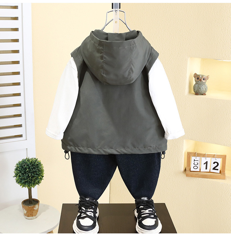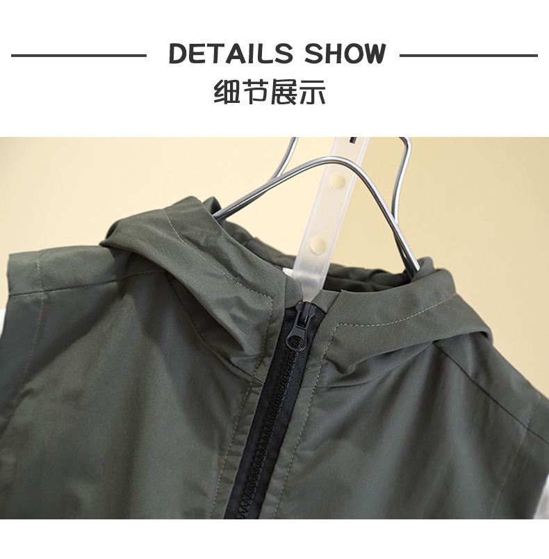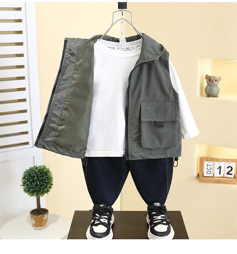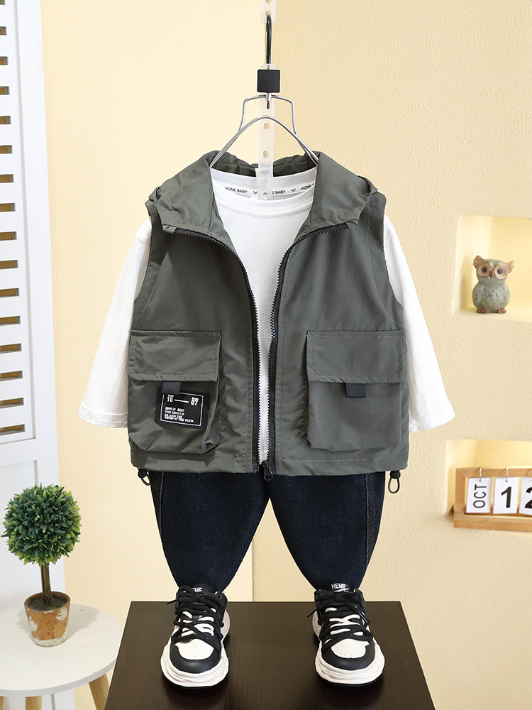 7527 어린이 조끼 봄 소년의 얇은 후드 민소매 재킷 2025 새로운 봄과 가을 캐주얼 탑 트렌디스토어 가기