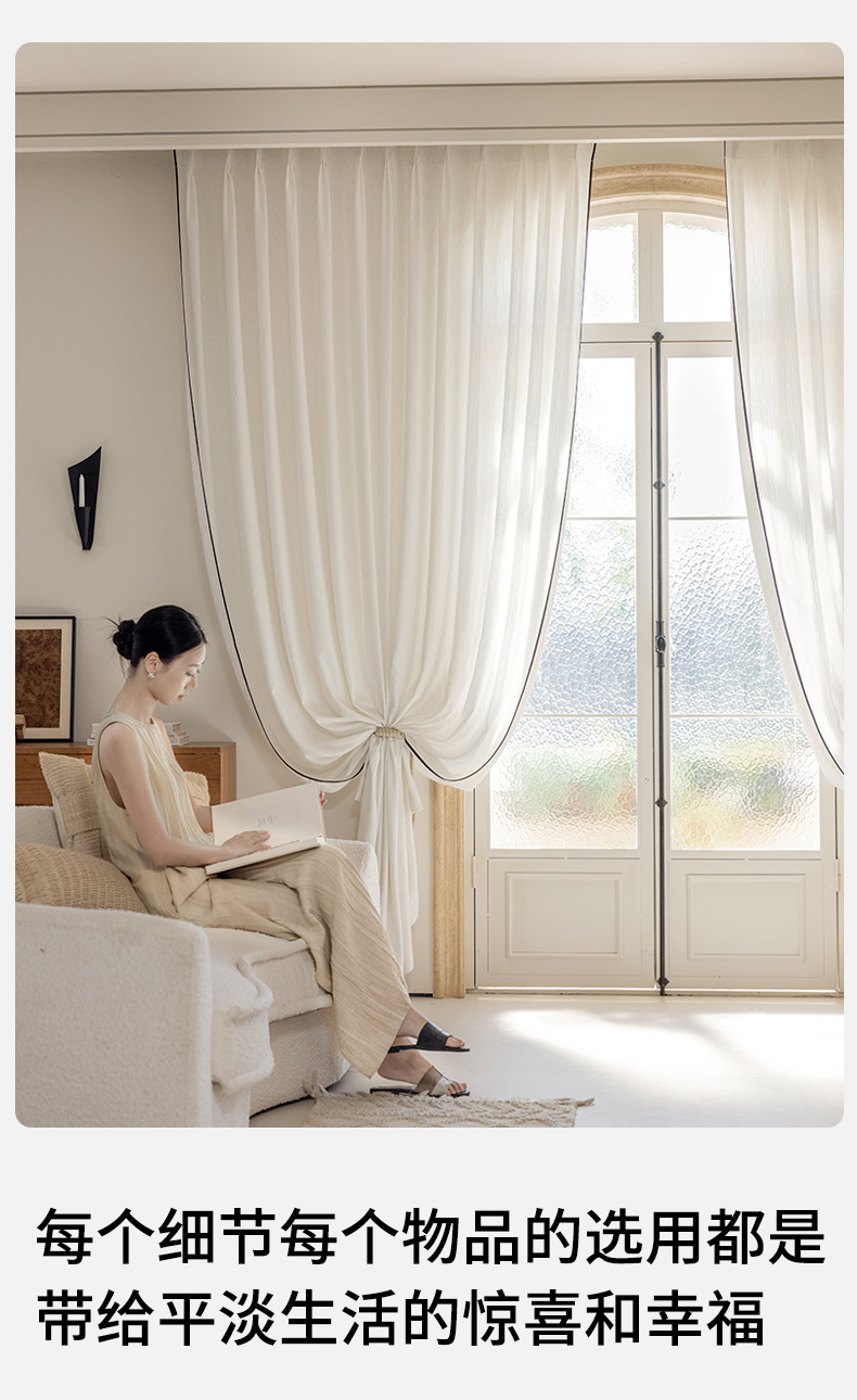 작은 빨간 책 새로운 스타일 Fufeng 원사 투명하고 사악한 거실 침실 발코니 레트로 리넨 검은 가장자리 창 화면 사용자 정의