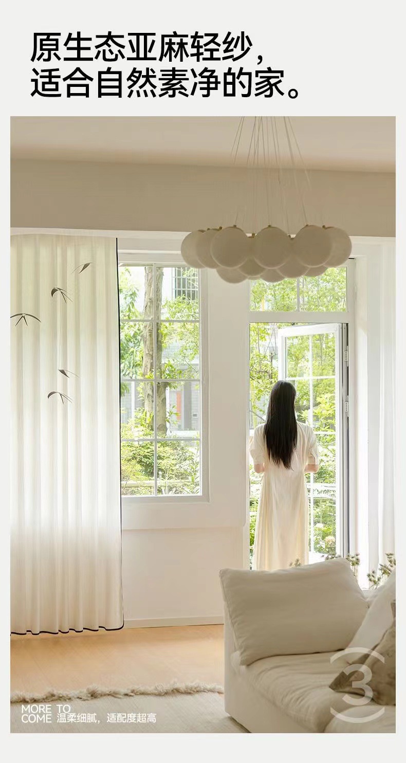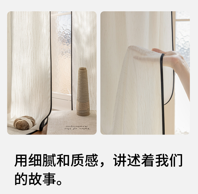 작은 빨간 책 새로운 스타일 Fufeng 원사 투명하고 사악한 거실 침실 발코니 레트로 리넨 검은 가장자리 창 화면 사용자 정의스토어 가기