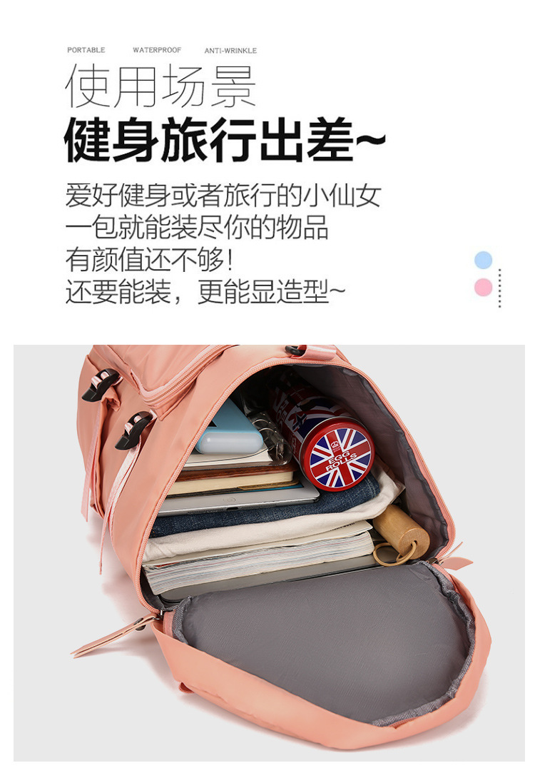 단거리 여행 가방 여성의 경량 대용량 피트니스 가방 독립적 인 신발 빈 건조하고 젖은 별도의 다기능 휴대용 보관 가방