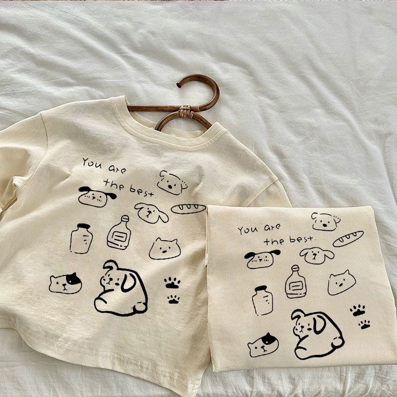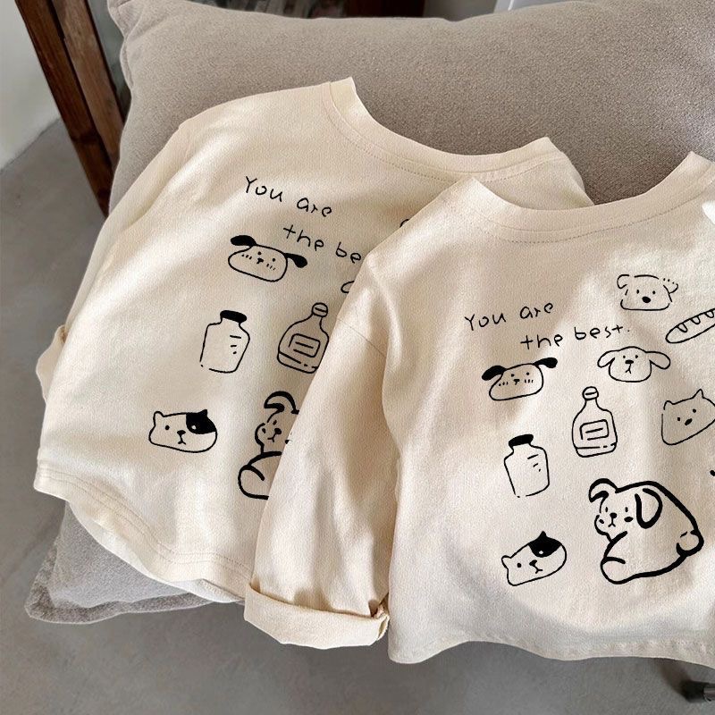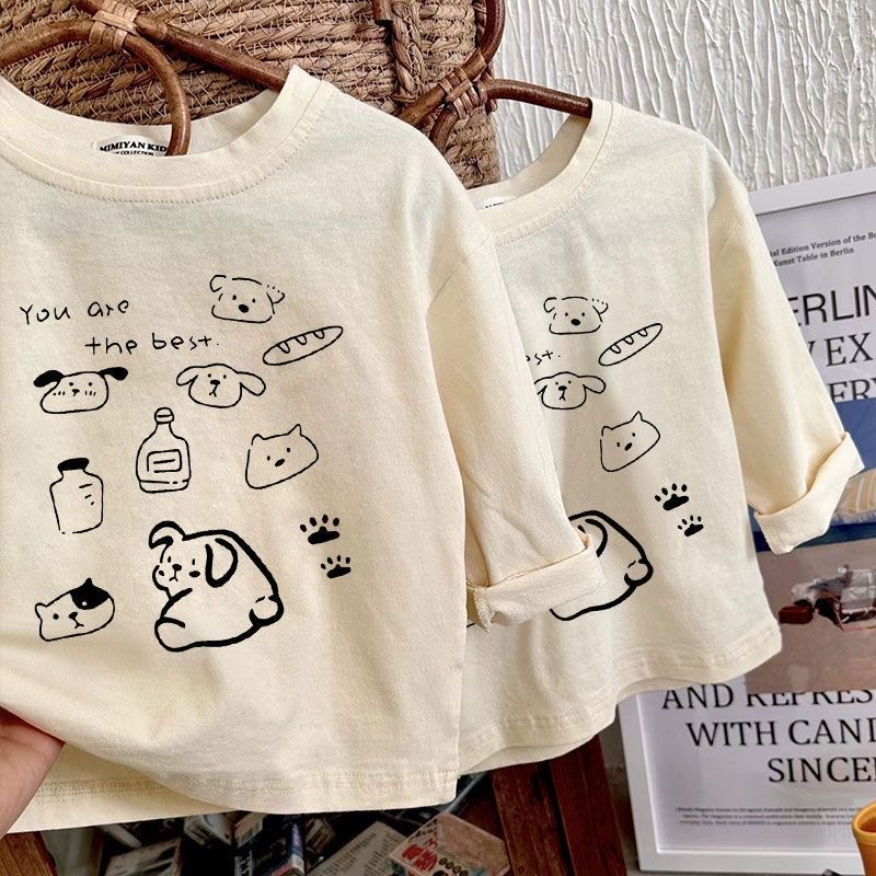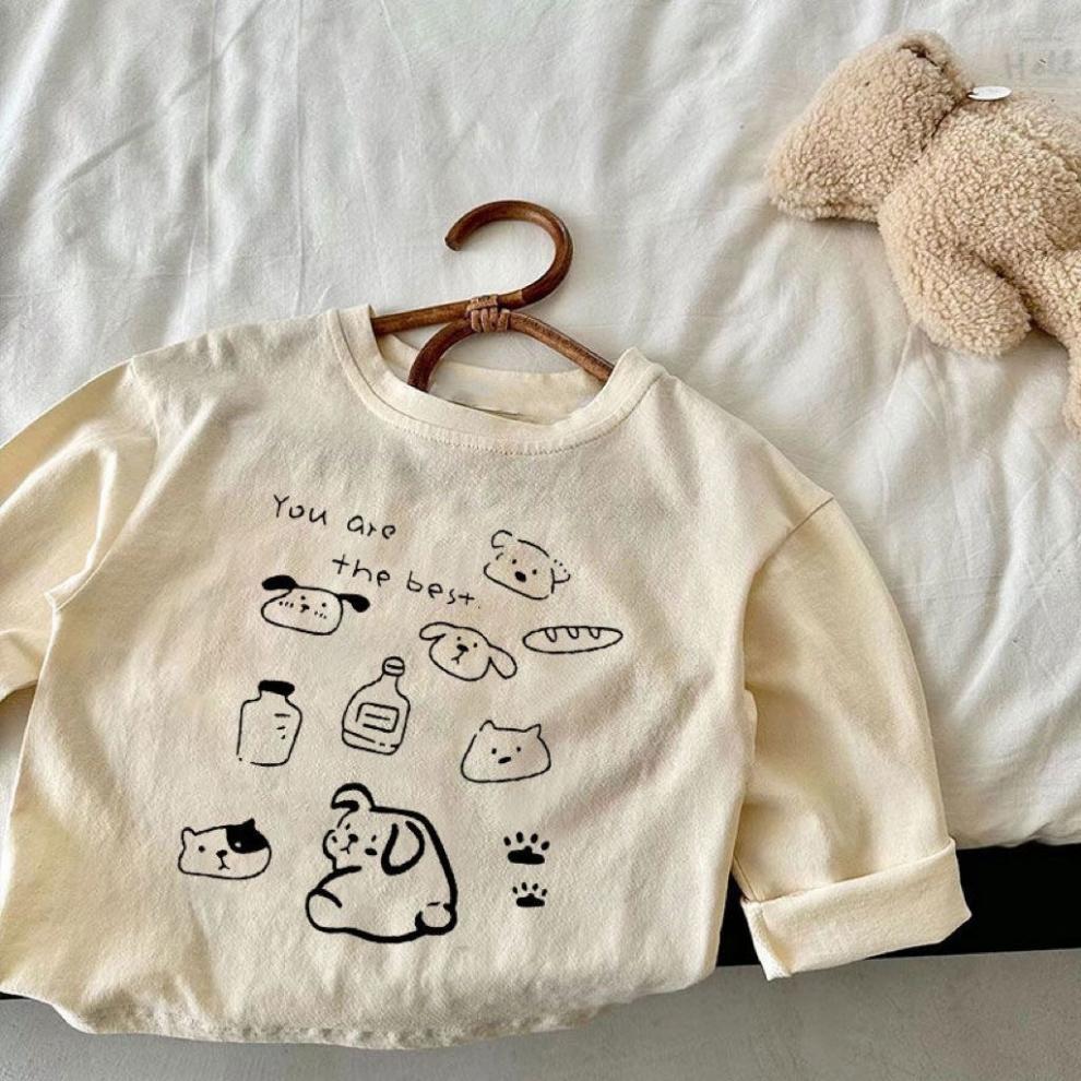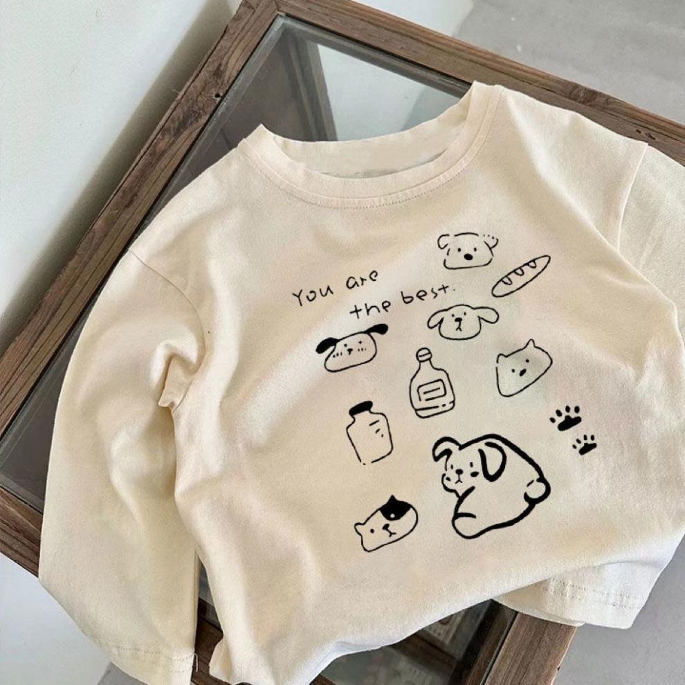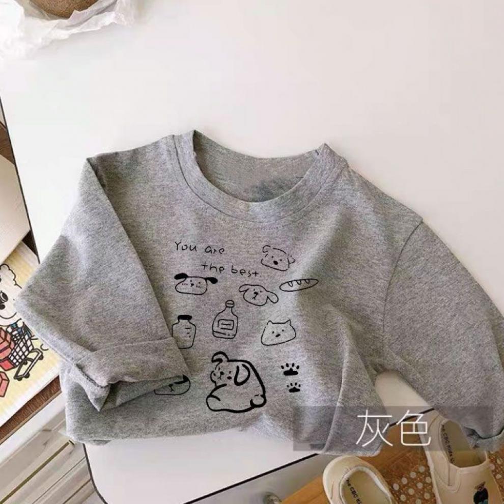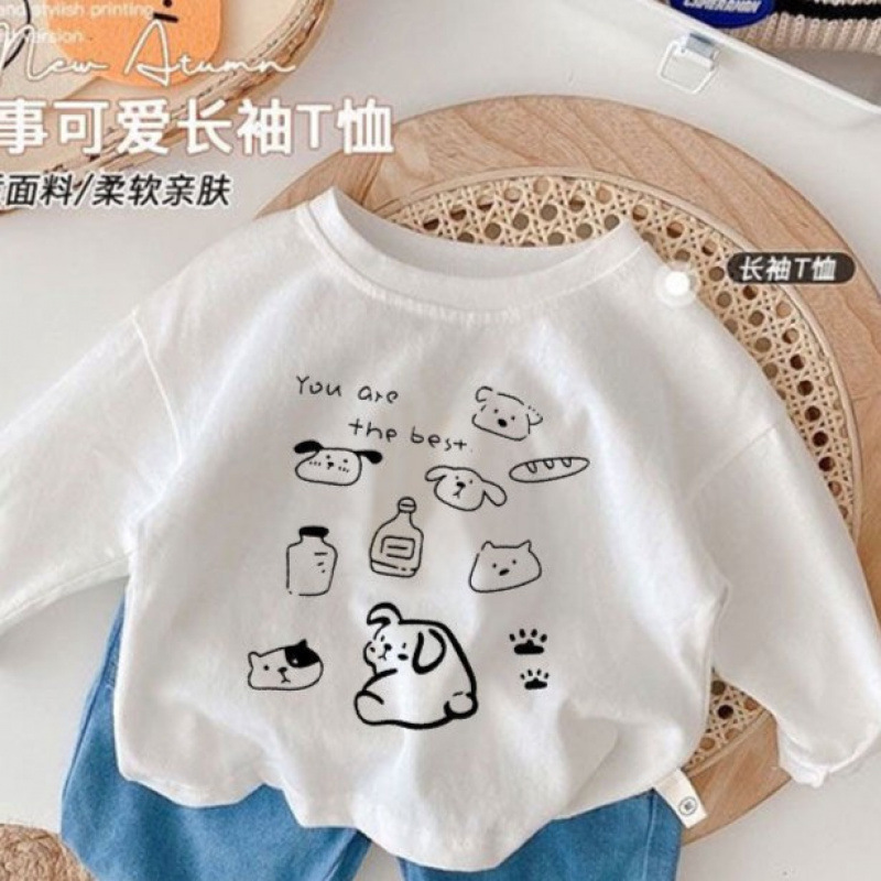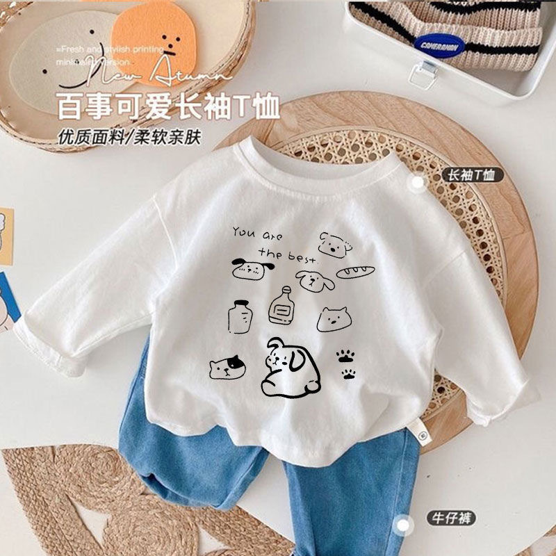 새로운 소년 면 티셔츠 봄과 가을 소녀 긴 소매 만화 스타일 인쇄 아기 아동베이스 탑스토어 가기