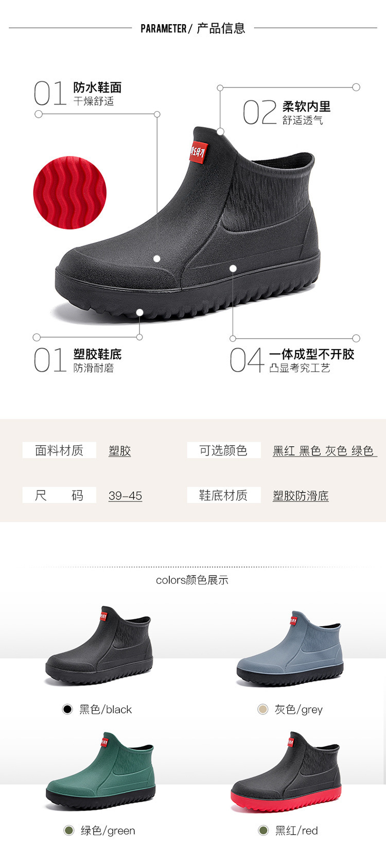 대외 무역 새로운 남성 방수 장화 얕은 입 미끄럼 방지 야외 낚시 자동차 세척 실리콘 신발 주방 미끄럼 방지 신발