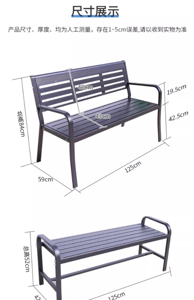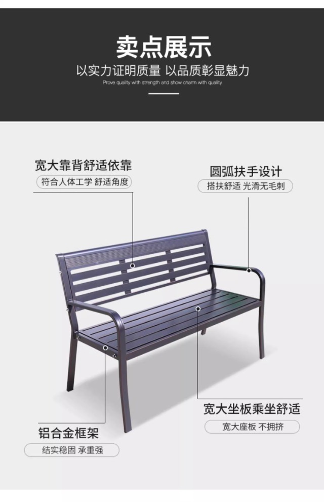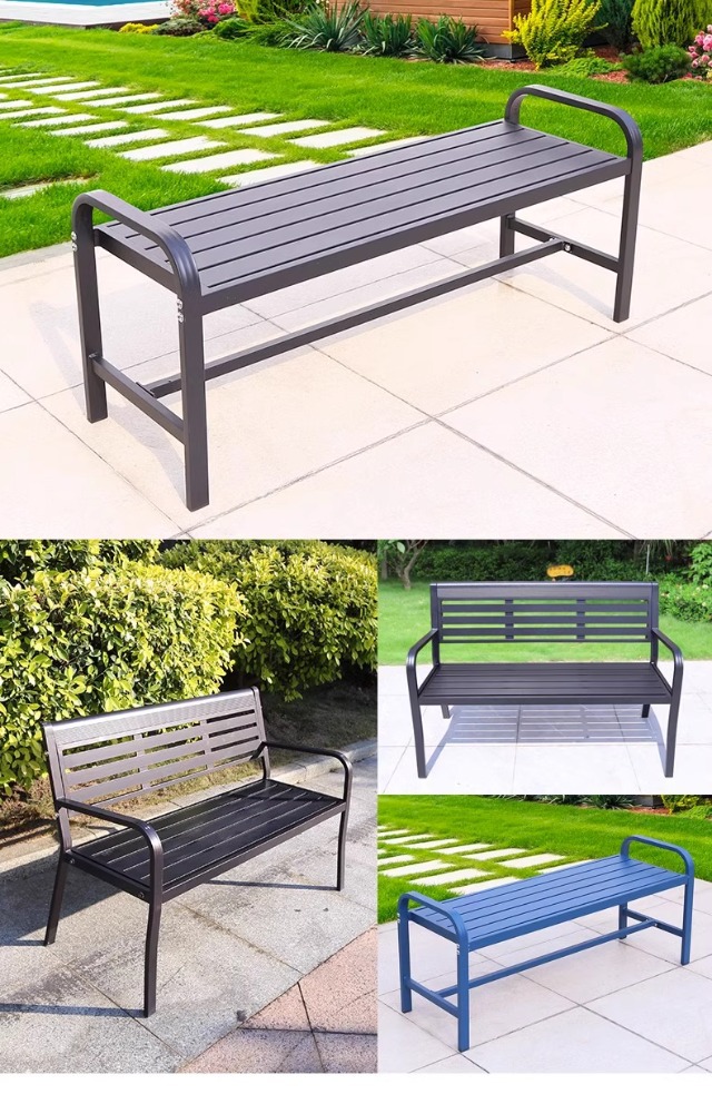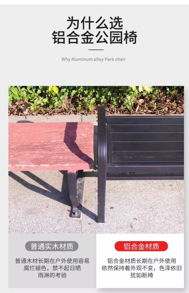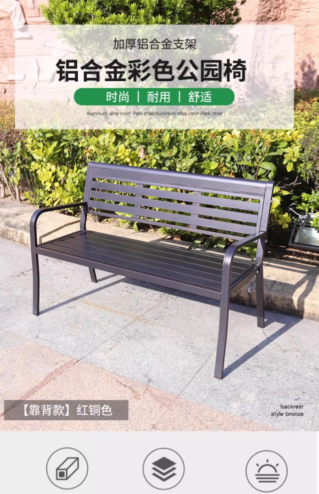 전통적인 공원 의자 야외 벤치 알루미늄 합금 등받이 안뜰 야외 방수 녹슬지 않는 벤치 나머지 벤치