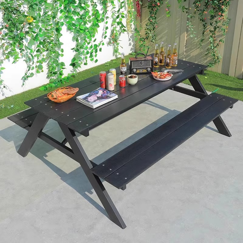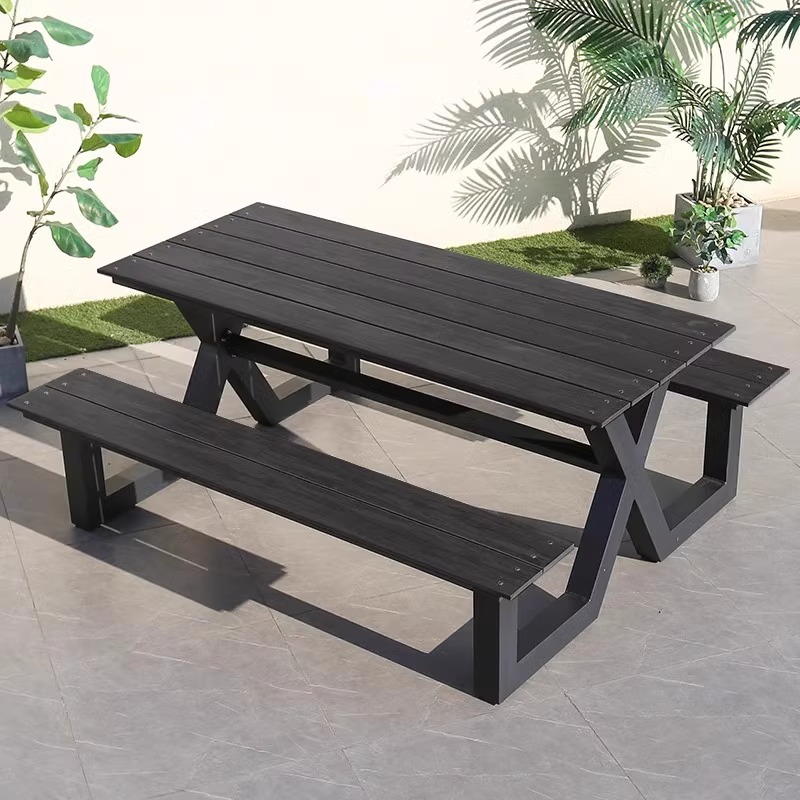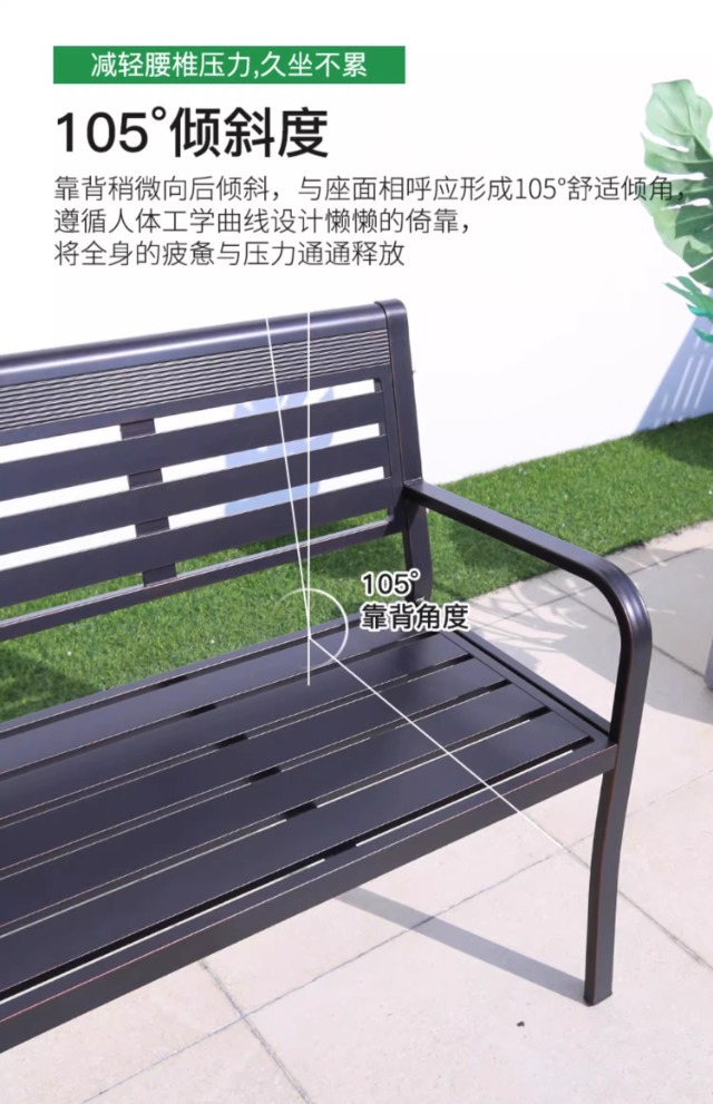 • 1.65m 알루미늄 프레임 플라스틱 목재 A자형 공원 의자(검은색)