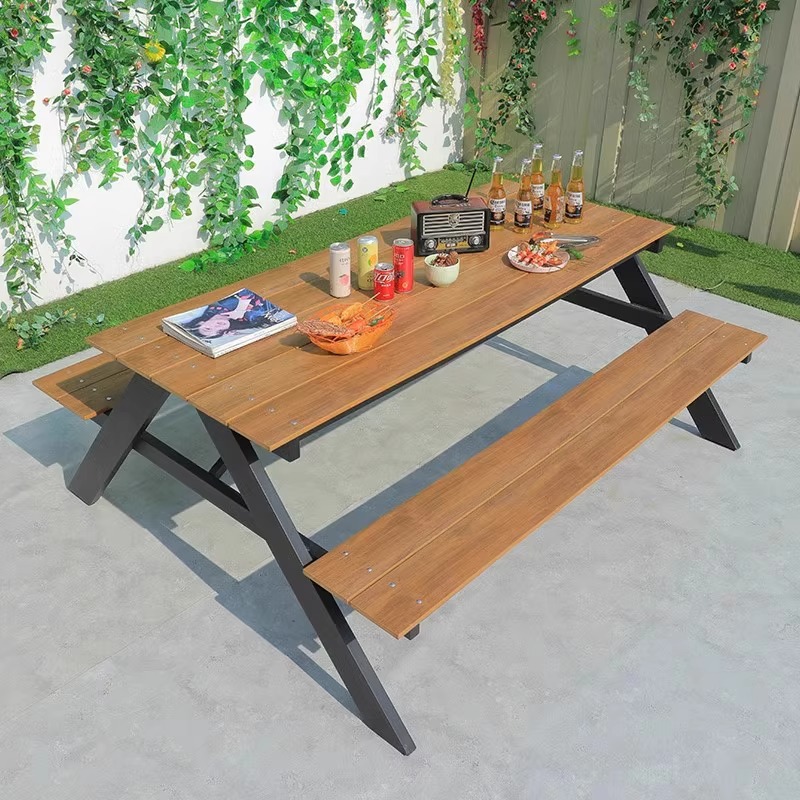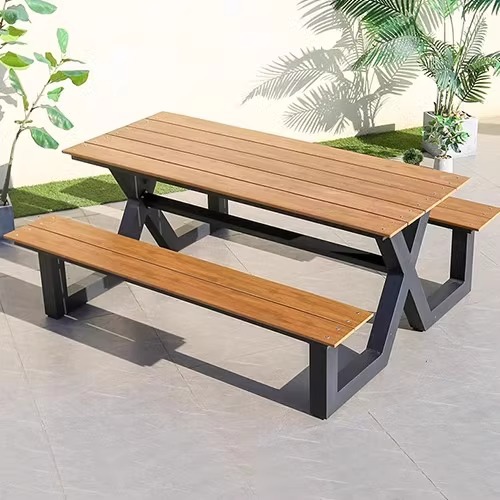• 1.65m 알루미늄 프레임 플라스틱 목재 A자형 공원 의자(티크 색상)