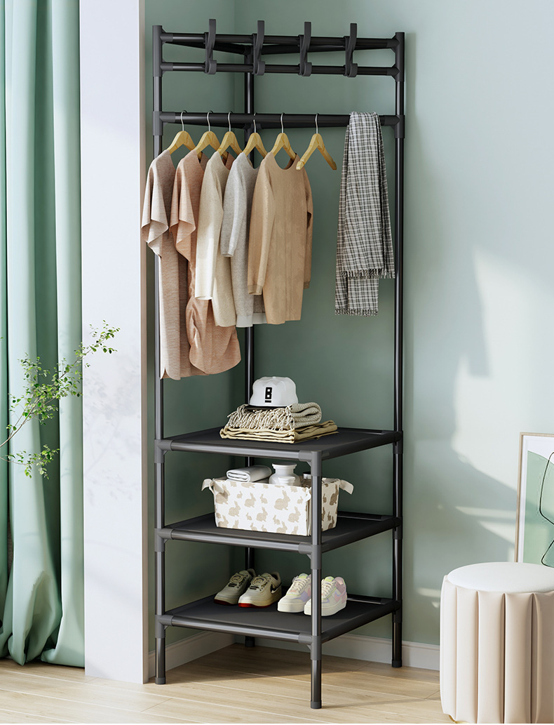 코너 코트 랙 바닥 침실 코너 의류 랙 간단한 침대 옆 보관 랙 다기능 보관 걸이스토어 가기
