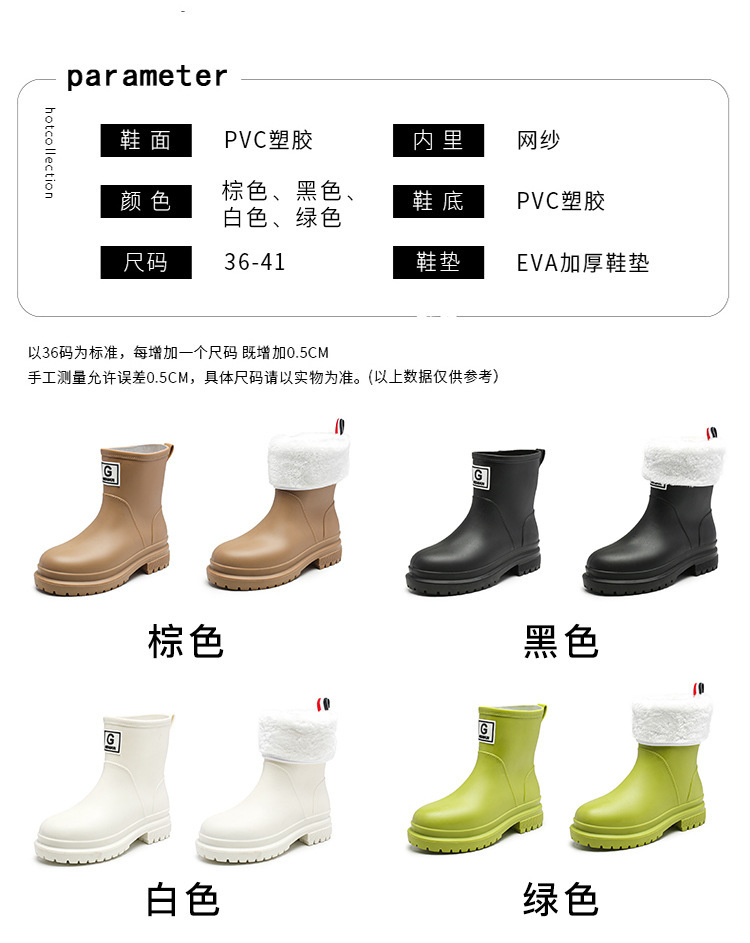 국경 간 새로운 방수 장화 여성 두꺼운 단독 증가 미끄럼 방지 워터 부츠 장화 주방 작업 내유성 고무 신발 여성스토어 가기