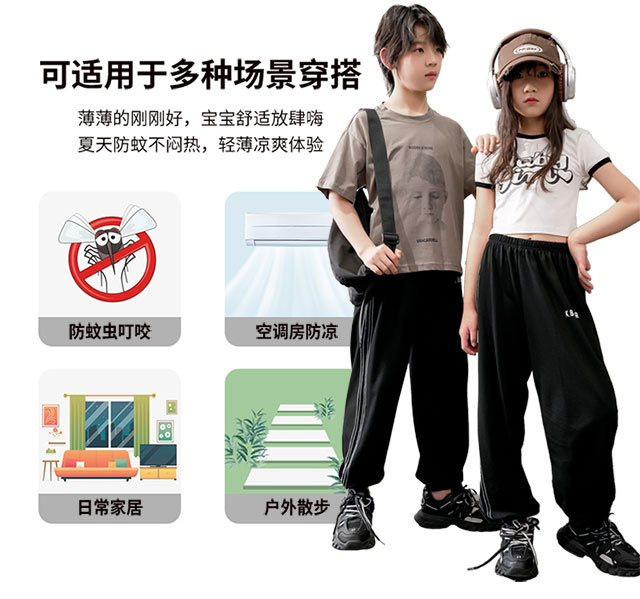 2025 새로운 어린이 모기 방지 바지 소년 여름 스포츠 캐주얼 바지 여자 올매치 어린이 느슨한 외부 착용 바지