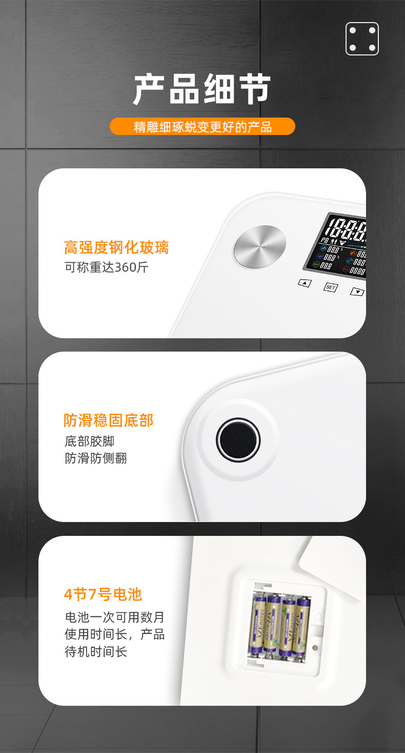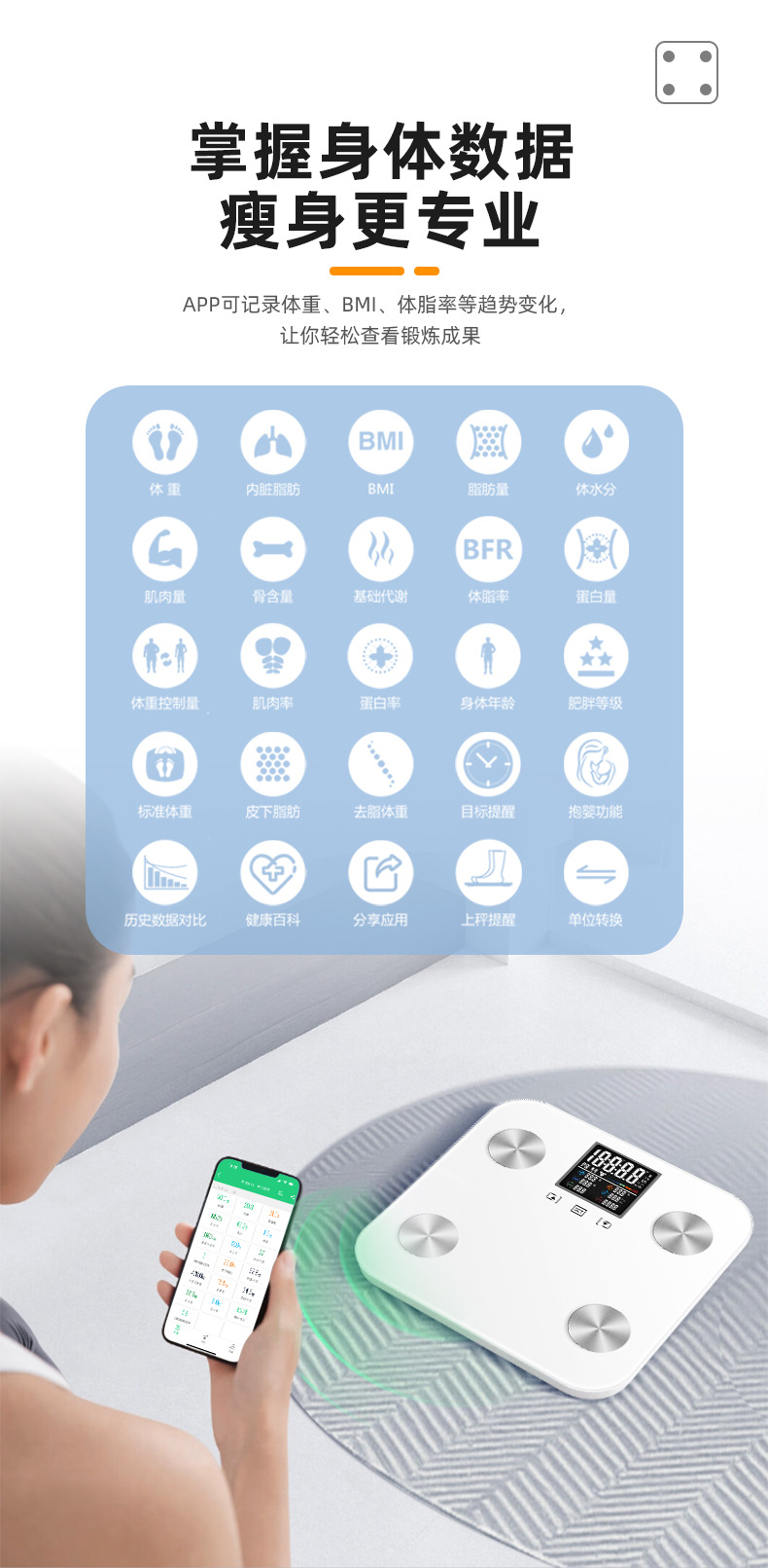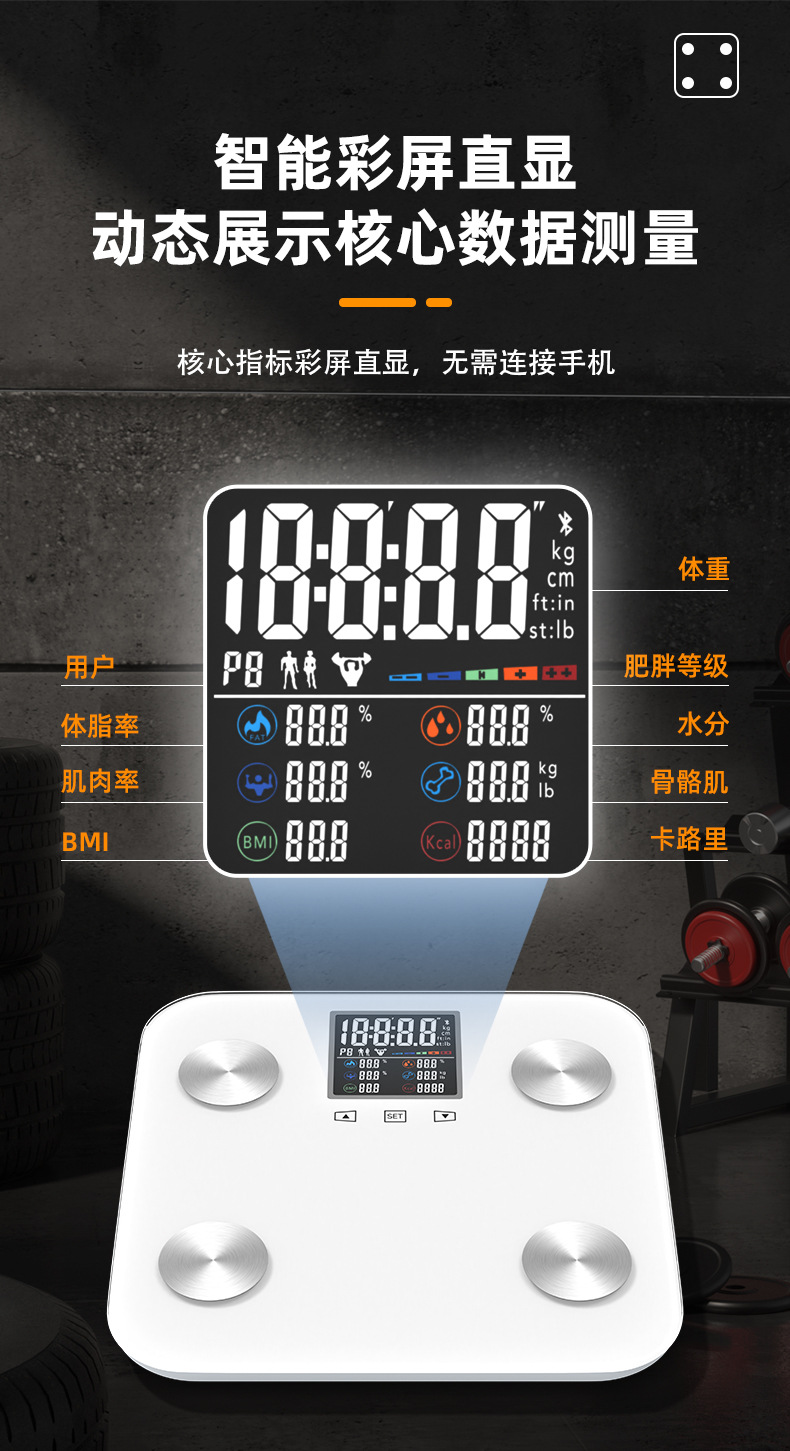 국경을 넘는 신형 스마트 체지방 측정기 VA 대형 컬러 스크린 체중계, 체지방 측정, 엄선된 가정용 블루투스 건강 체중계, 전자 체중계스토어 가기