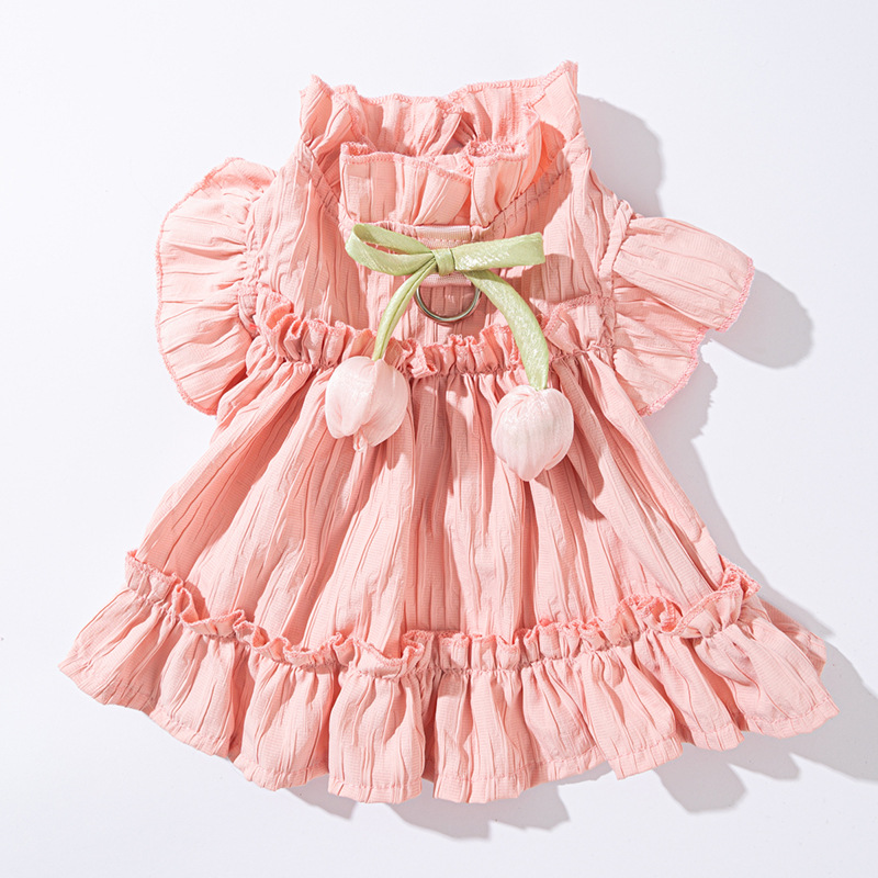 개 봄과 여름 공주 스타일 아름다운 레이디 튤립 주름 드레스 고양이 스커트 테디 애완 동물 옷스토어 가기