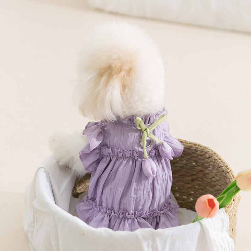 개 봄과 여름 공주 스타일 아름다운 레이디 튤립 주름 드레스 고양이 스커트 테디 애완 동물 옷