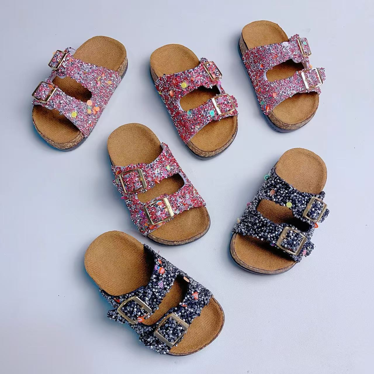 어린이 패션 새로운 더블 버클 한국 스타일 실내 및 실외 어린이 코르크 솔 신발 편안한 슬리퍼 미끄럼 방지 신발스토어 가기