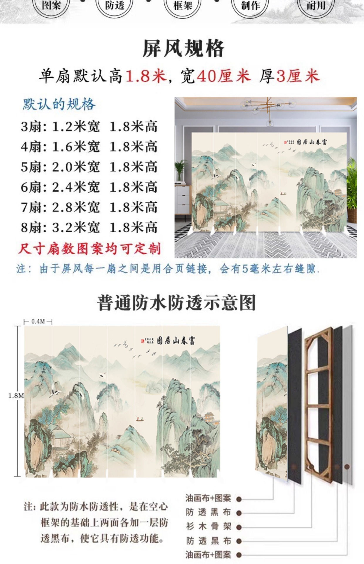 • 업그레이드된 부목 1개: 길이 0.4m * 높이 1.8m (최소 2개)