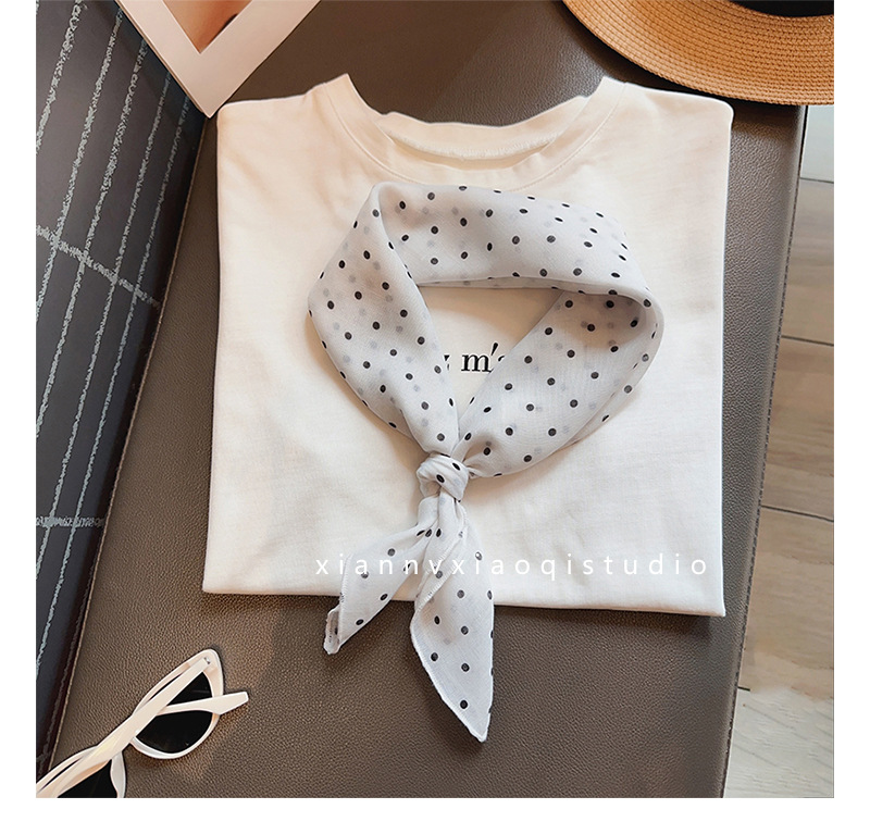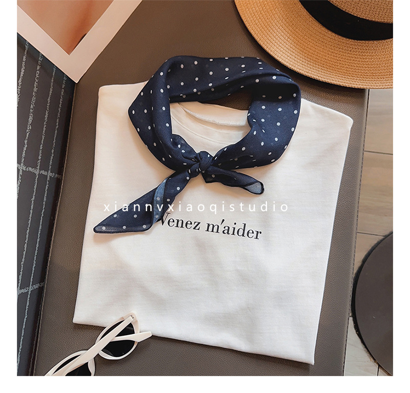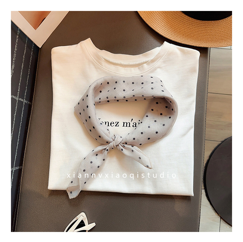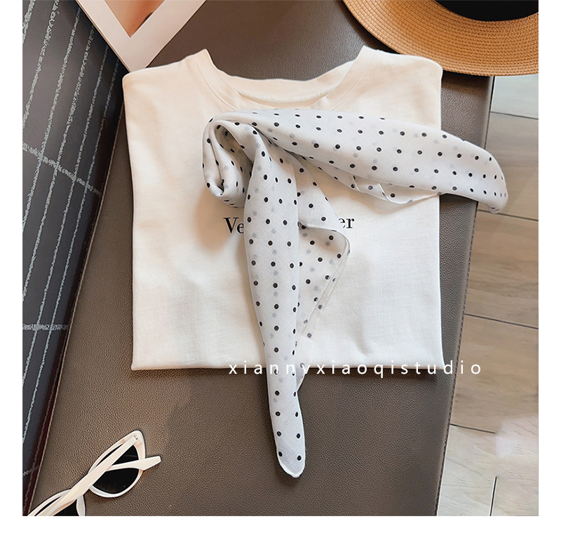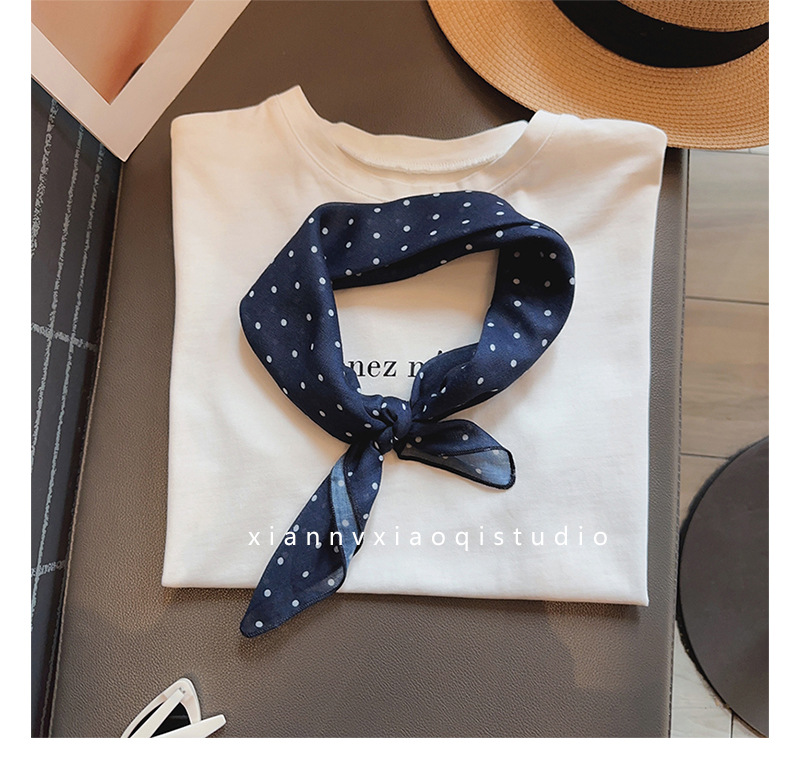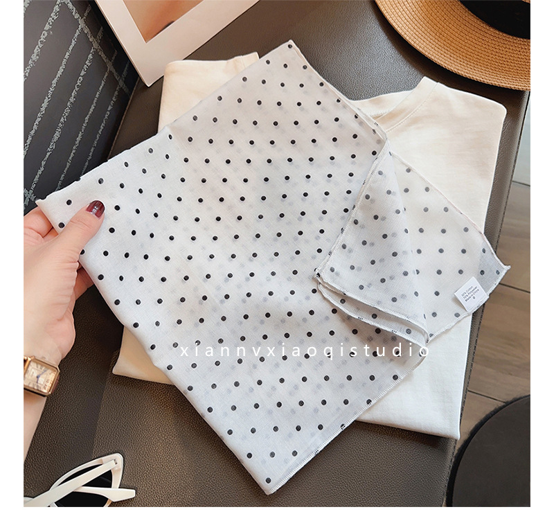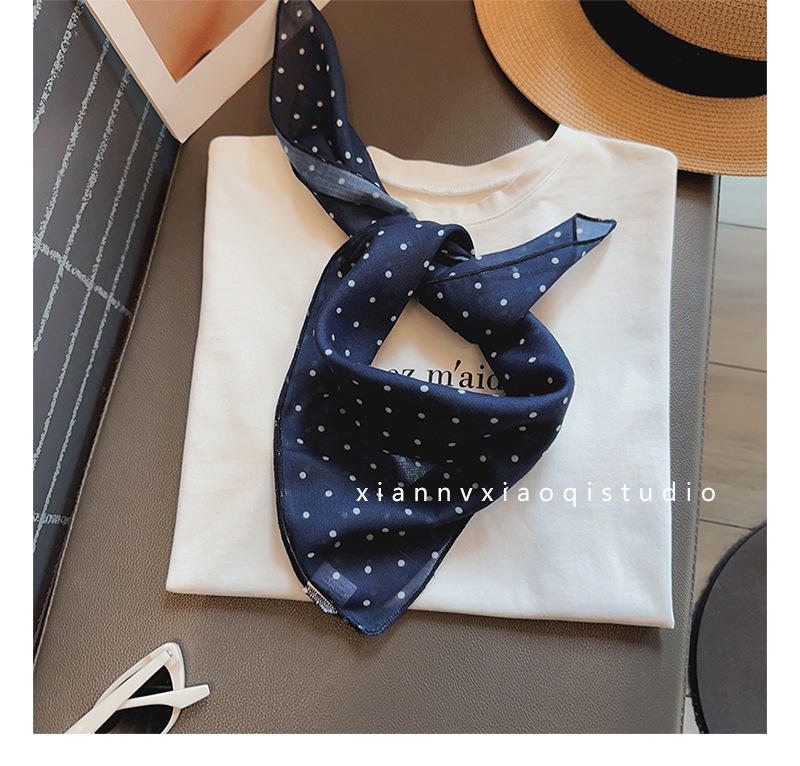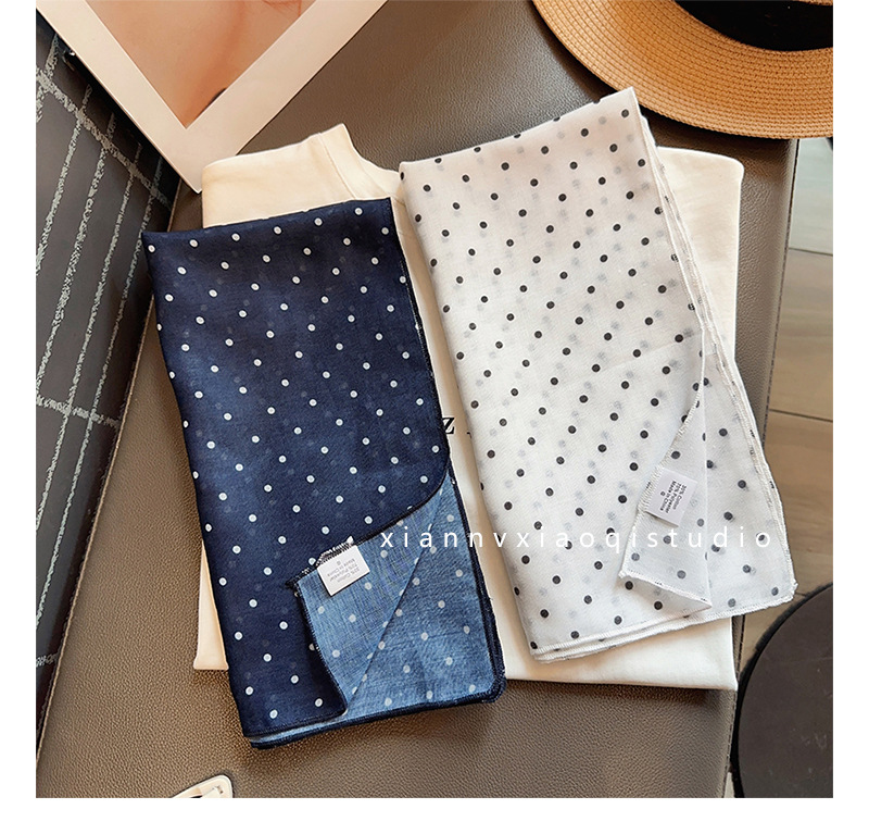 일본의 예술적 폴로 도트 화이트 실크 스카프 작은 스퀘어 스카프 여성의 봄과 여름 세련된 스카프 목 넥타이 스카프 장식 헤드 스카프스토어 가기