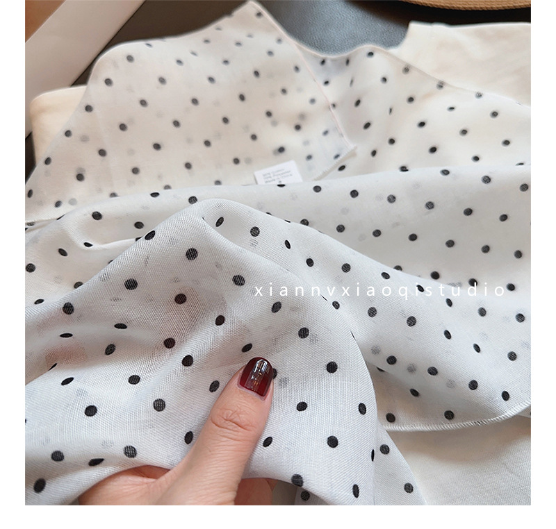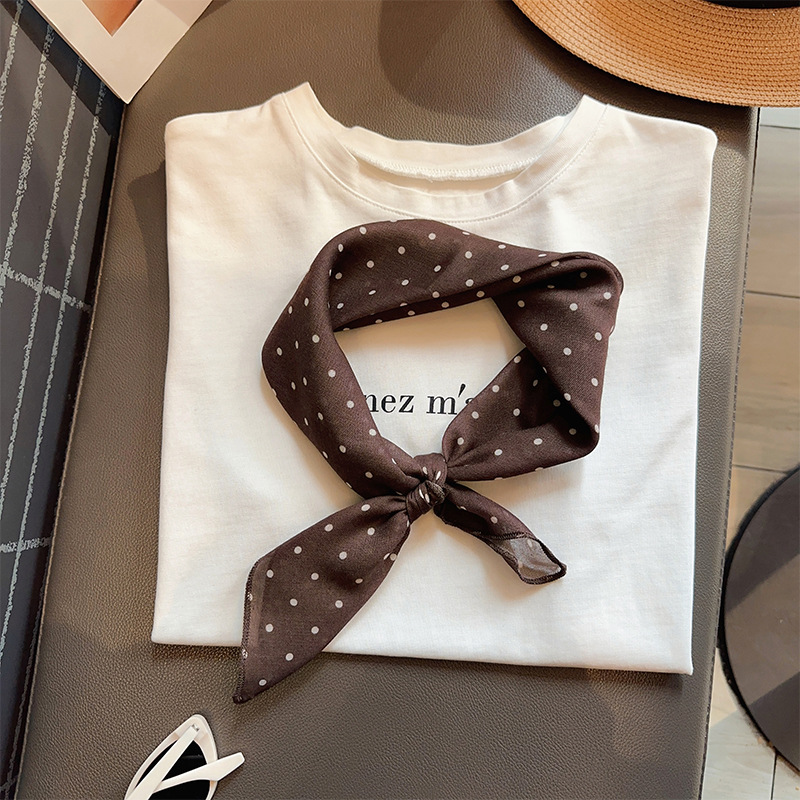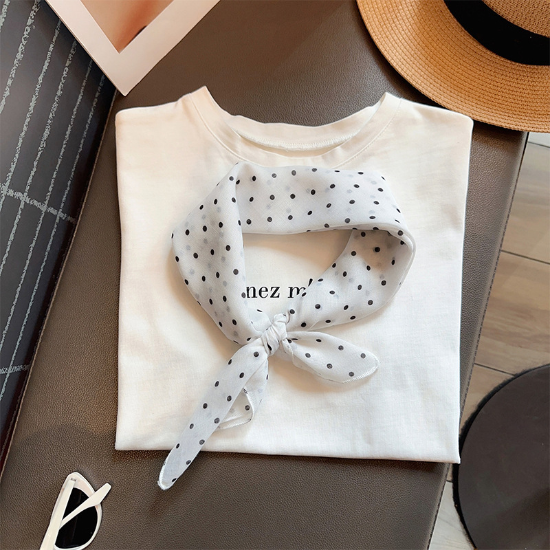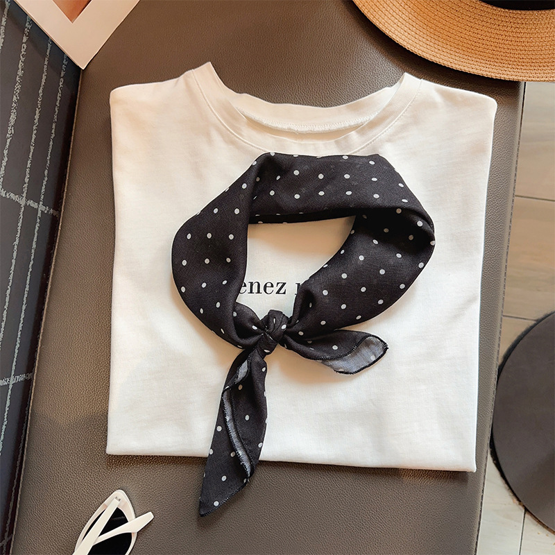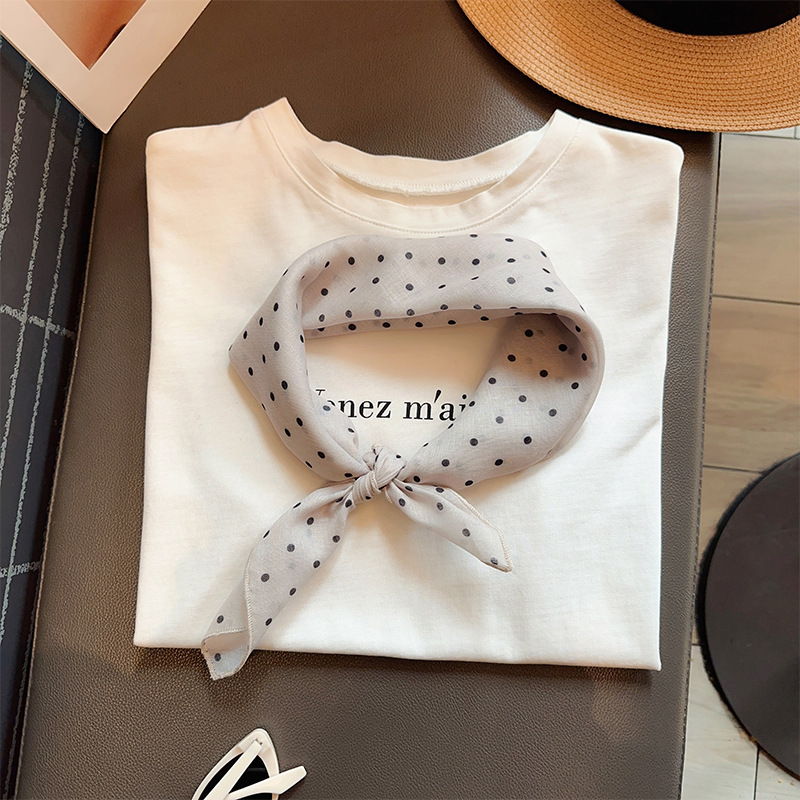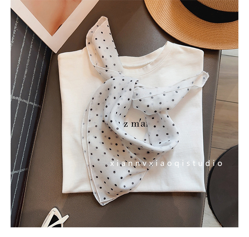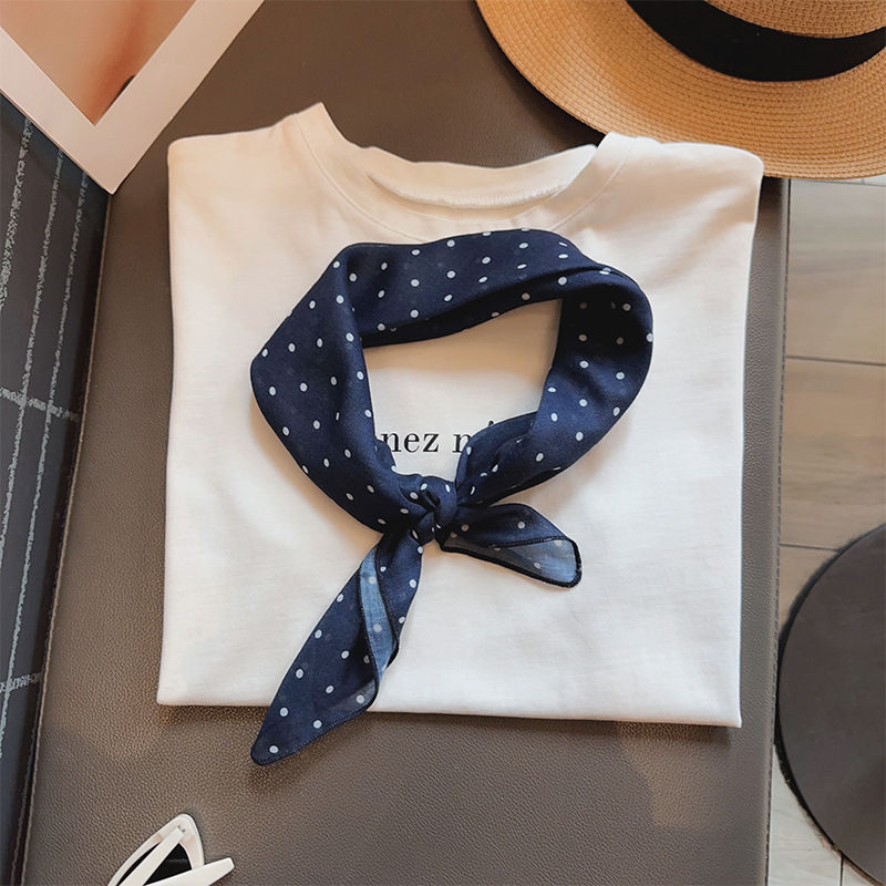 일본의 예술적 폴로 도트 화이트 실크 스카프 작은 스퀘어 스카프 여성의 봄과 여름 세련된 스카프 목 넥타이 스카프 장식 헤드 스카프