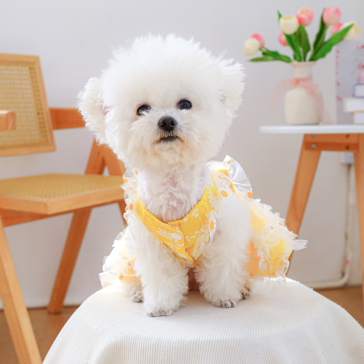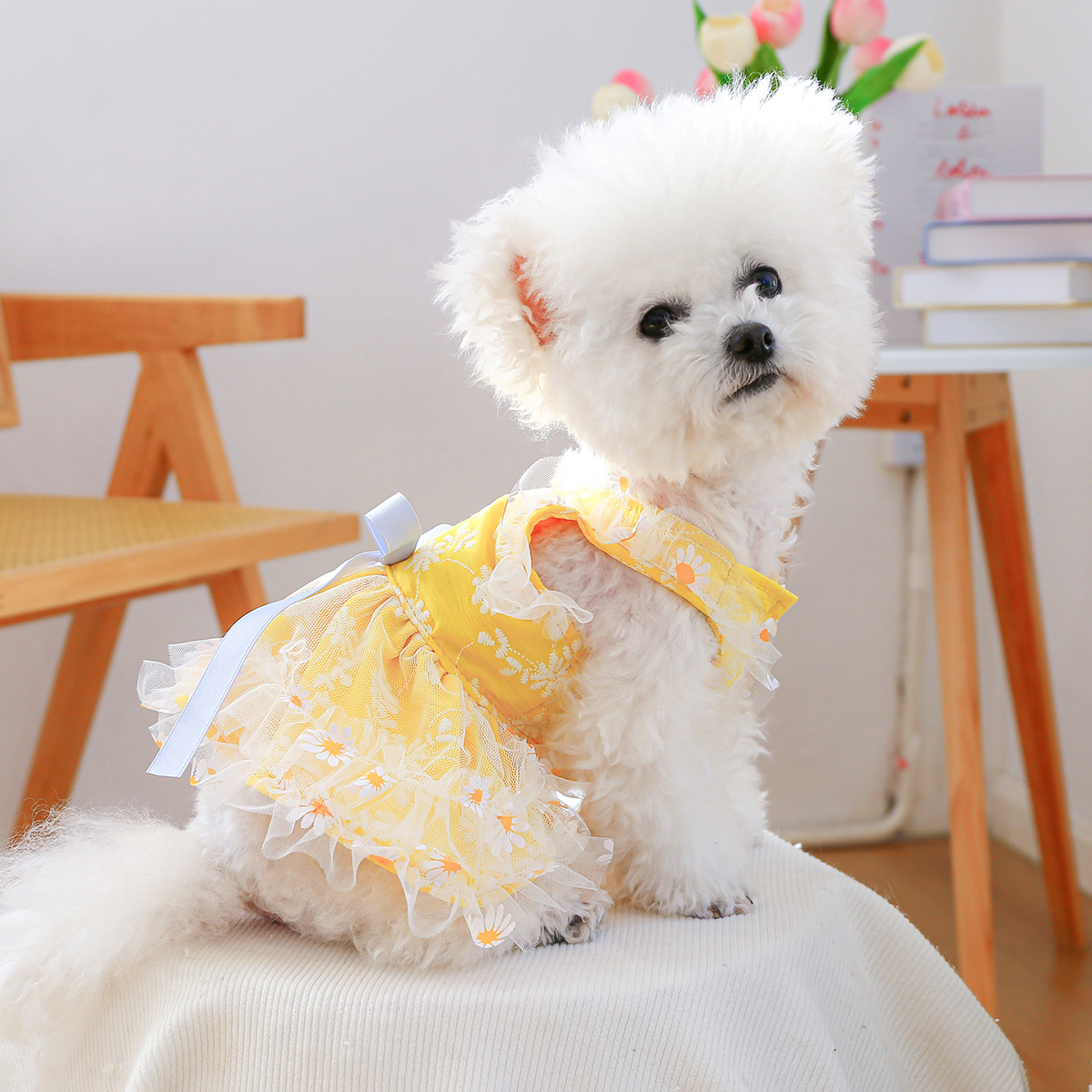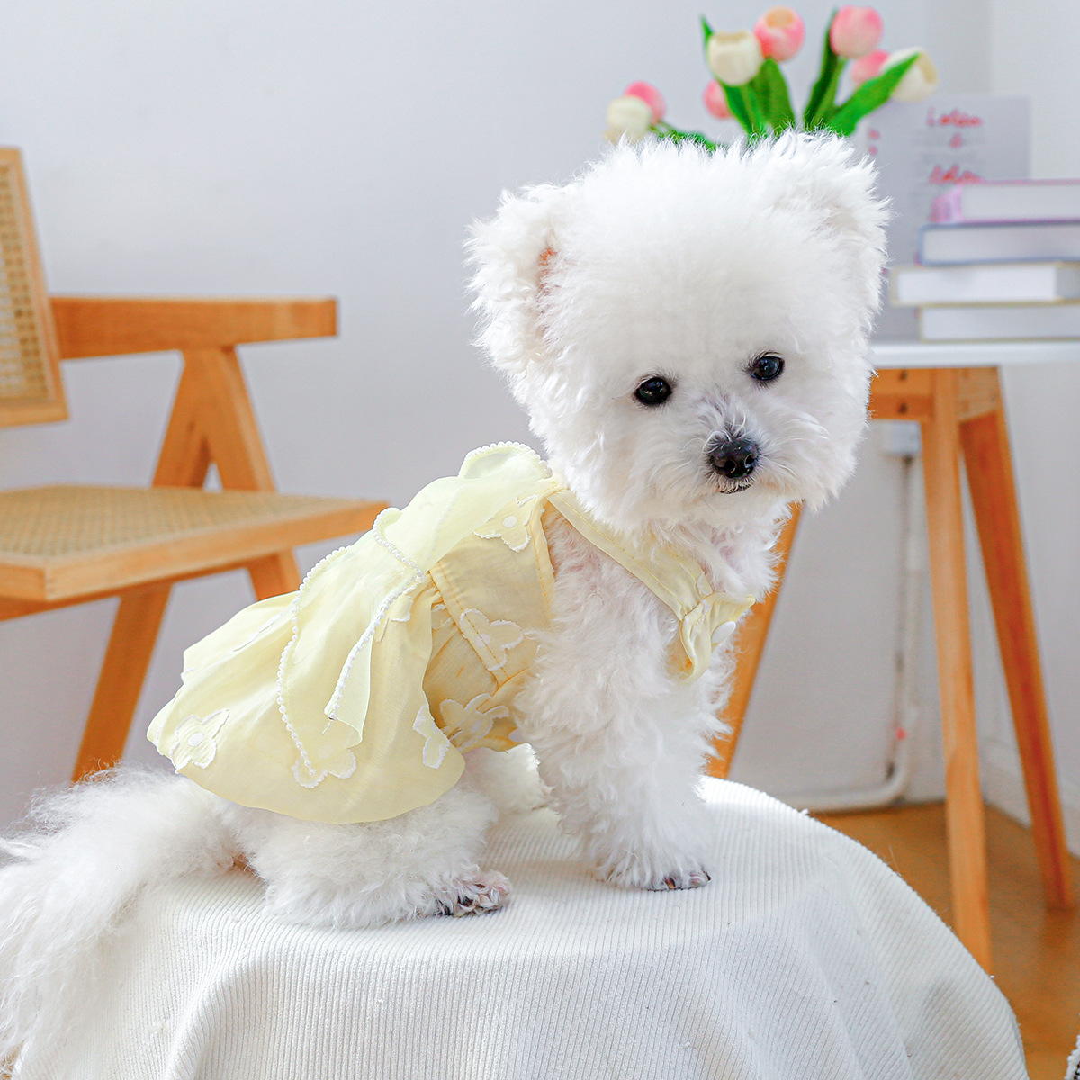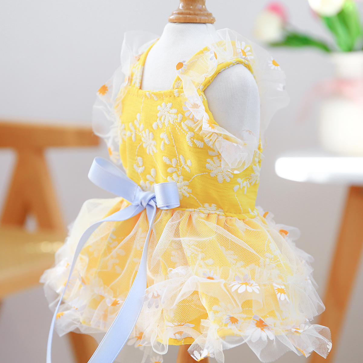 PETCIRCLE 애완동물 의류 소형 및 중형견용 애완용품 애완견 의류 여름 데이지 스트랩 드레스스토어 가기