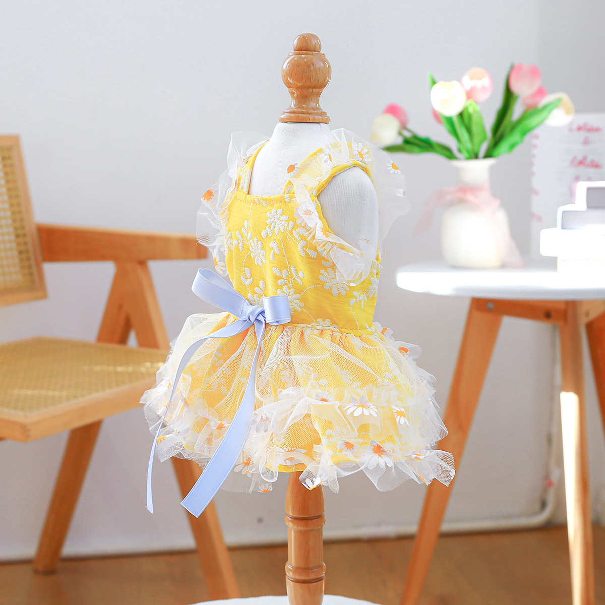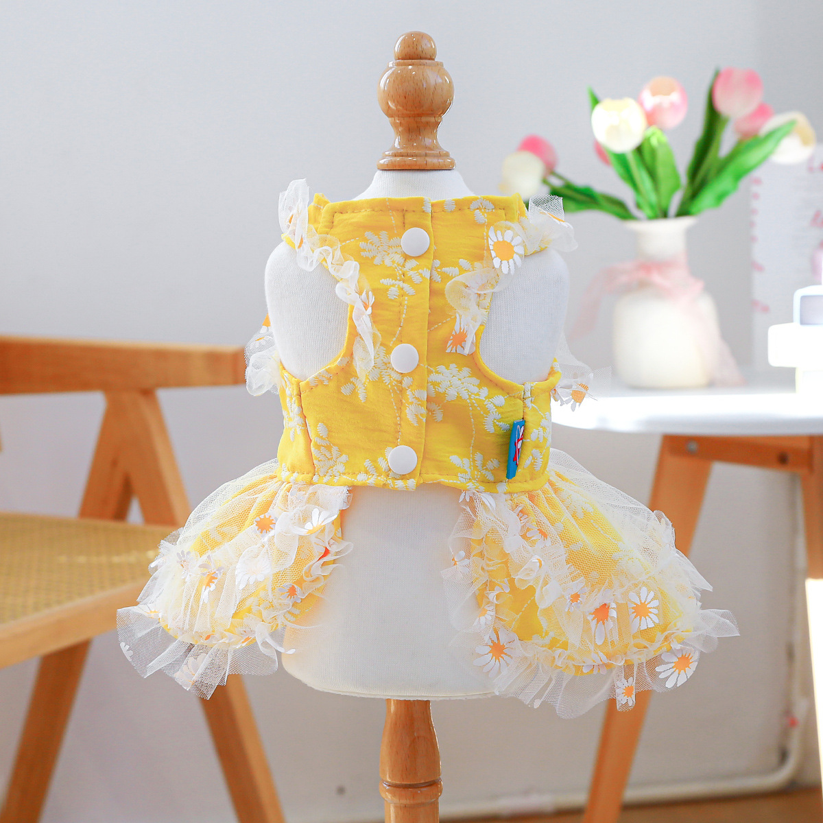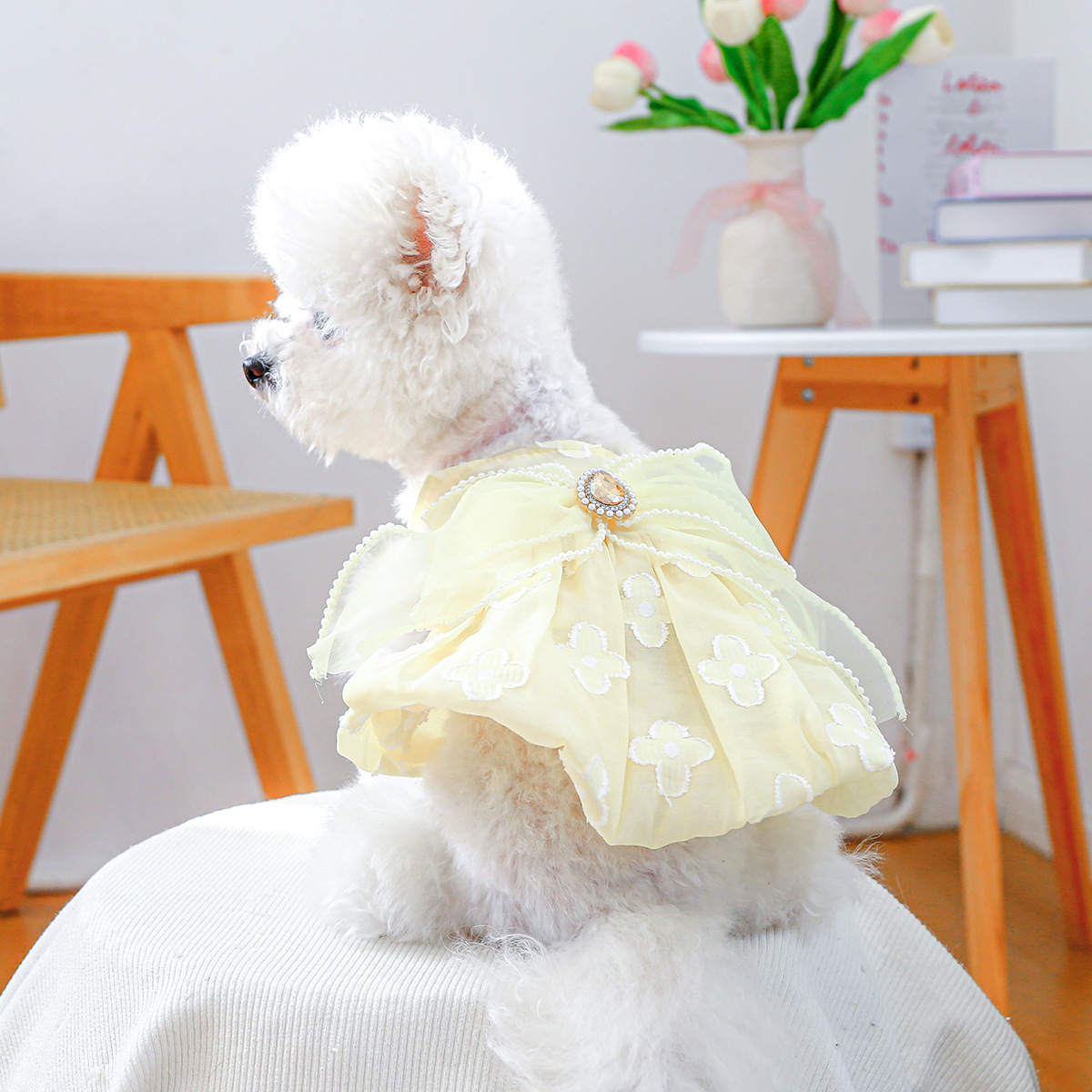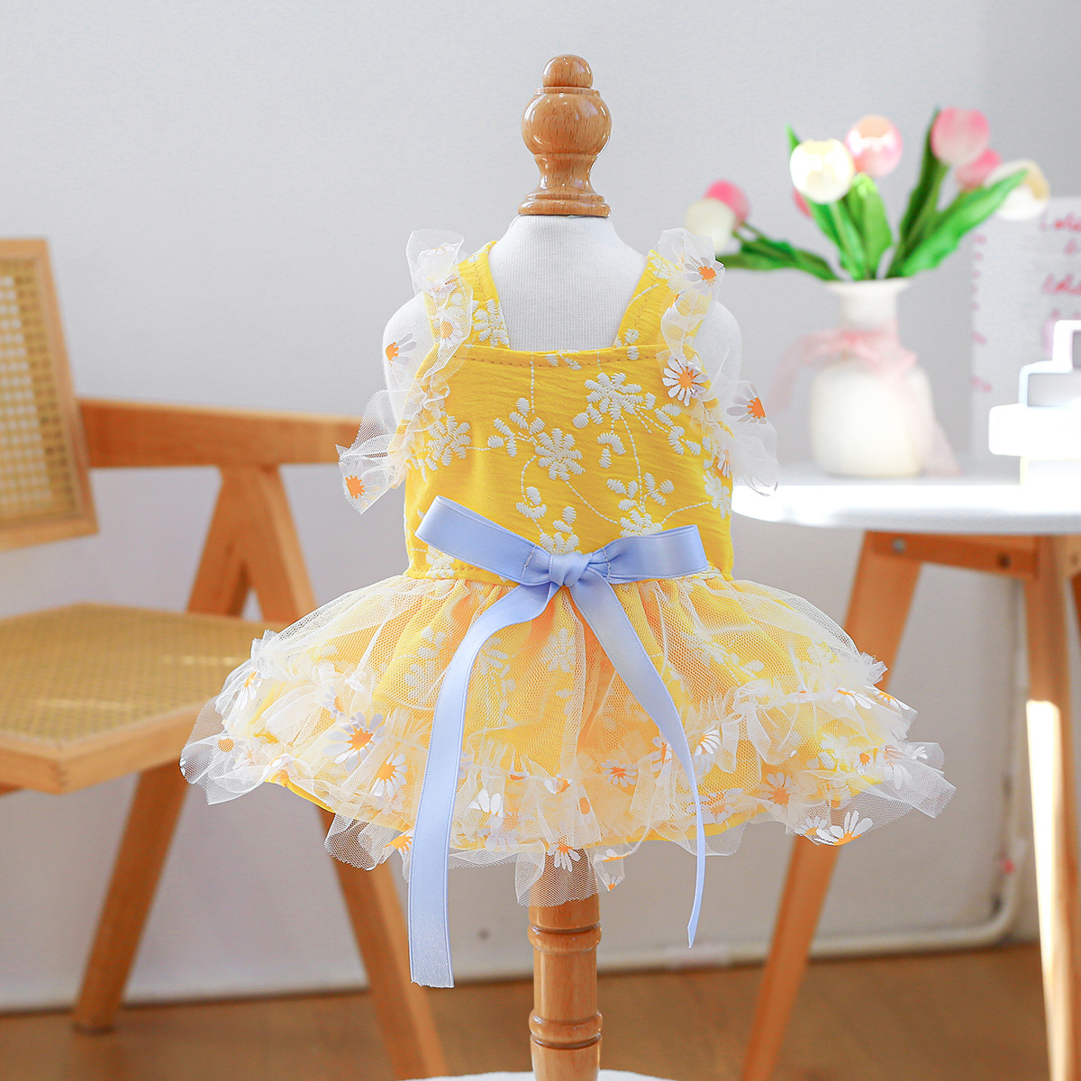 PETCIRCLE 애완동물 의류 소형 및 중형견용 애완용품 애완견 의류 여름 데이지 스트랩 드레스스토어 가기