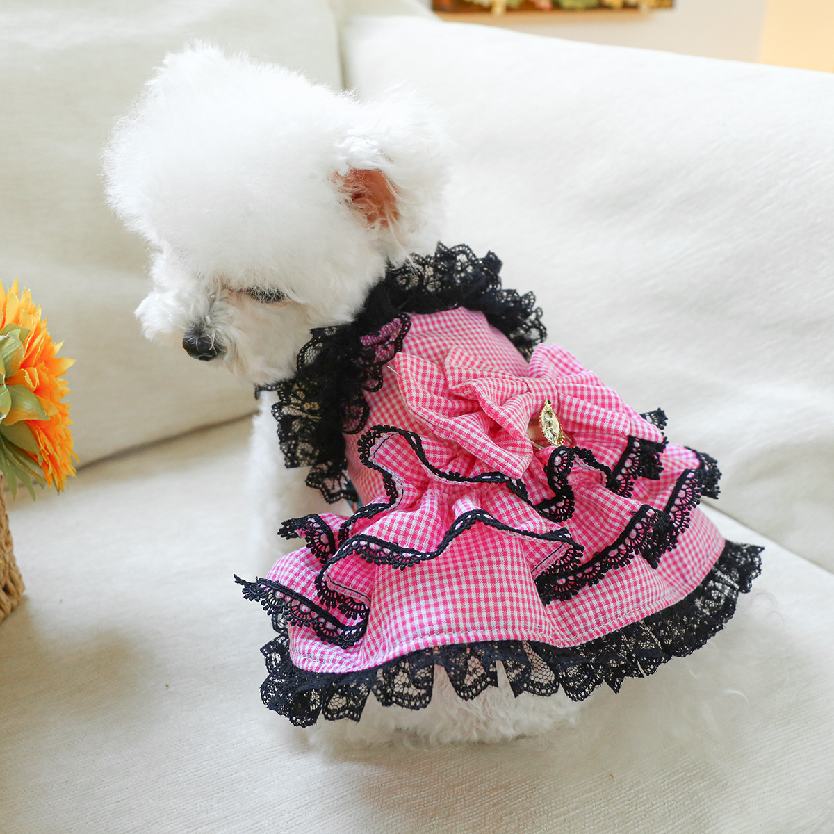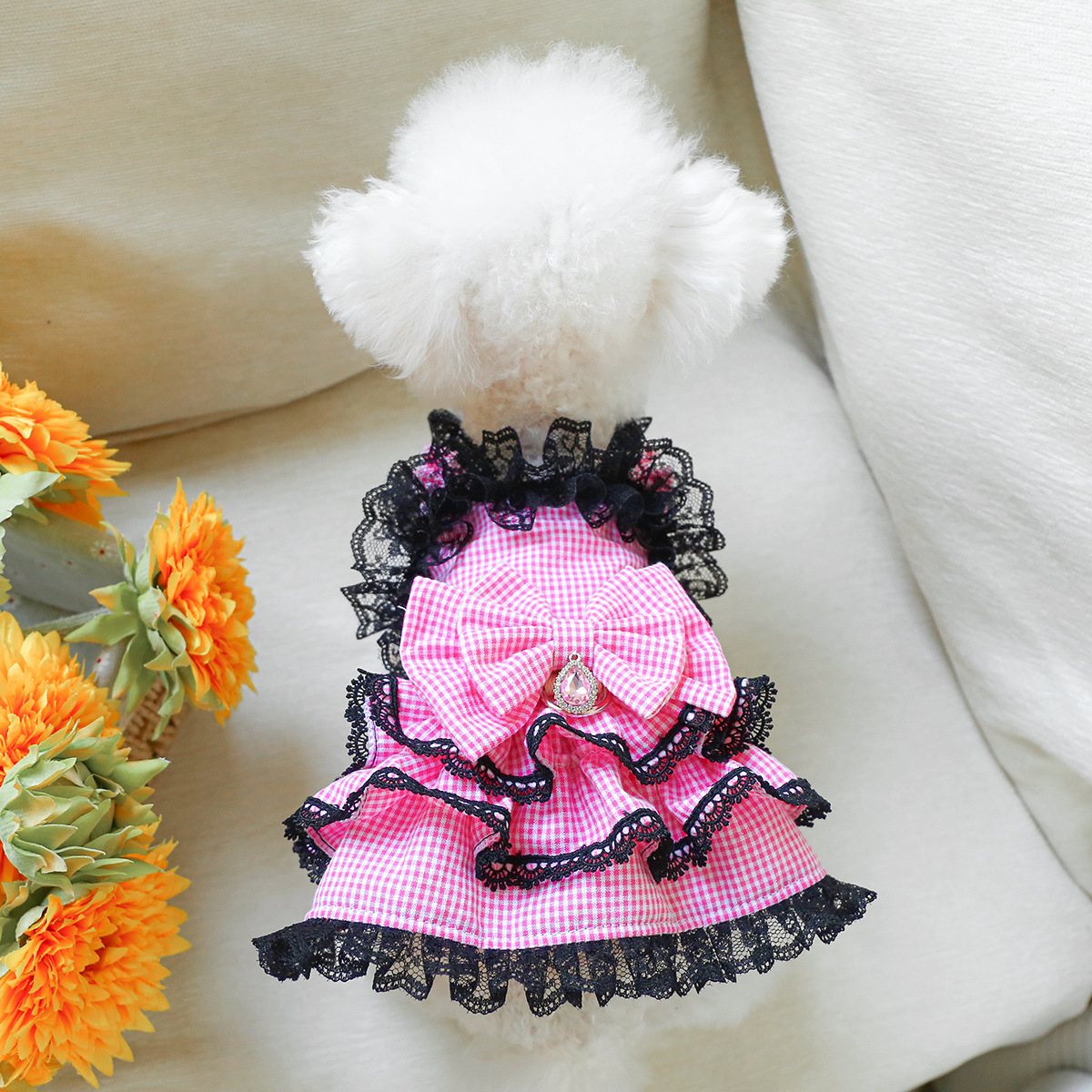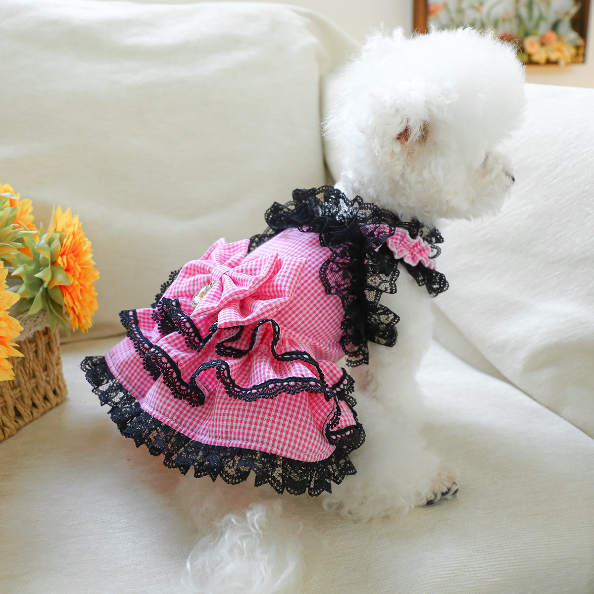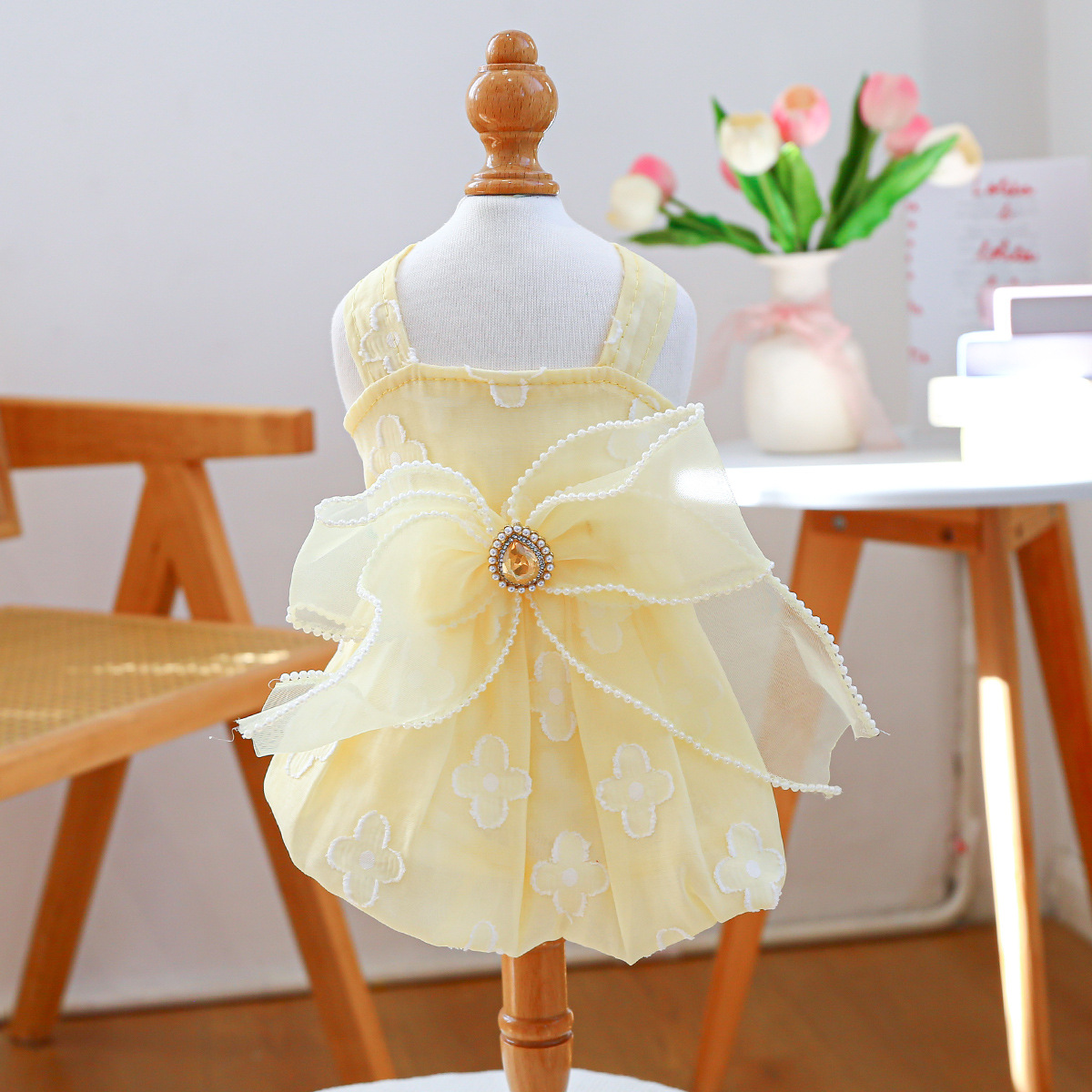 PETCIRCLE 애완동물 의류 소형 및 중형견용 애완용품 애완견 의류 여름 데이지 스트랩 드레스스토어 가기