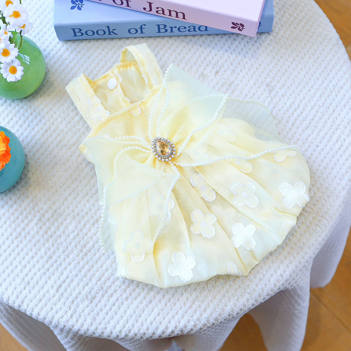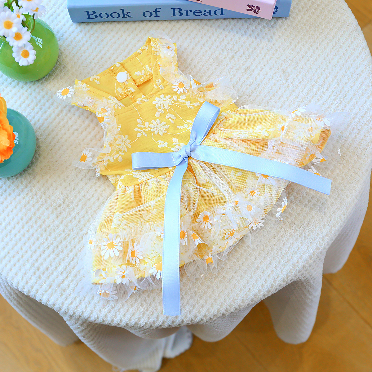 PETCIRCLE 애완동물 의류 소형 및 중형견용 애완용품 애완견 의류 여름 데이지 스트랩 드레스