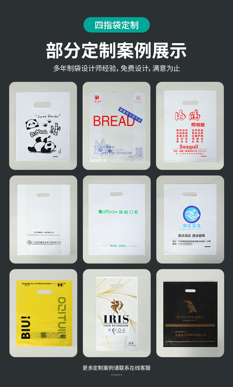 사용자 정의 네 손가락 편평한 입 비닐 봉투 휴대용 비닐 봉지 안경 가게 쇼핑 가방 인쇄 로고 그래픽 CT 가방