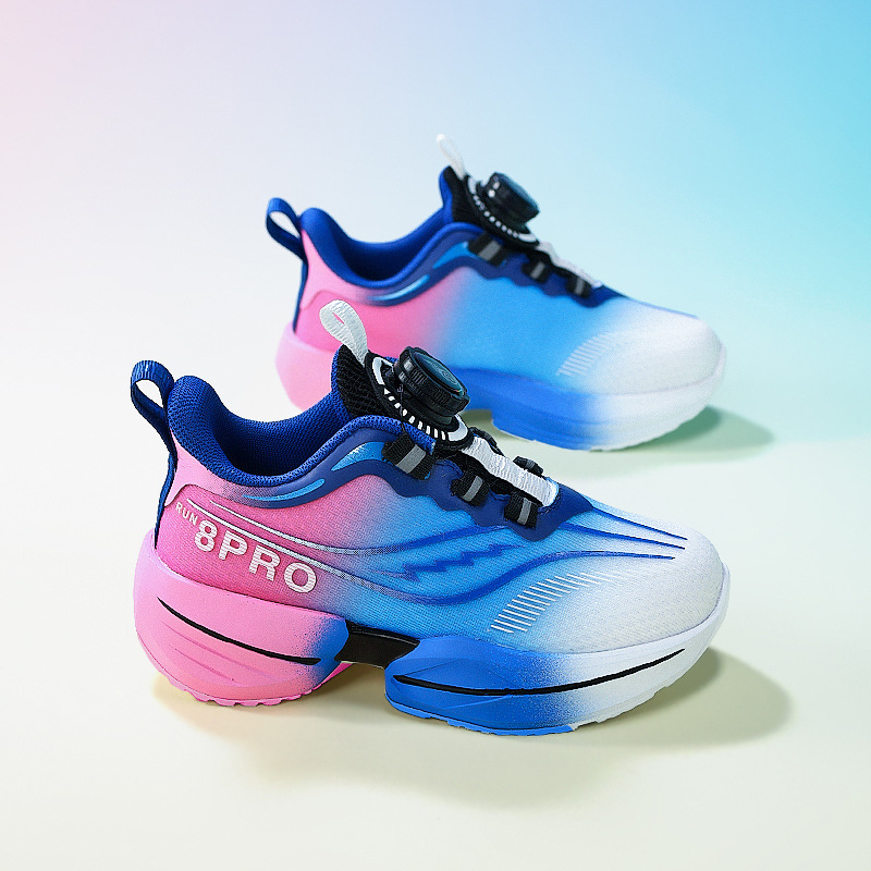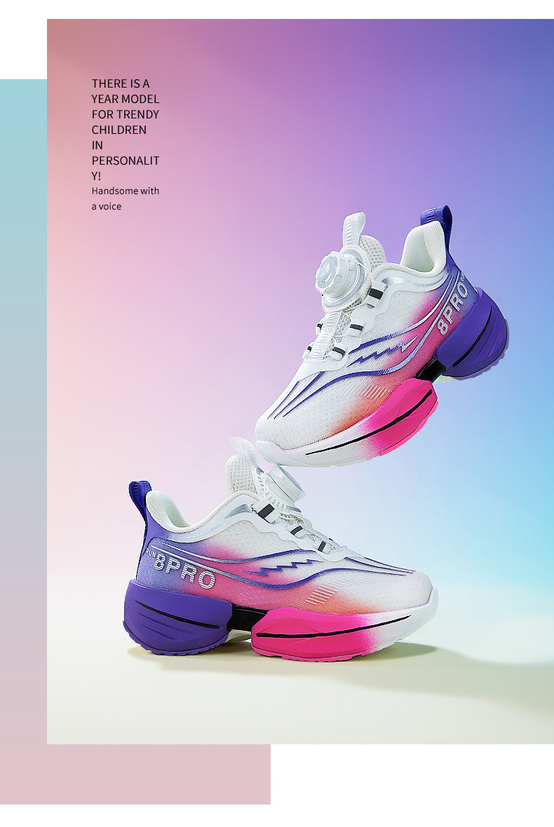 소년 학생을위한 빨간 토끼 8pro 달리기 신발 충격 흡수 회전 버튼 레이싱 메쉬 달리기 신발 봄 통기성 운동화