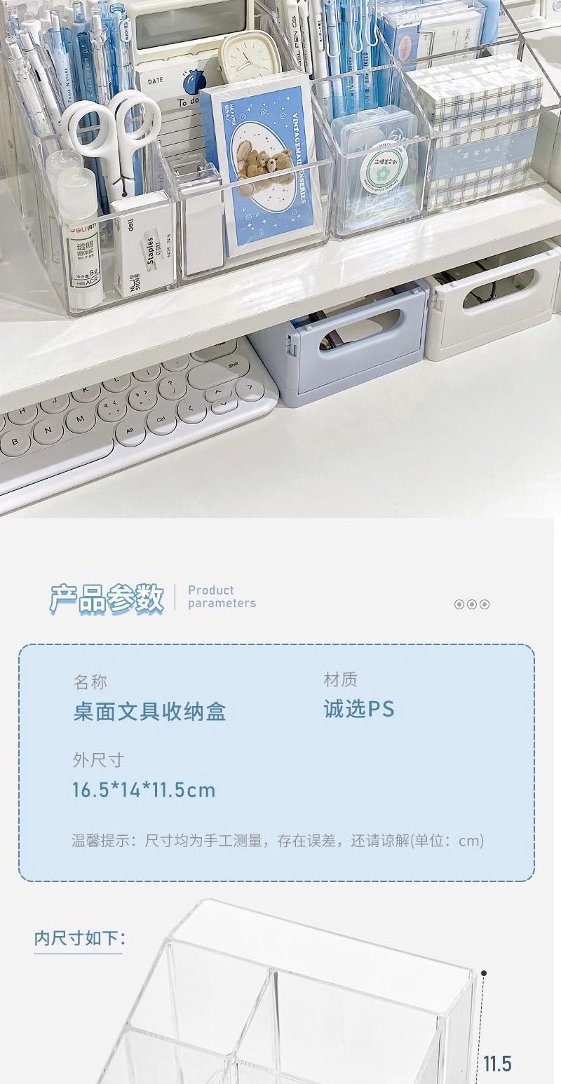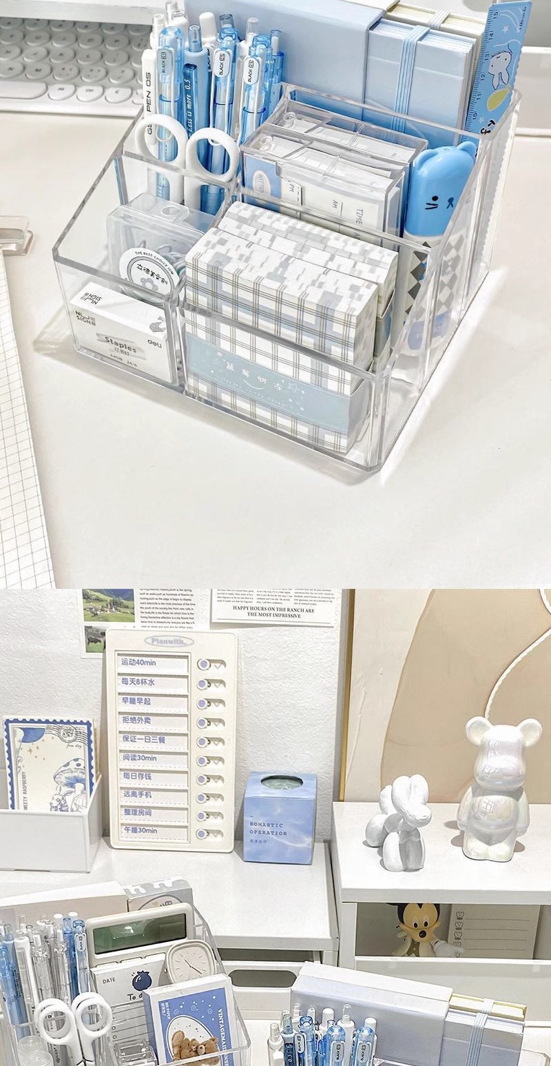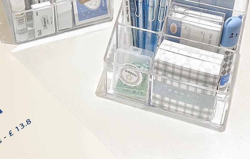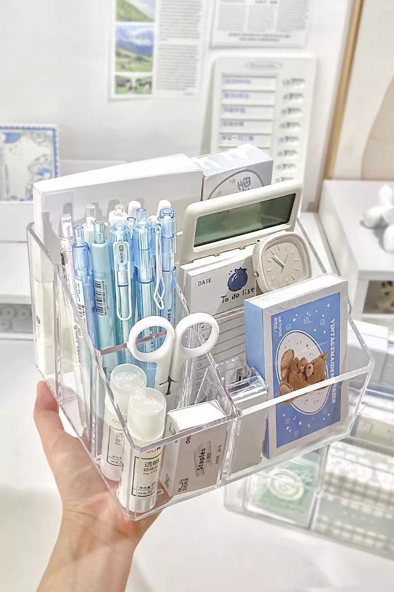 투명한 5 그리드 펜 코너 높은 가치 사무실 데스크탑 저장 상자 대용량 다기능 화장품 저장 상자 가정용스토어 가기