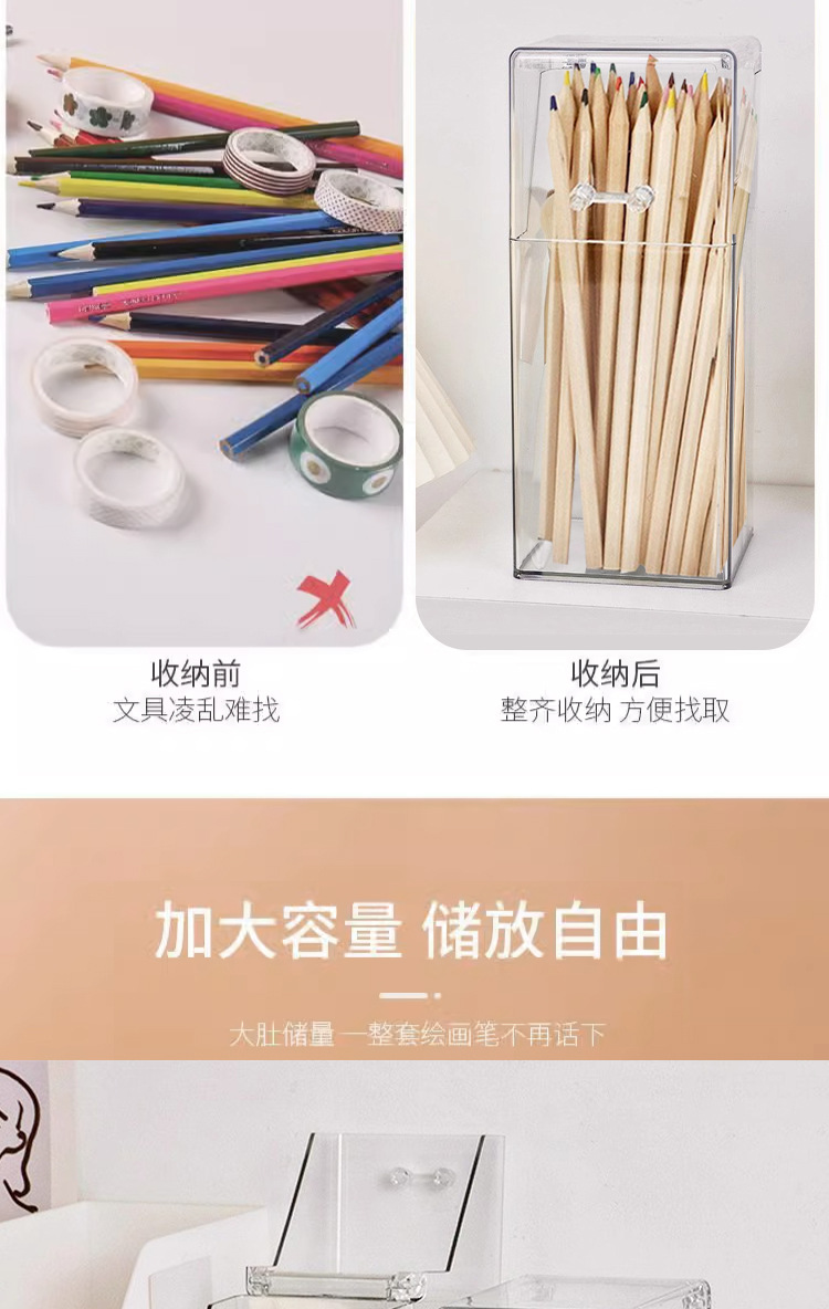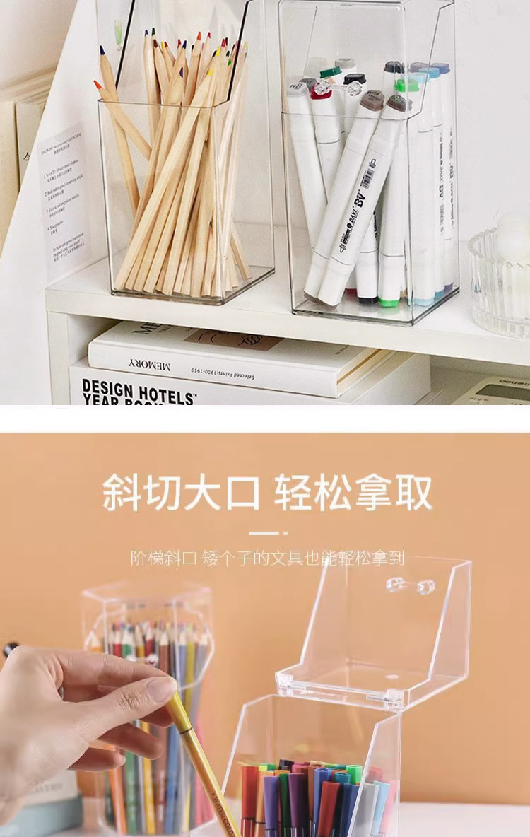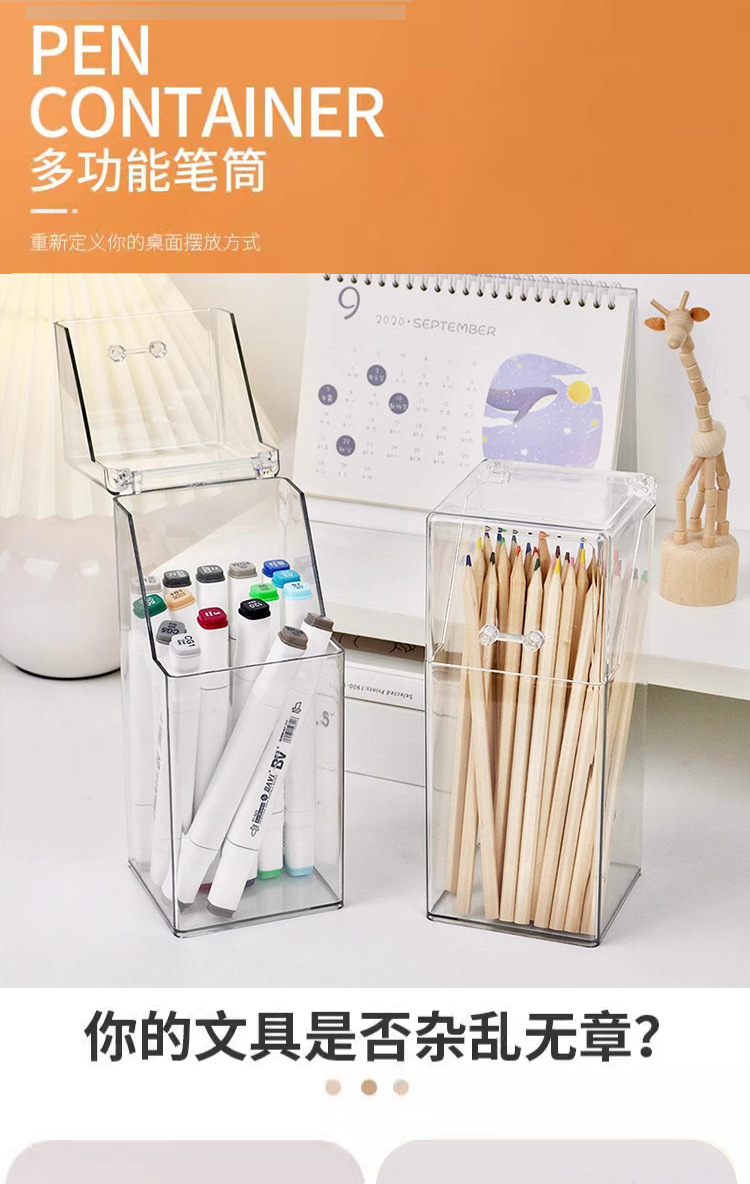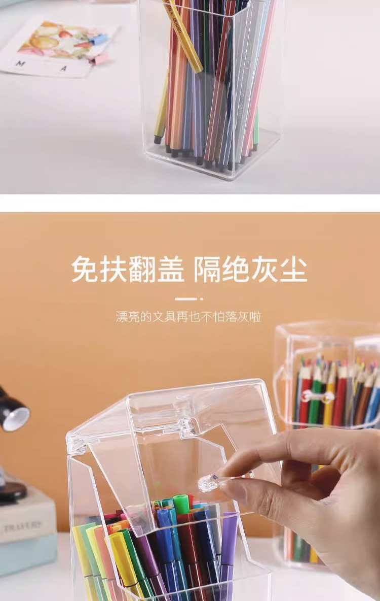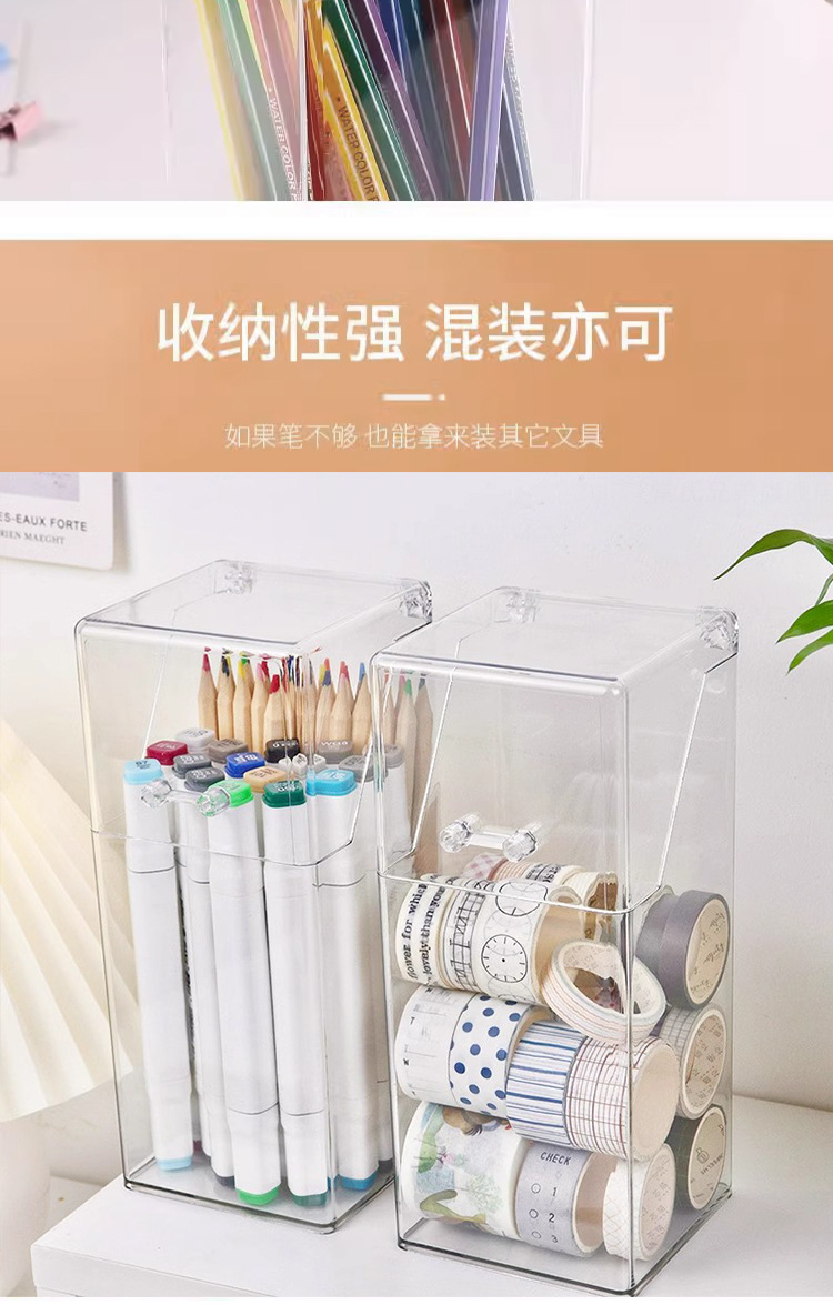 T2231 투명한 간단한 플라스틱 사각 펜 코너 학생 바탕 화면은 뚜껑 화장품 브러시 스토리지 버킷으로 스토리지 박스를 구성합니다.스토어 가기