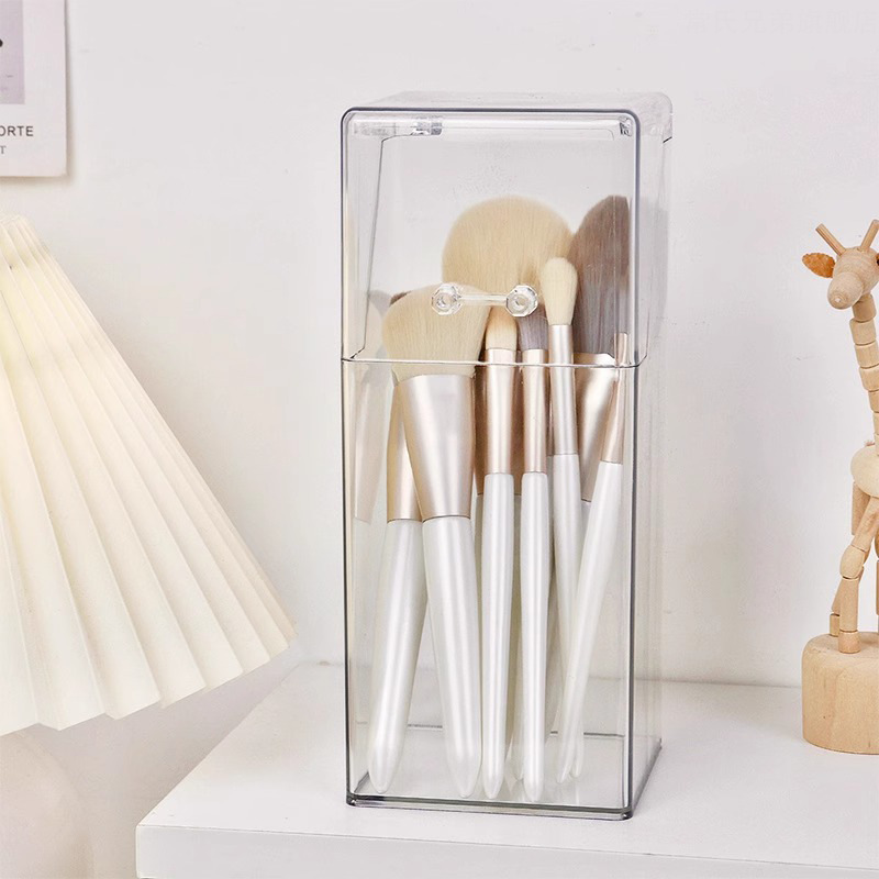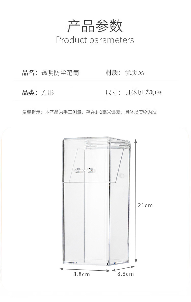 T2231 투명한 간단한 플라스틱 사각 펜 코너 학생 바탕 화면은 뚜껑 화장품 브러시 스토리지 버킷으로 스토리지 박스를 구성합니다.