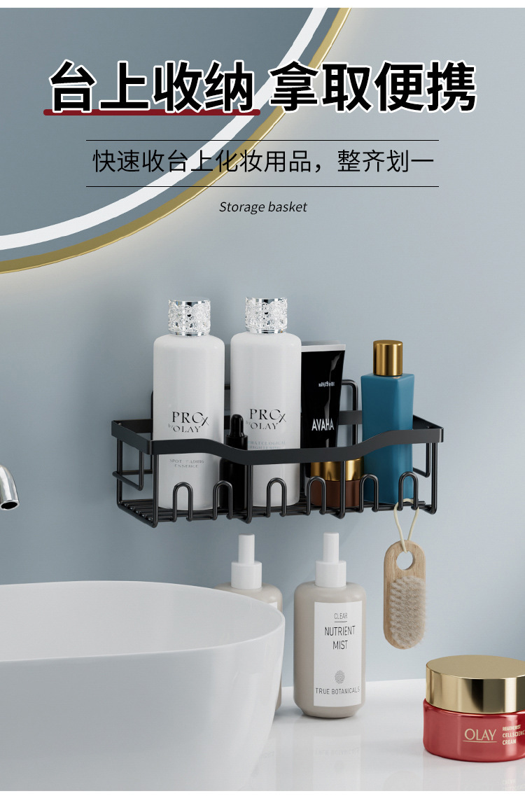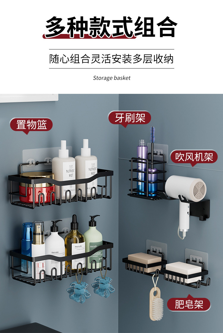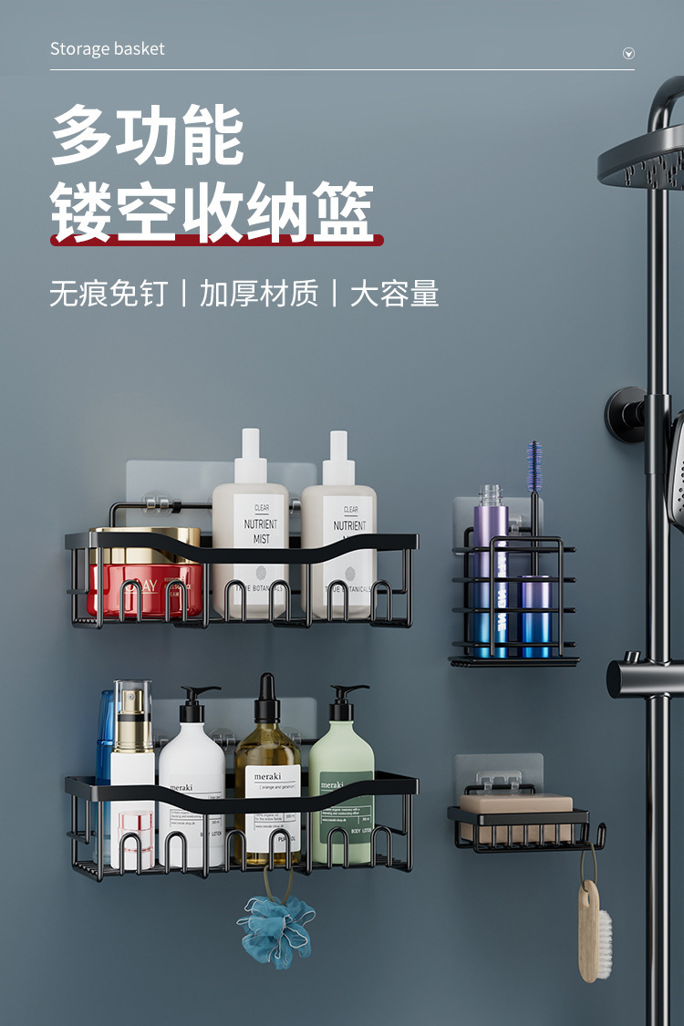 아마존 동일 스타일 욕실 랙 아이언 펀치없는 화장실 보관 랙 화장실 원활한 벽 교수형스토어 가기