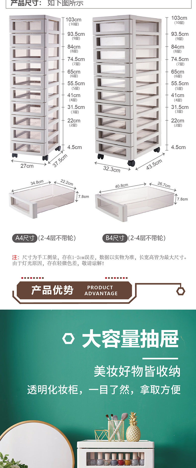 포스트 프리 다층 플로어 화장품 스토리지 박스 오피스 데스크탑 파일 서랍 형 스토리지 갭 로커