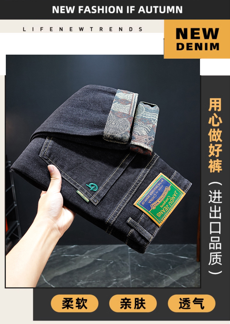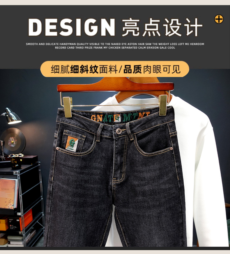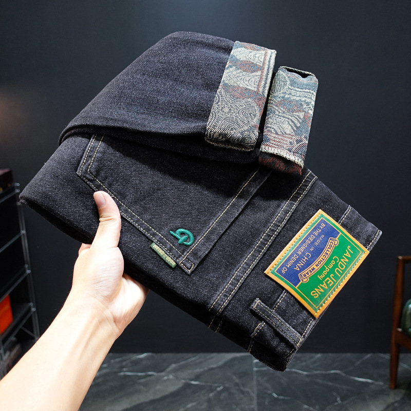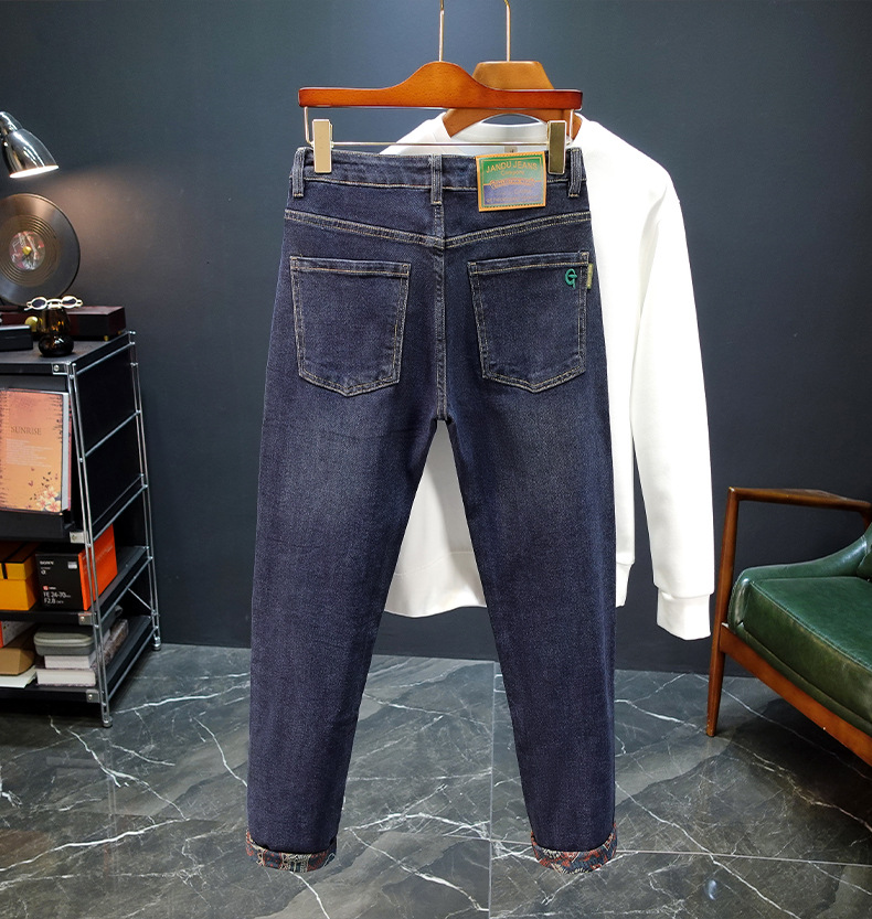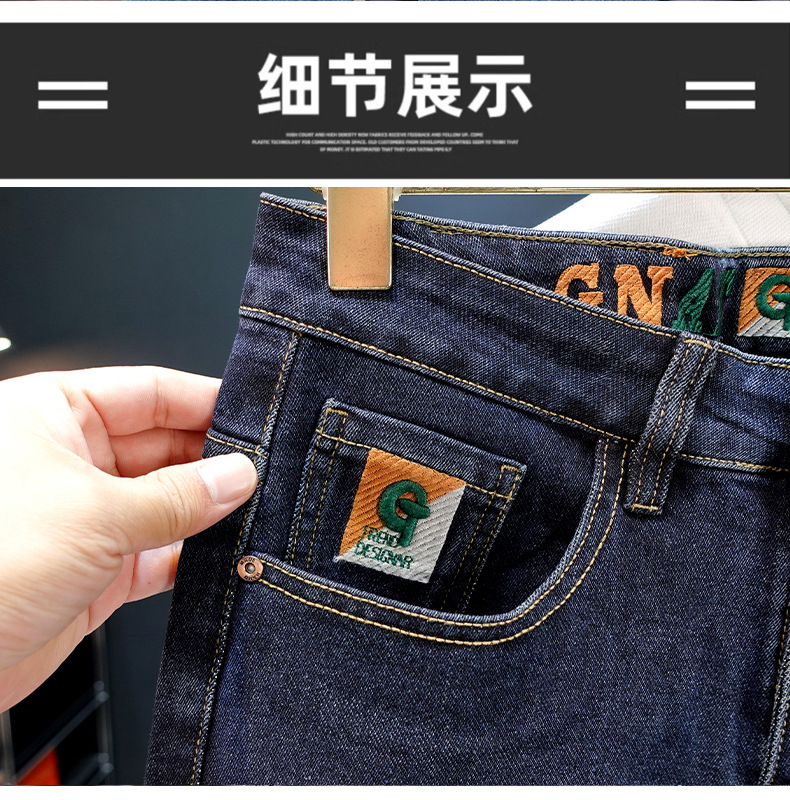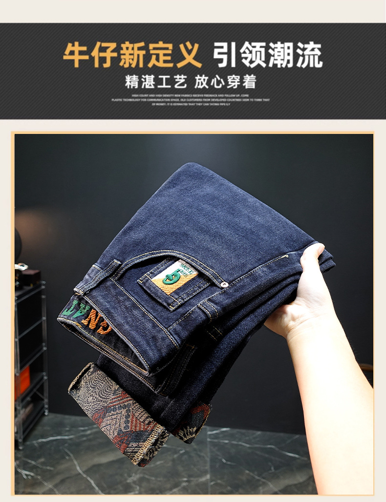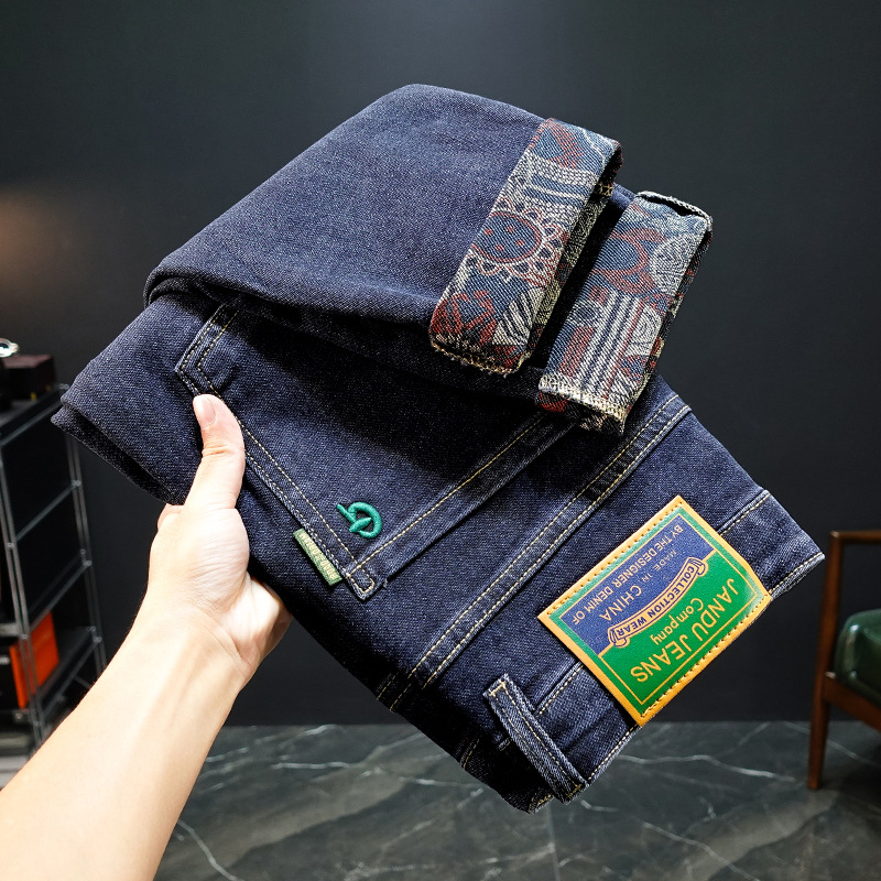 봄과 가을 블루 청바지 남성용 핫 2025 새로운 스트레치 트렌디 남성용 바지 슬림핏 스트레이트 롱 바지스토어 가기