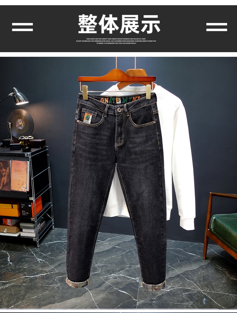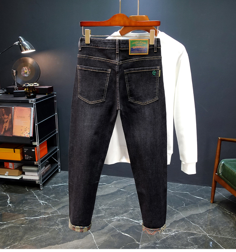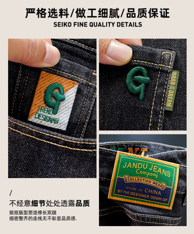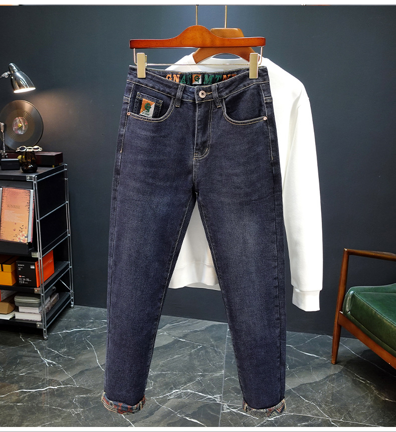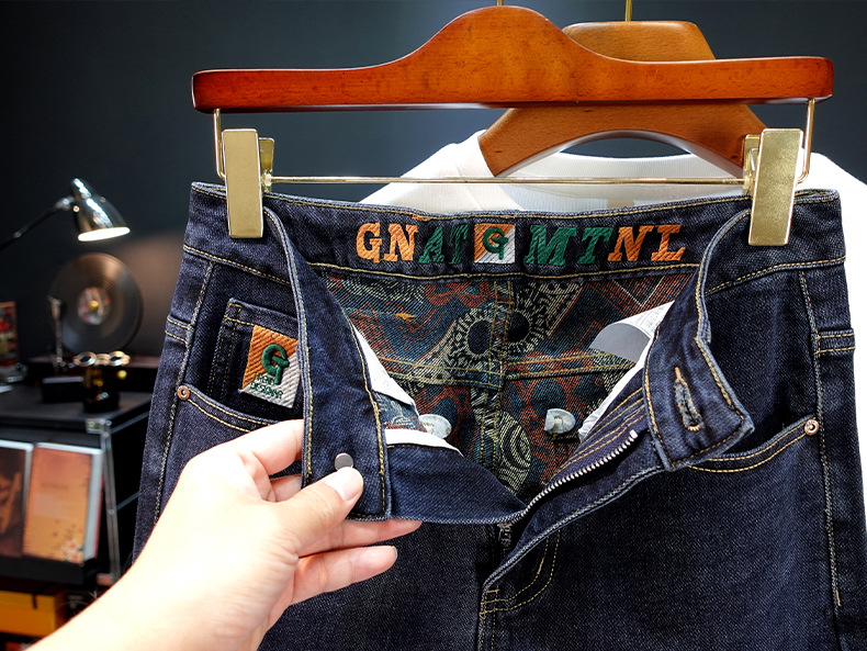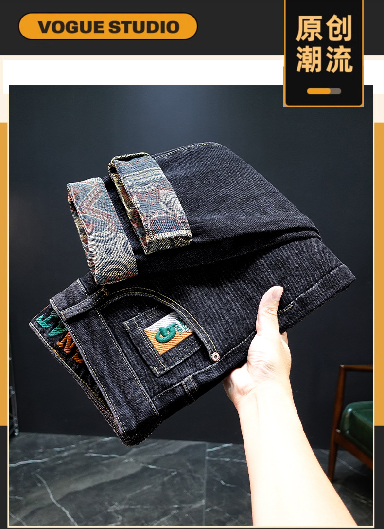 봄과 가을 블루 청바지 남성용 핫 2025 새로운 스트레치 트렌디 남성용 바지 슬림핏 스트레이트 롱 바지스토어 가기