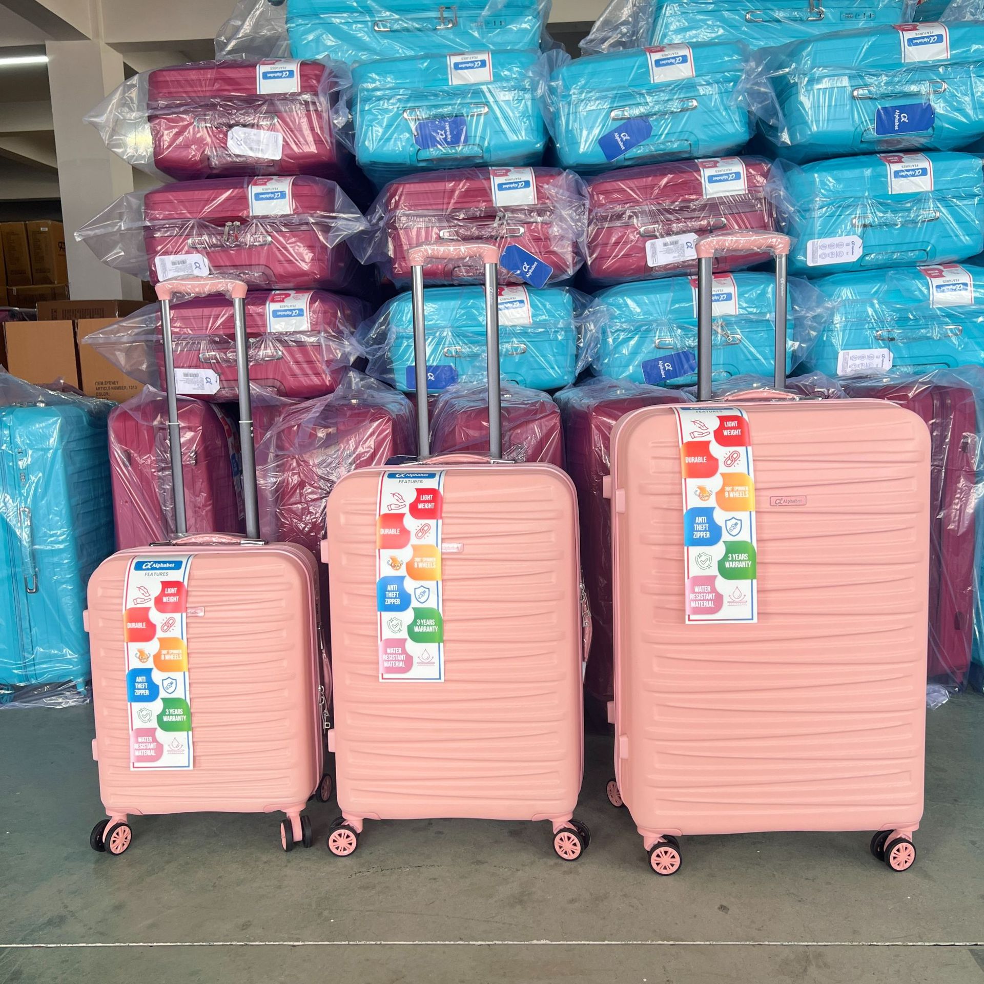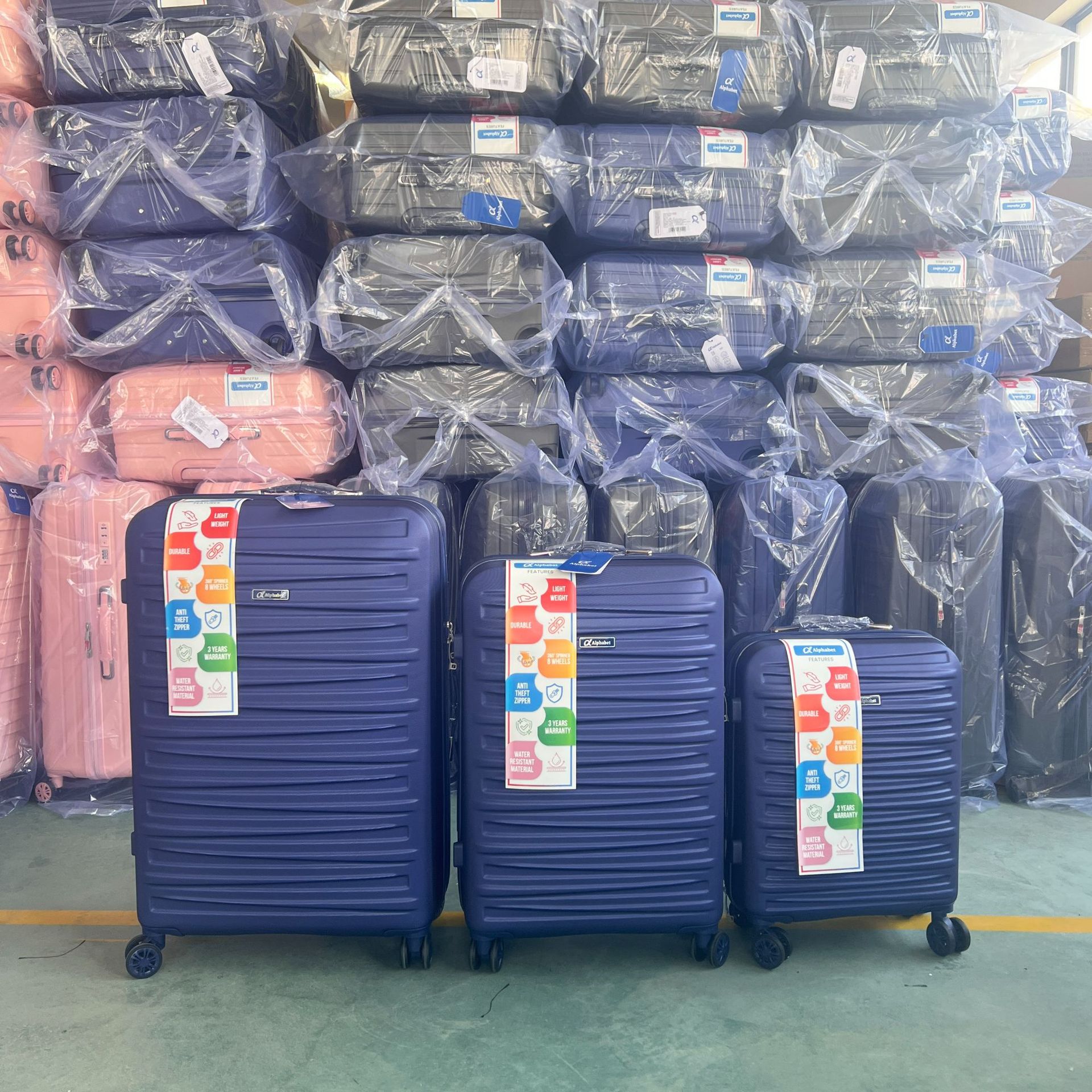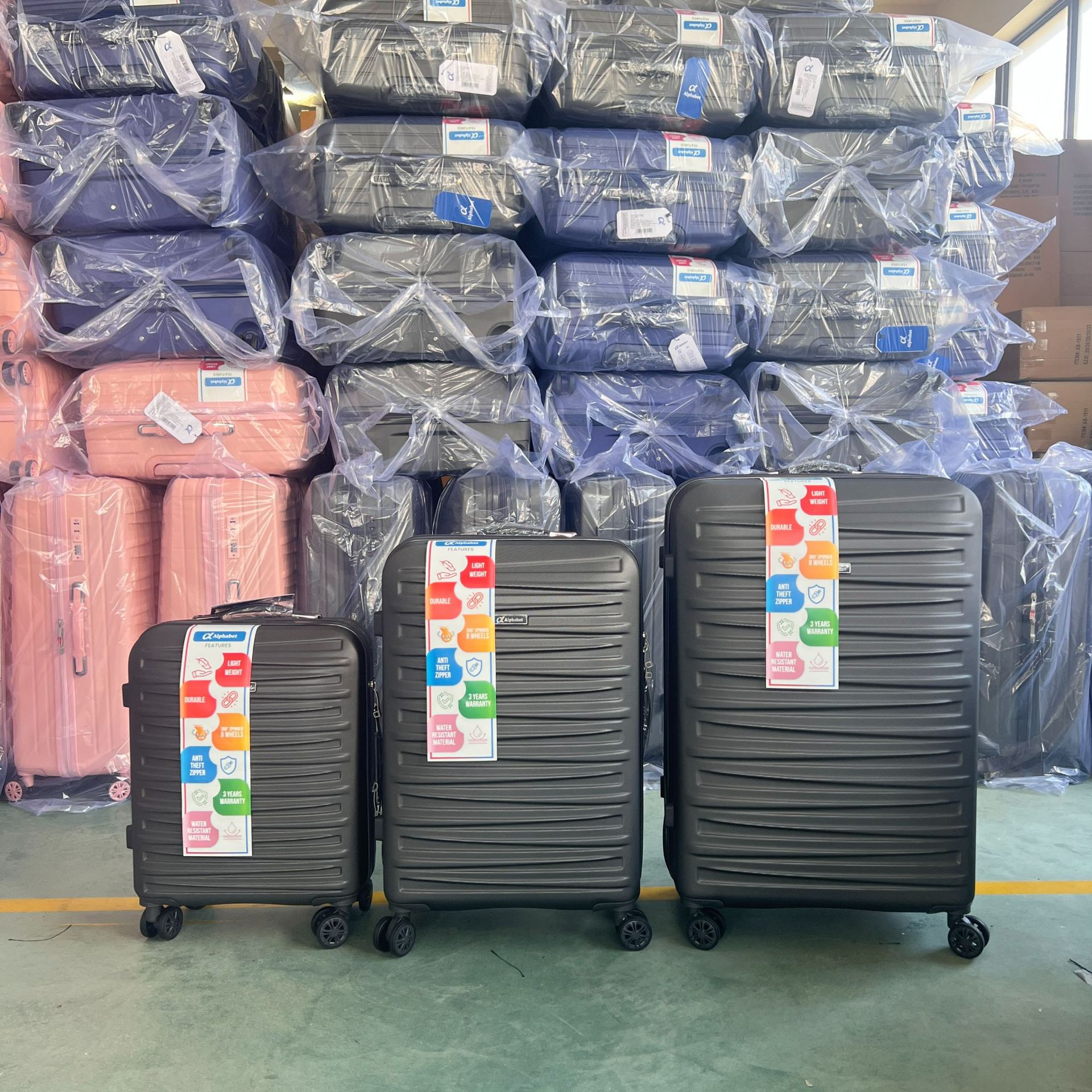 ABS 3 피스 컬러 매칭 202428 탑승 상자 수하물 트롤리 박스 여행 암호 상자 대외 무역스토어 가기
