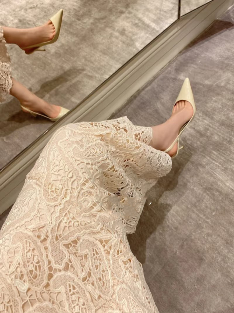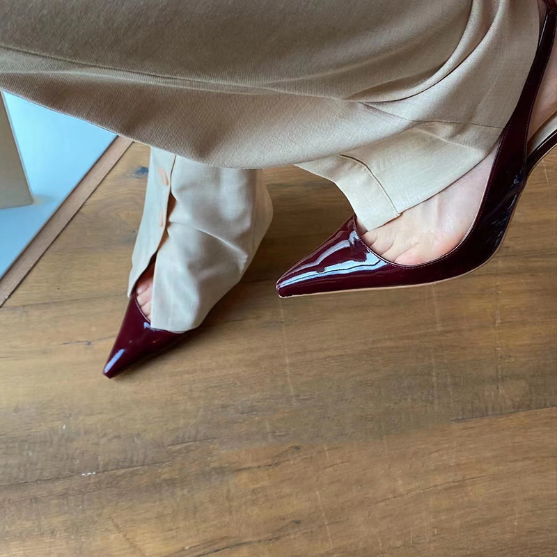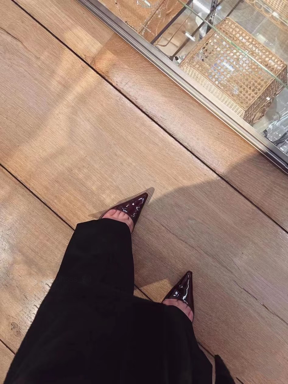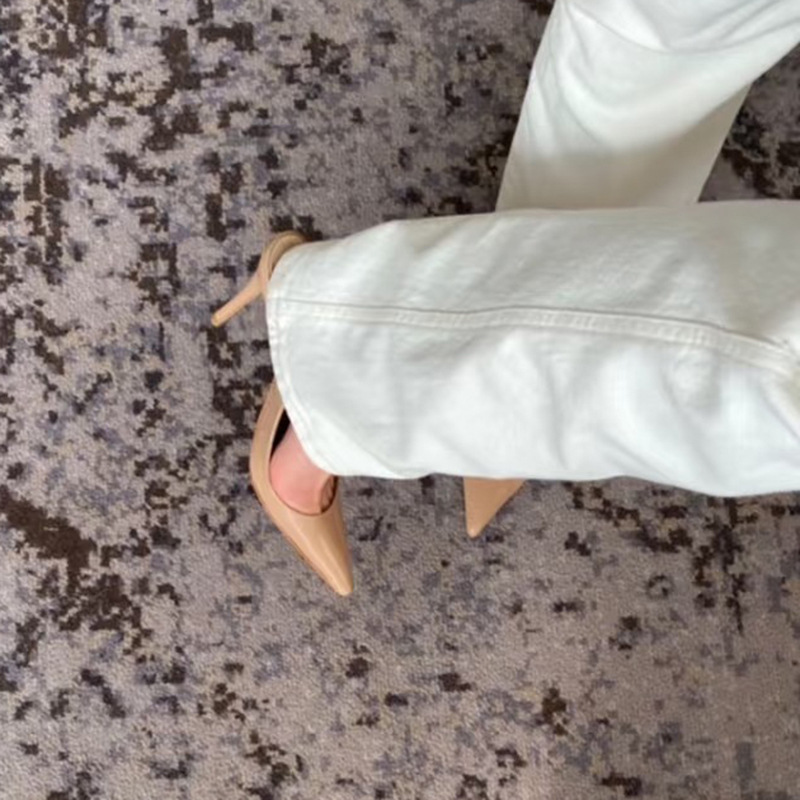 Zhou Ziran의 같은 스타일 작은 사각형 머리 얕은 입 뒷면 빈 싱글 레이어 신발 2025 년 새로운 도착 Baotou 샌들 하이힐 여성용 스틸레토 힐