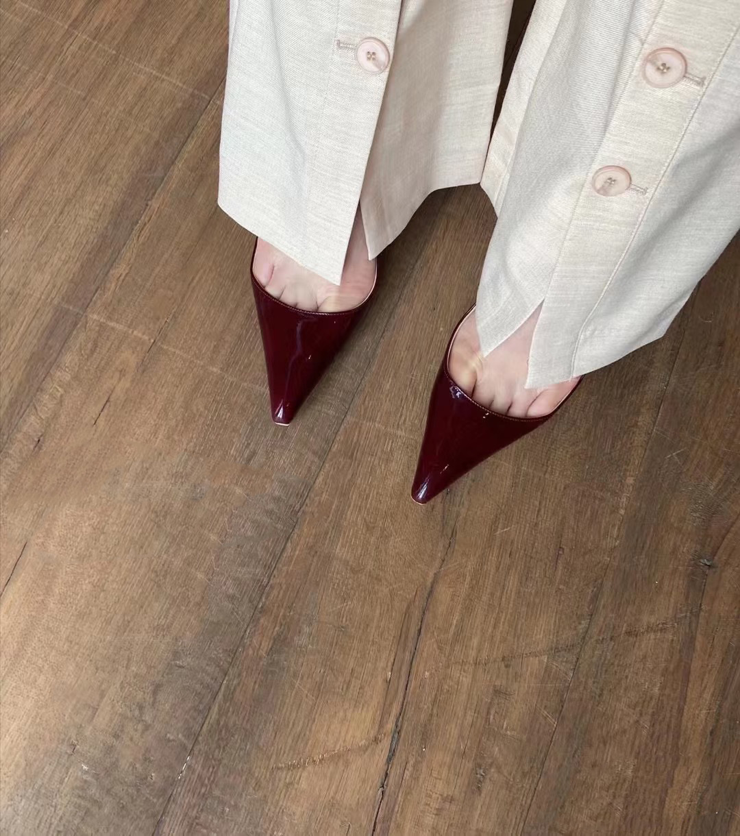 • 오프화이트 페이턴트 가죽 [힐 높이 4cm]