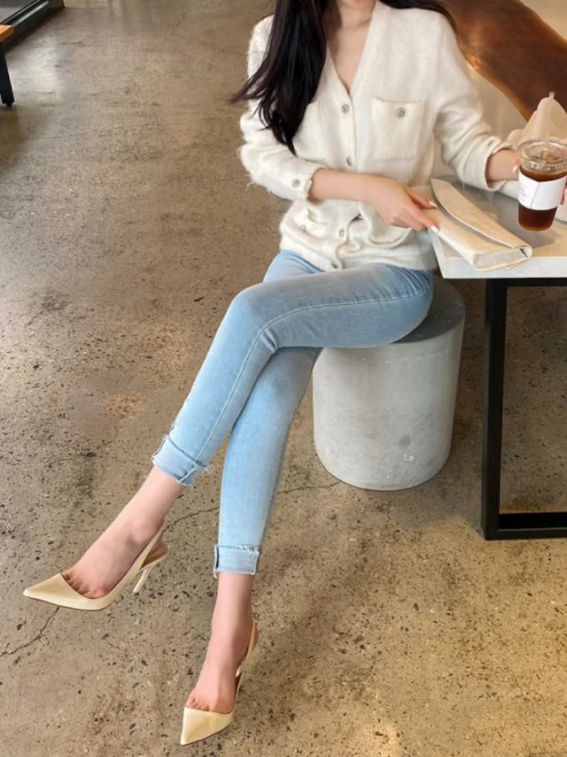 Zhou Ziran의 같은 스타일 작은 사각형 머리 얕은 입 뒷면 빈 싱글 레이어 신발 2025 년 새로운 도착 Baotou 샌들 하이힐 여성용 스틸레토 힐스토어 가기