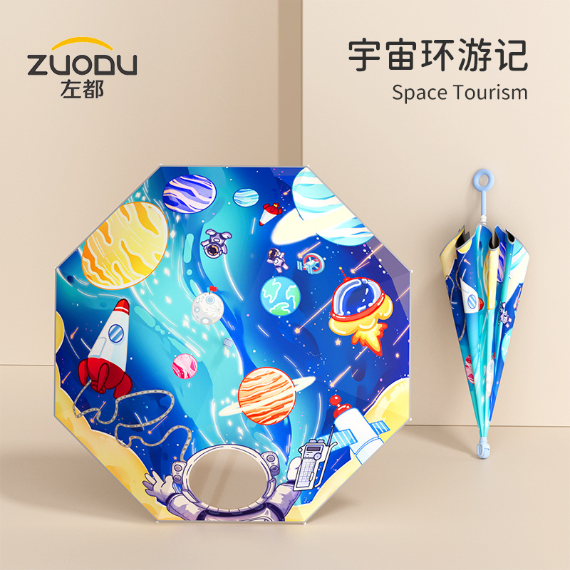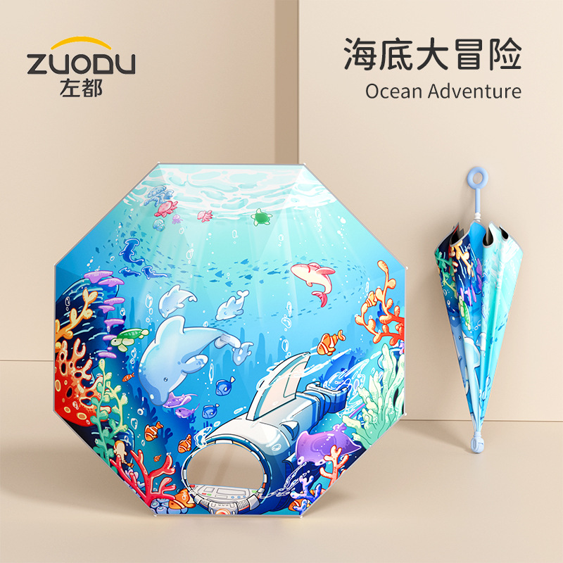 남학생과 초등학생을위한 Zuodu 어린이 우산 특수 선 스크린 및 비 우산 경량 투명 긴 손잡이 우산스토어 가기