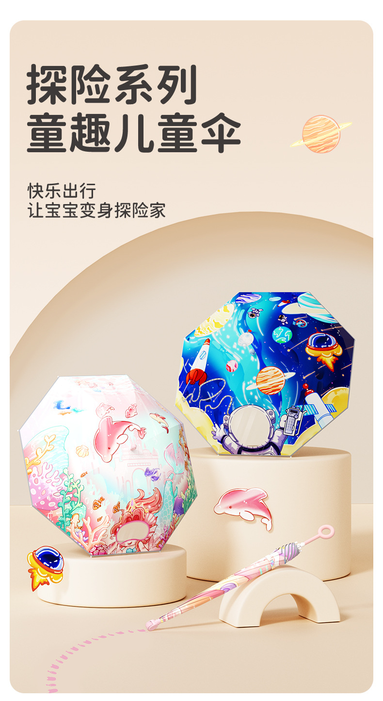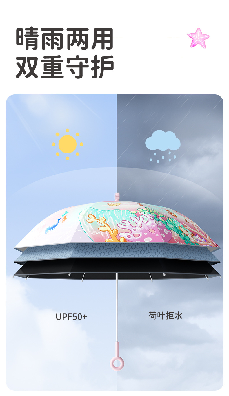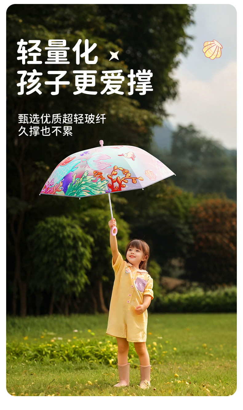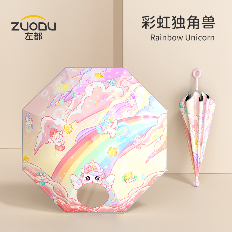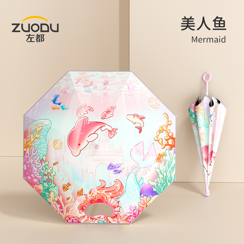 남학생과 초등학생을위한 Zuodu 어린이 우산 특수 선 스크린 및 비 우산 경량 투명 긴 손잡이 우산